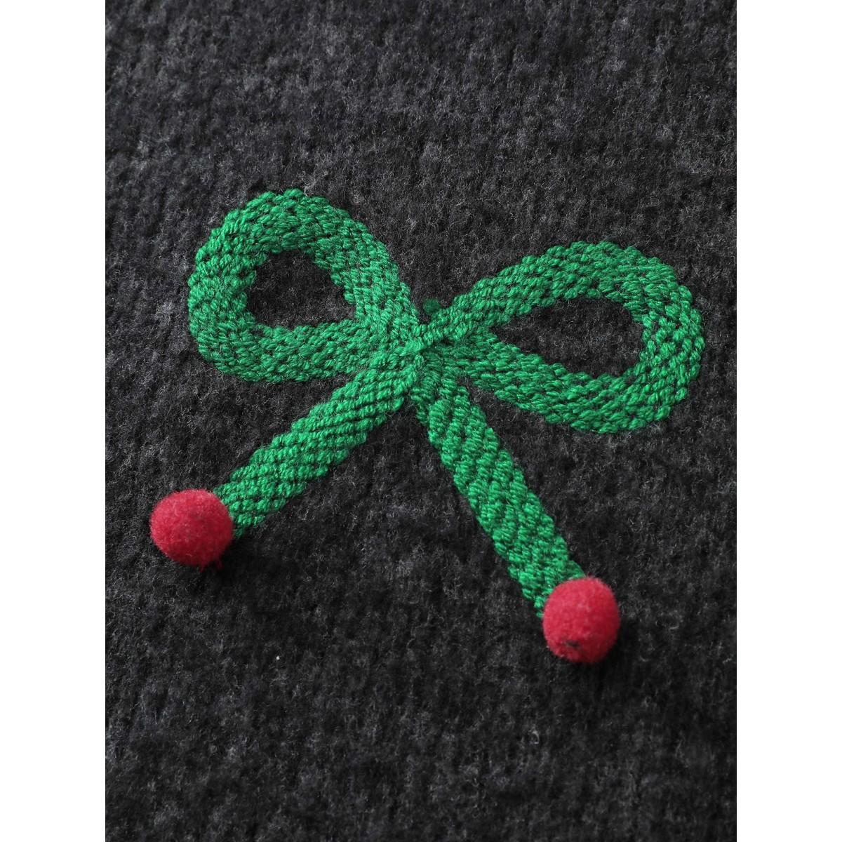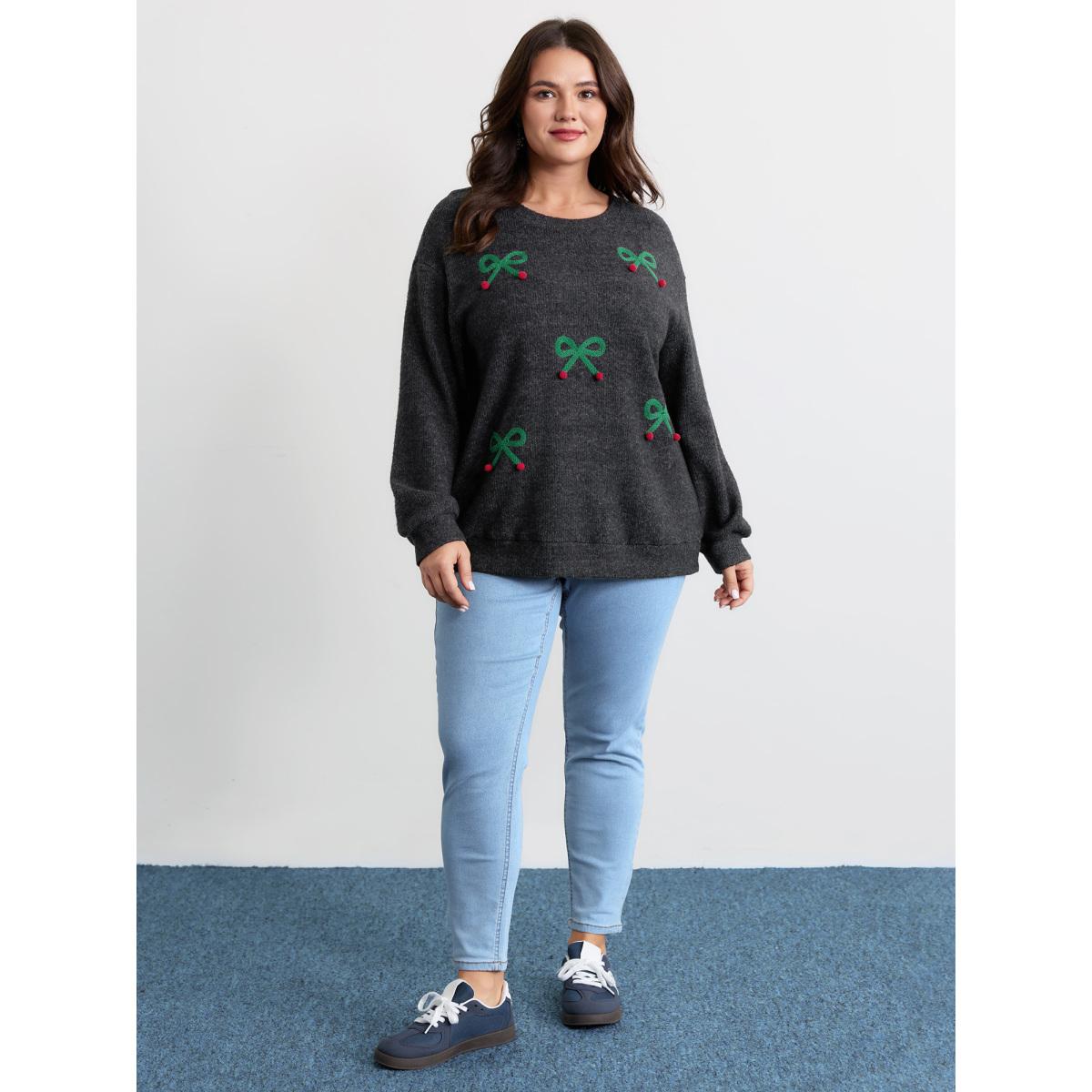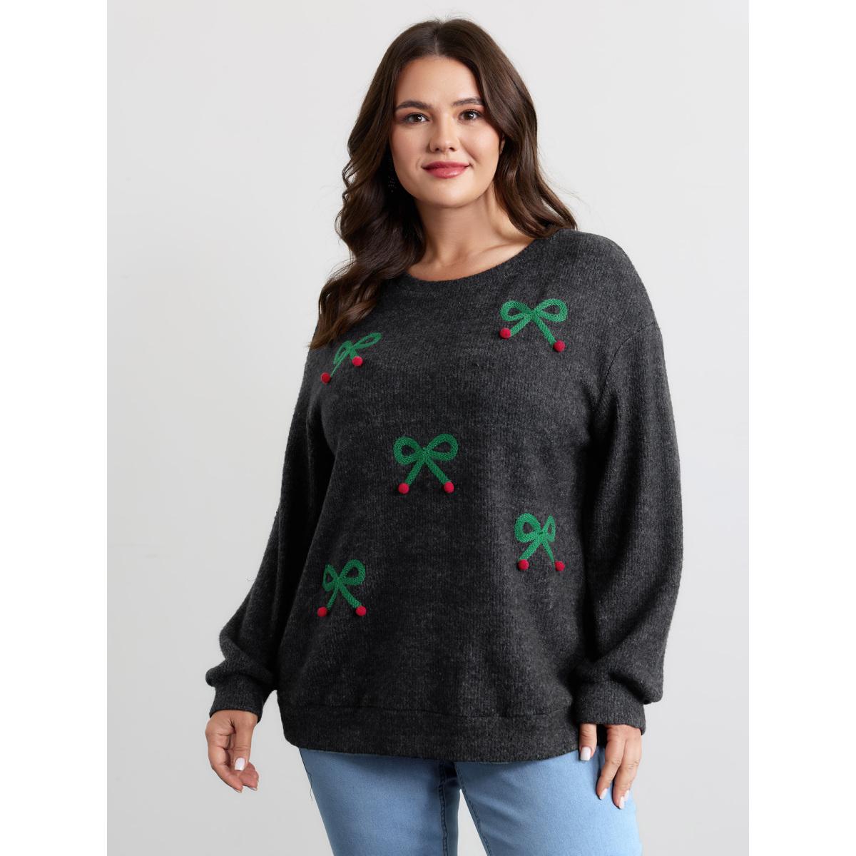 Plus Size Cherry Cord Embroidery Textured Sweatshirt Women Black Playful Round Neck Casual Sweatshirts BloomChic 30/6X