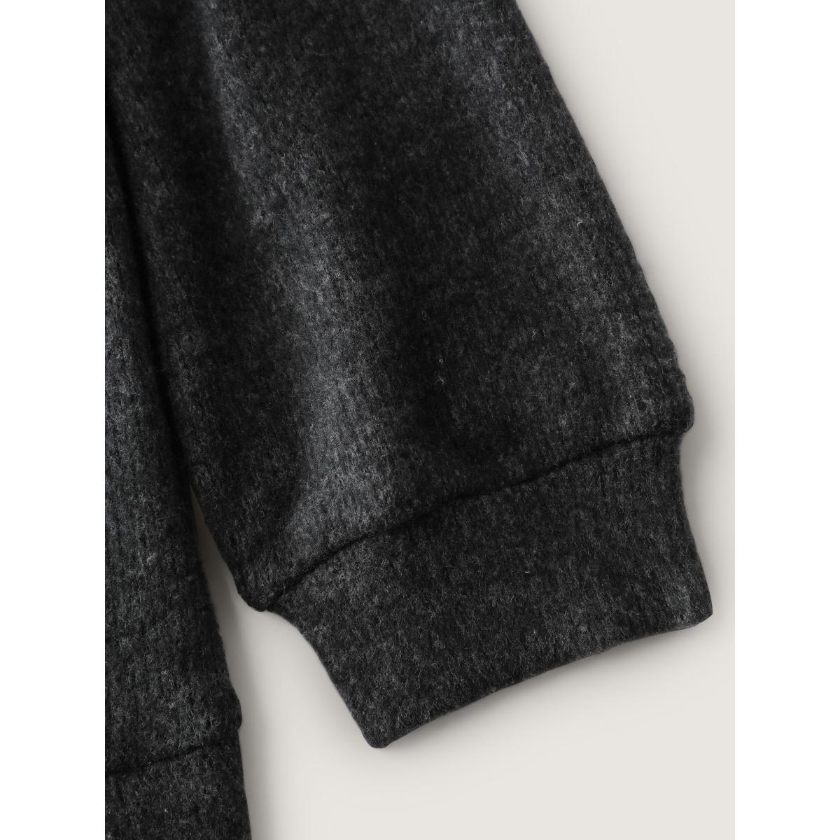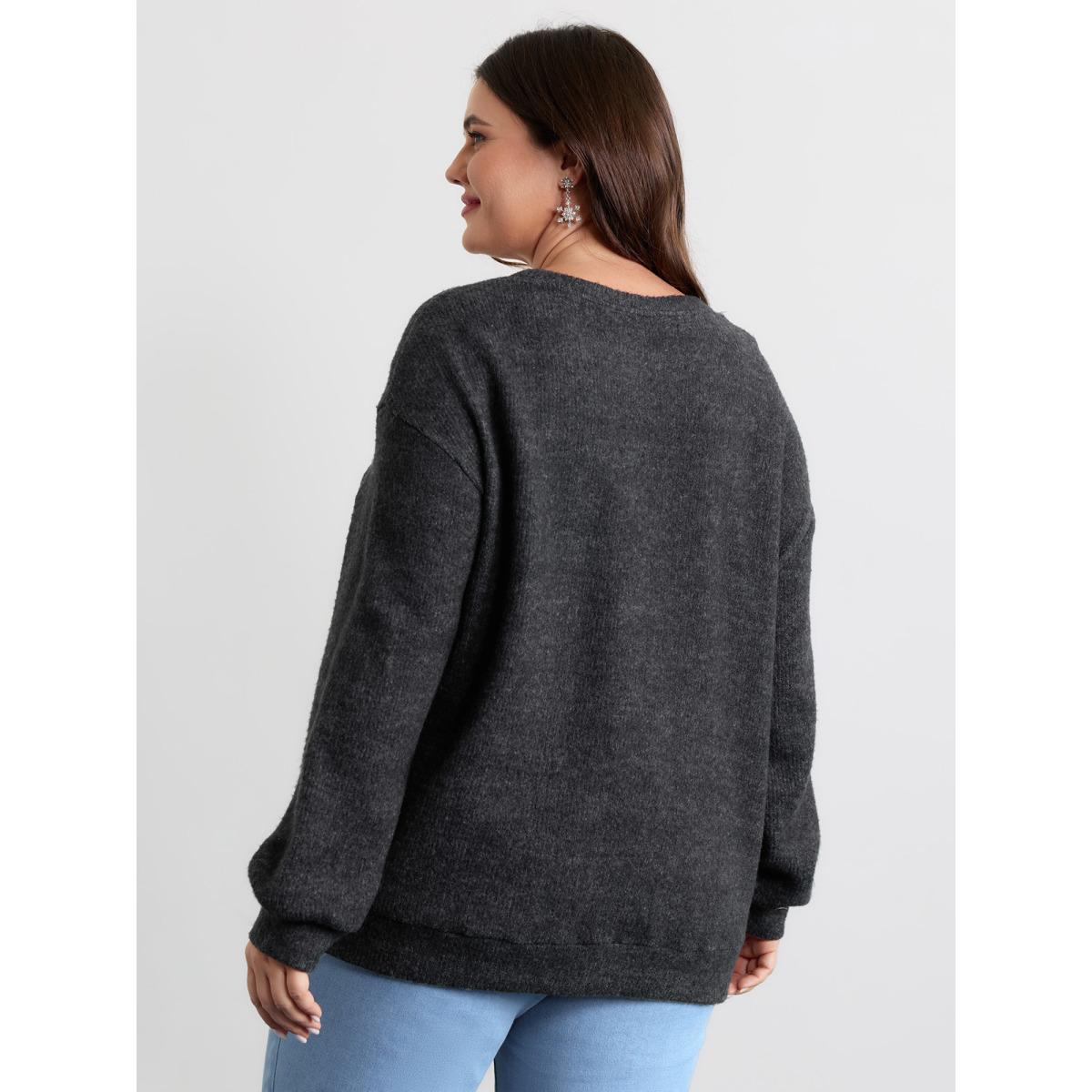 Plus Size Plain Textured Patchwork Jacquard Sweatshirt Women Black Casual Texture V-neck Dailywear Sweatshirts BloomChic 14-16/1X