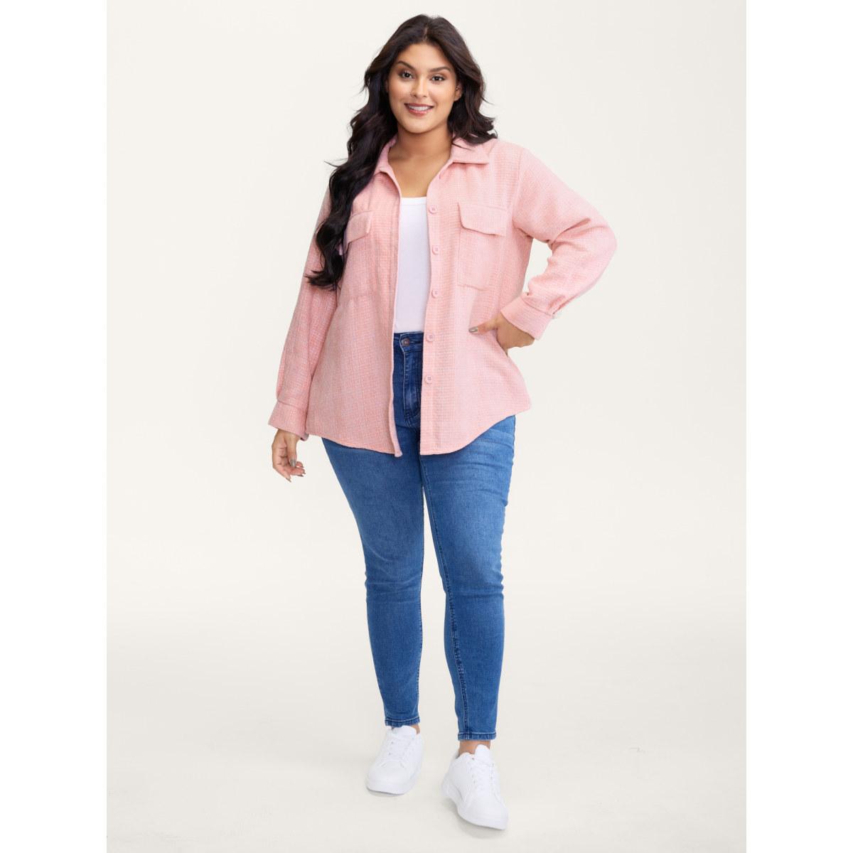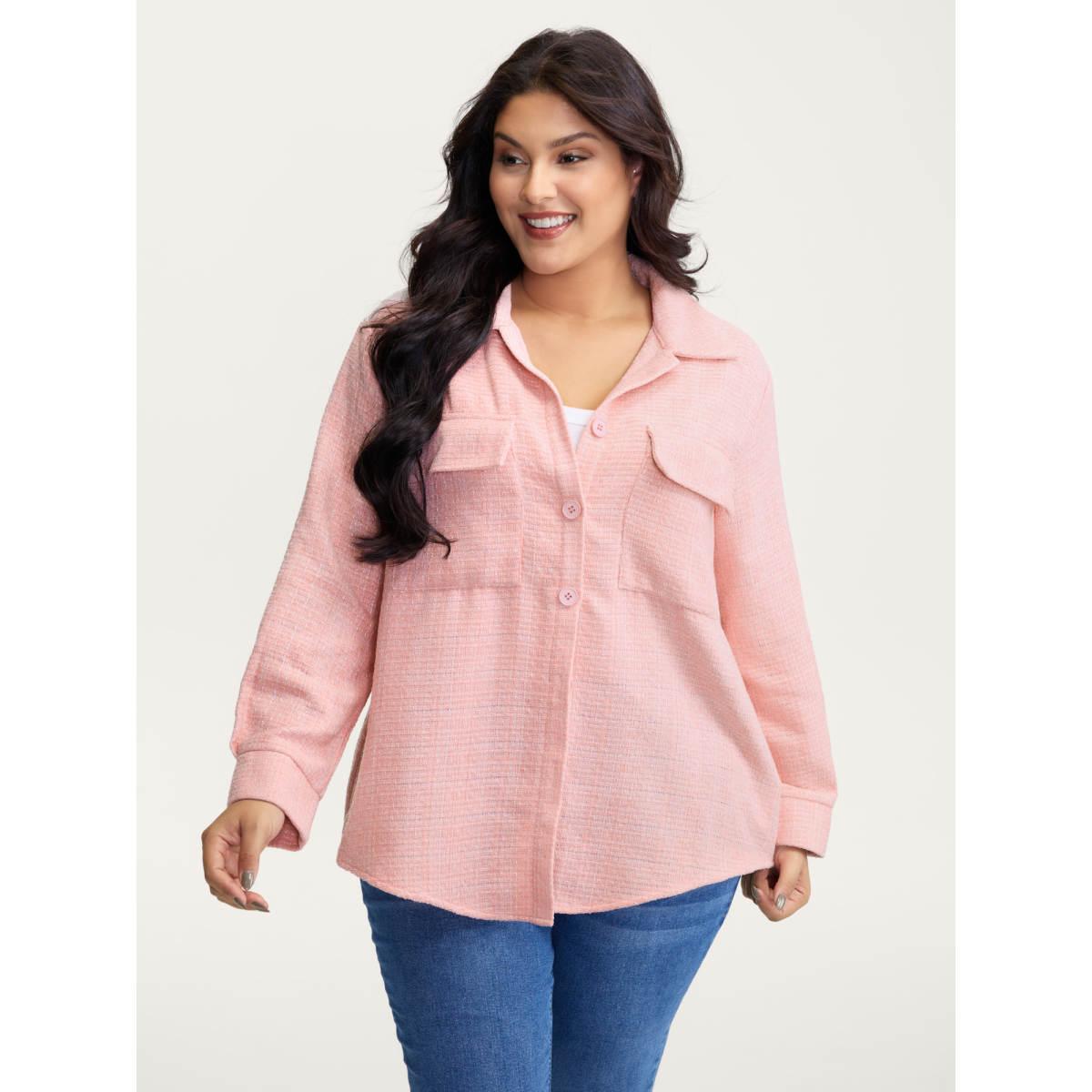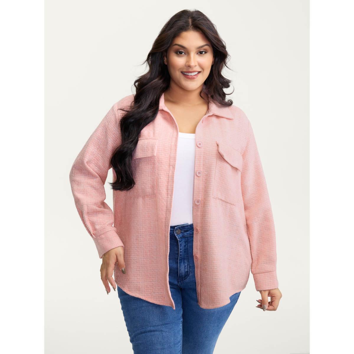 Plus Size Chest Flaps Textured Button-Down Jacket Women Blush Patch pocket Casual Jackets BloomChic 14-16/1X