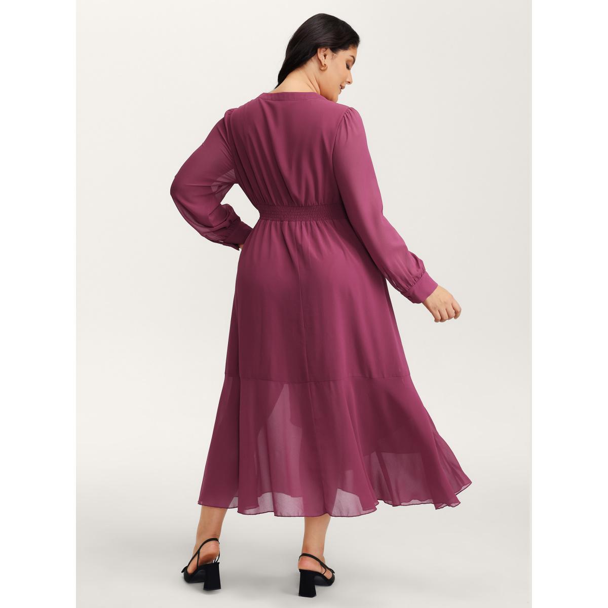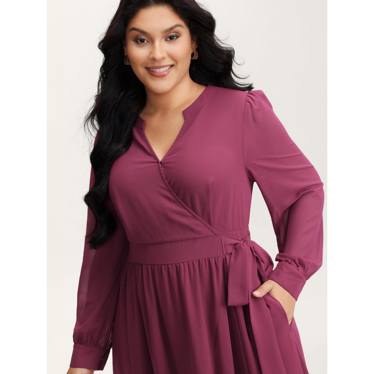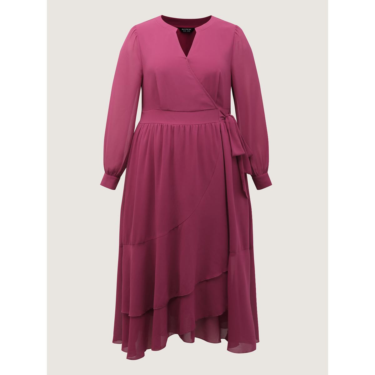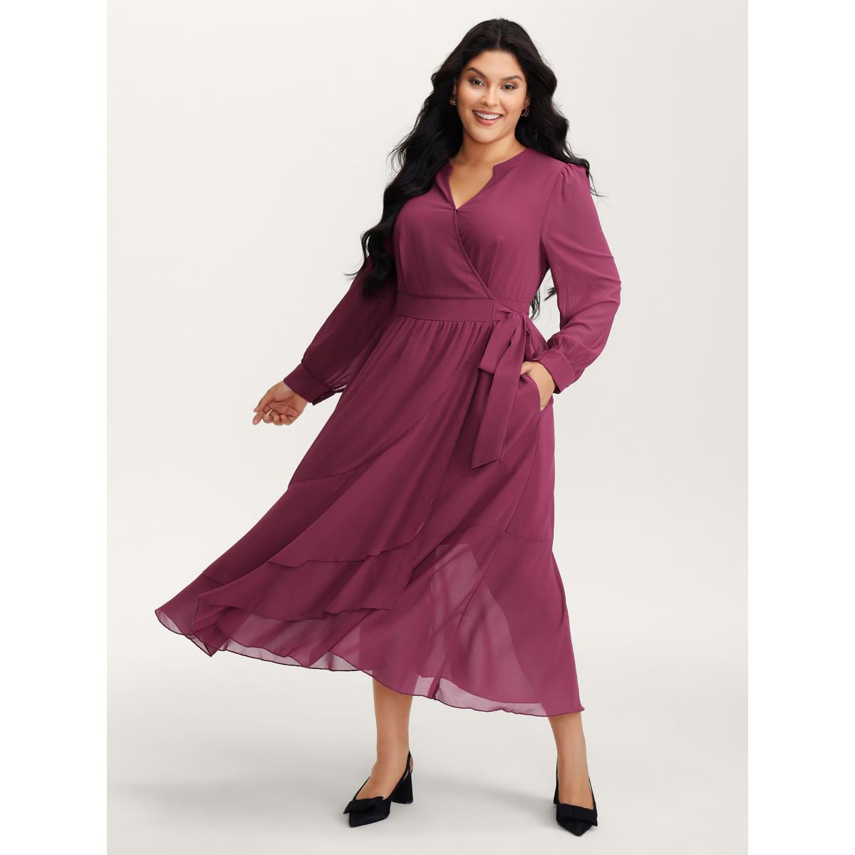 Plus Size Chiffon Wrap Tie Layered Ruffled Maxi Dress Rosered Women Timeless Notched collar Long Sleeve Curvy BloomChic 30/6X
