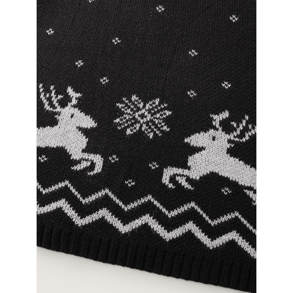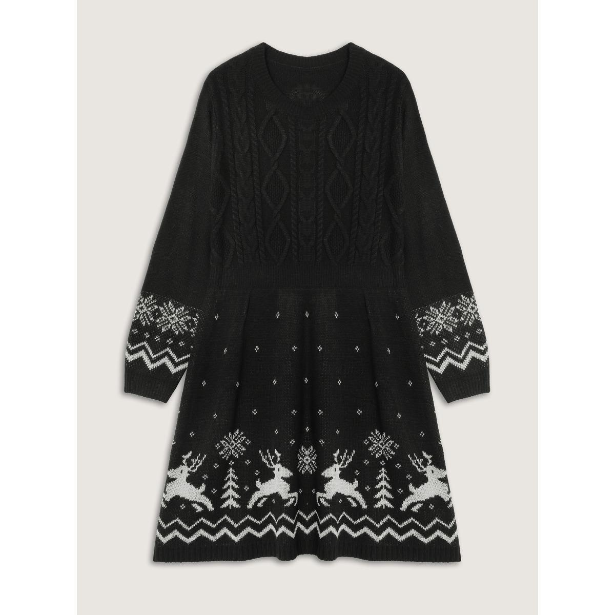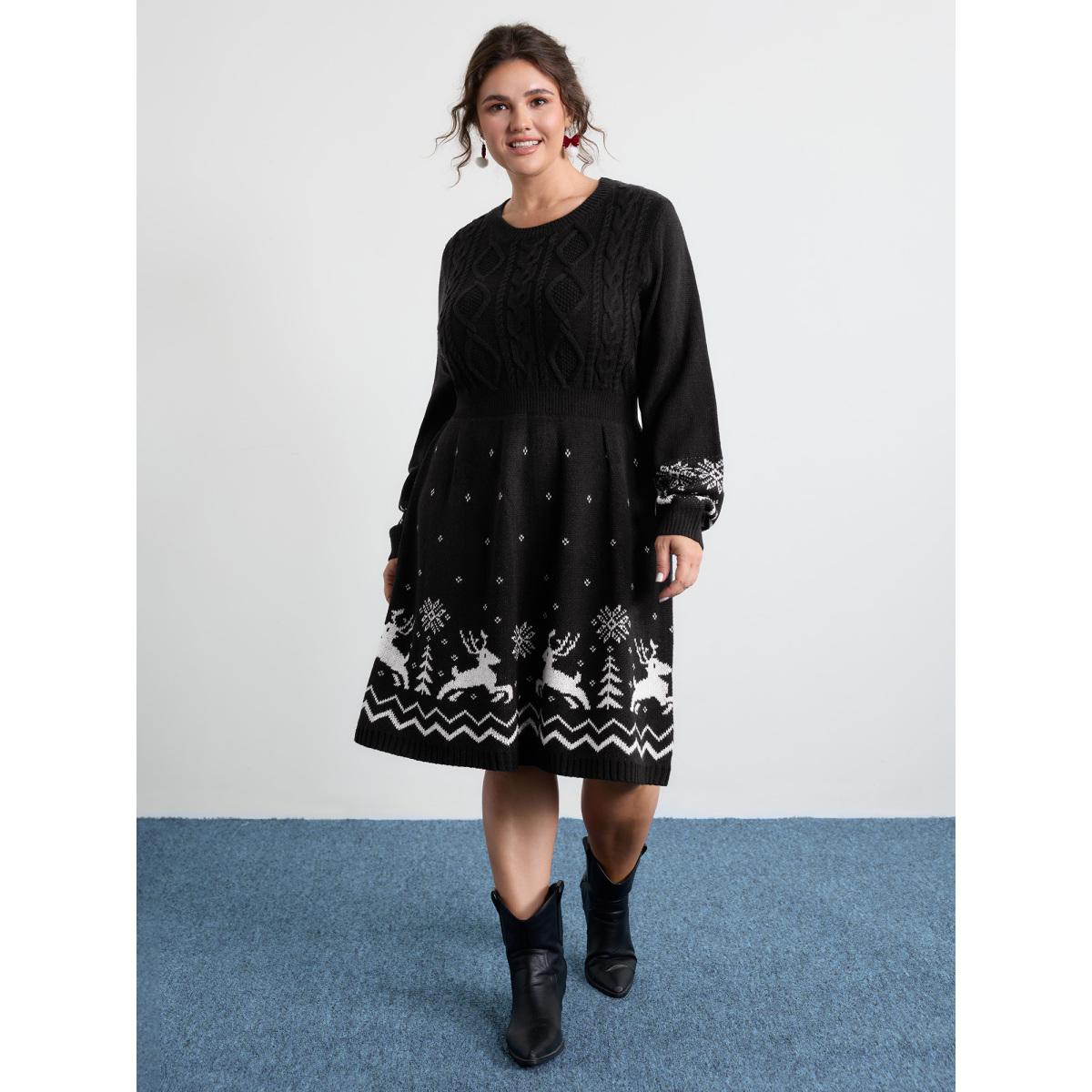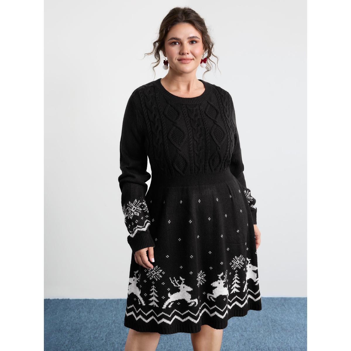 Plus Size Christmas Textured Pattern Midi Sweater Dress Black Women Leisure Bodycon Long Sleeve Casual Sweater Dresses BloomChic 22-24/3X