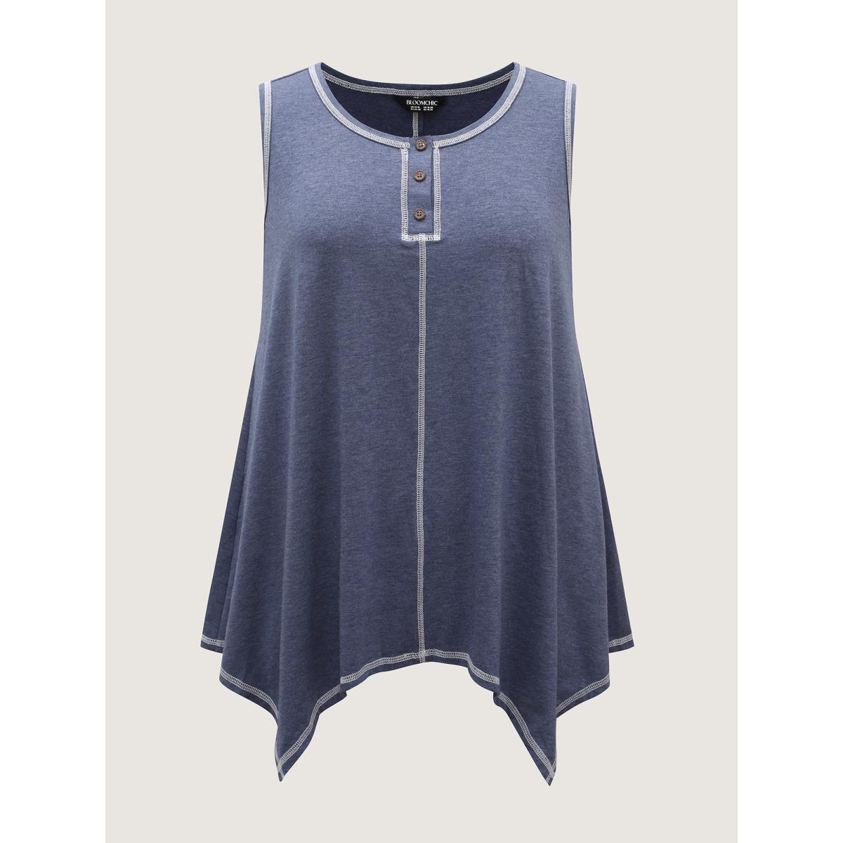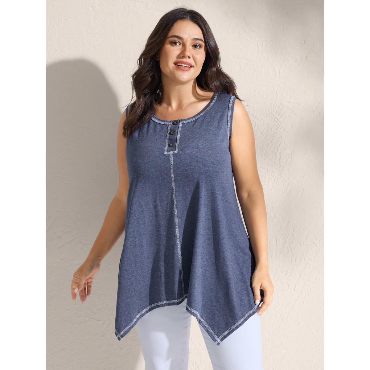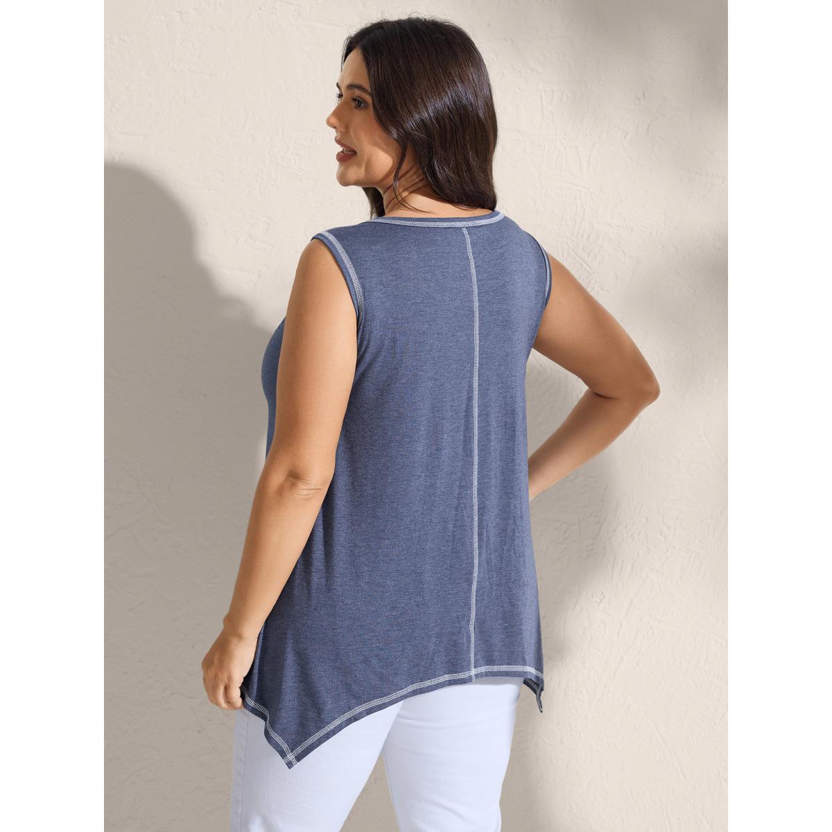 Plus Size Color Contrast Asymmetrical Hem Tank Top Women Indigo Leisure Contrast Round Neck Casual Tank Tops Camis BloomChic 22-24/3X