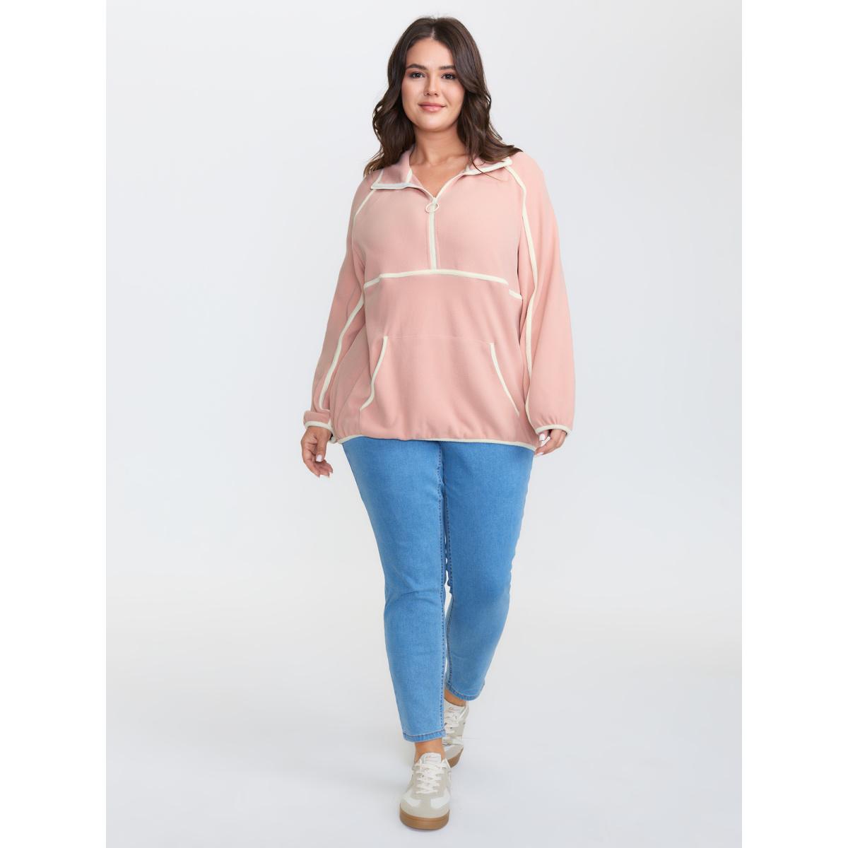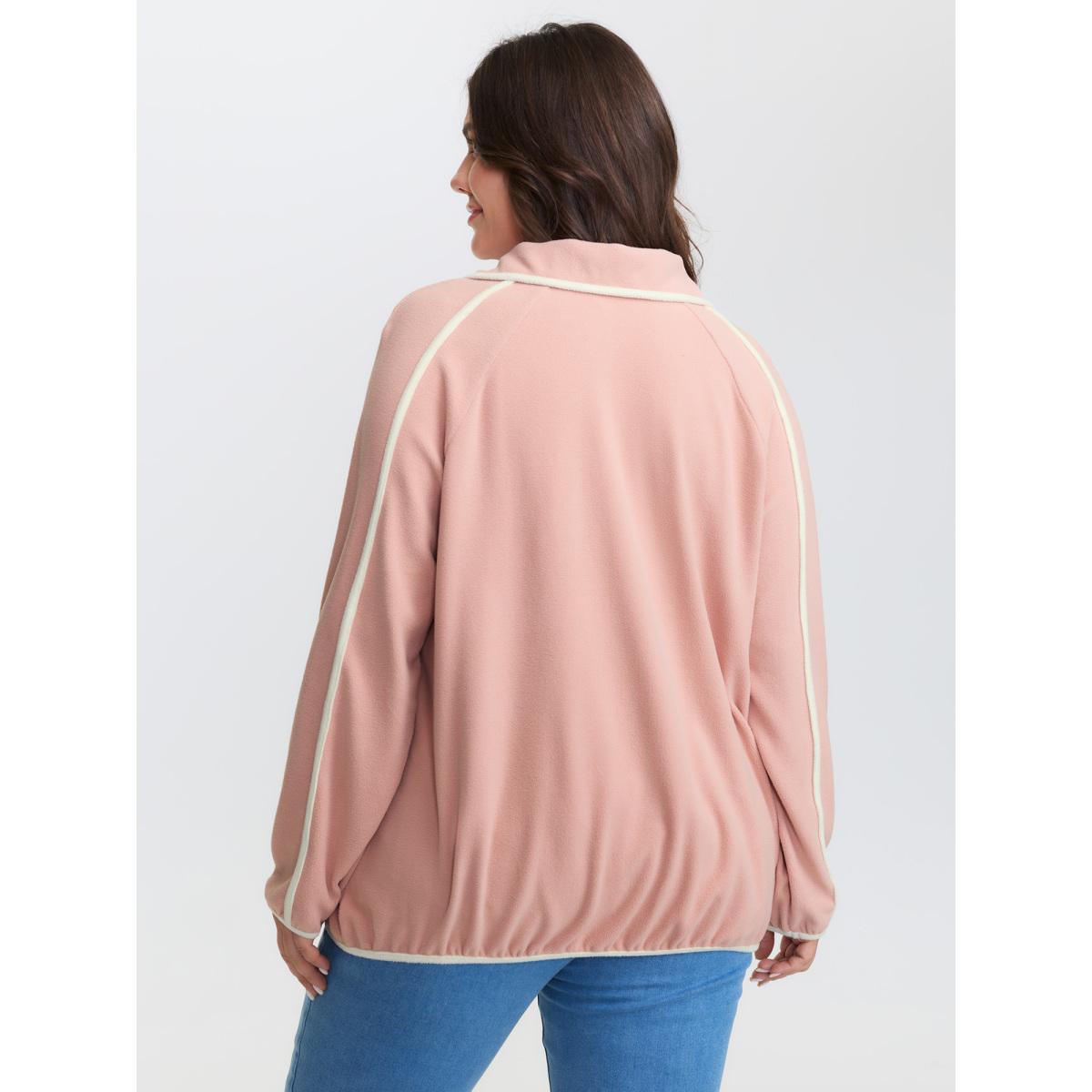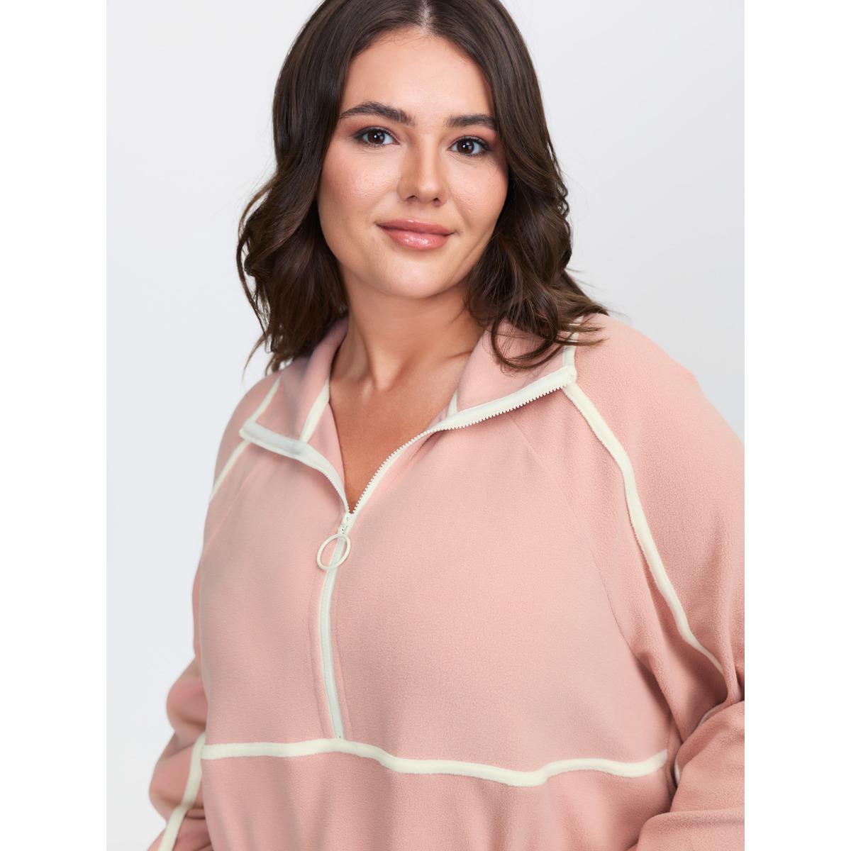 Plus Size Color Contrast Fluffy Half Zip Sweatshirt Women Dirtypink Leisure Stand-up collar Casual Sweatshirts BloomChic 12/L