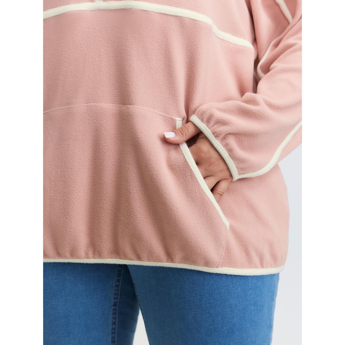 Plus Size Color Contrast Fluffy Half Zip Sweatshirt Women Dirtypink Leisure Stand-up collar Casual Sweatshirts BloomChic 12/L Product Image