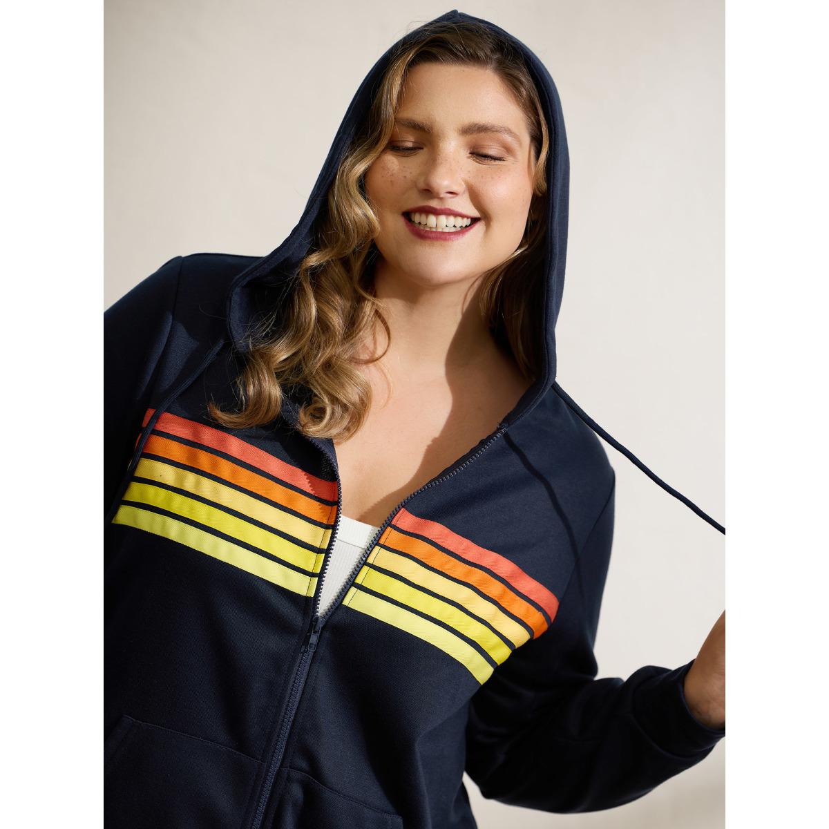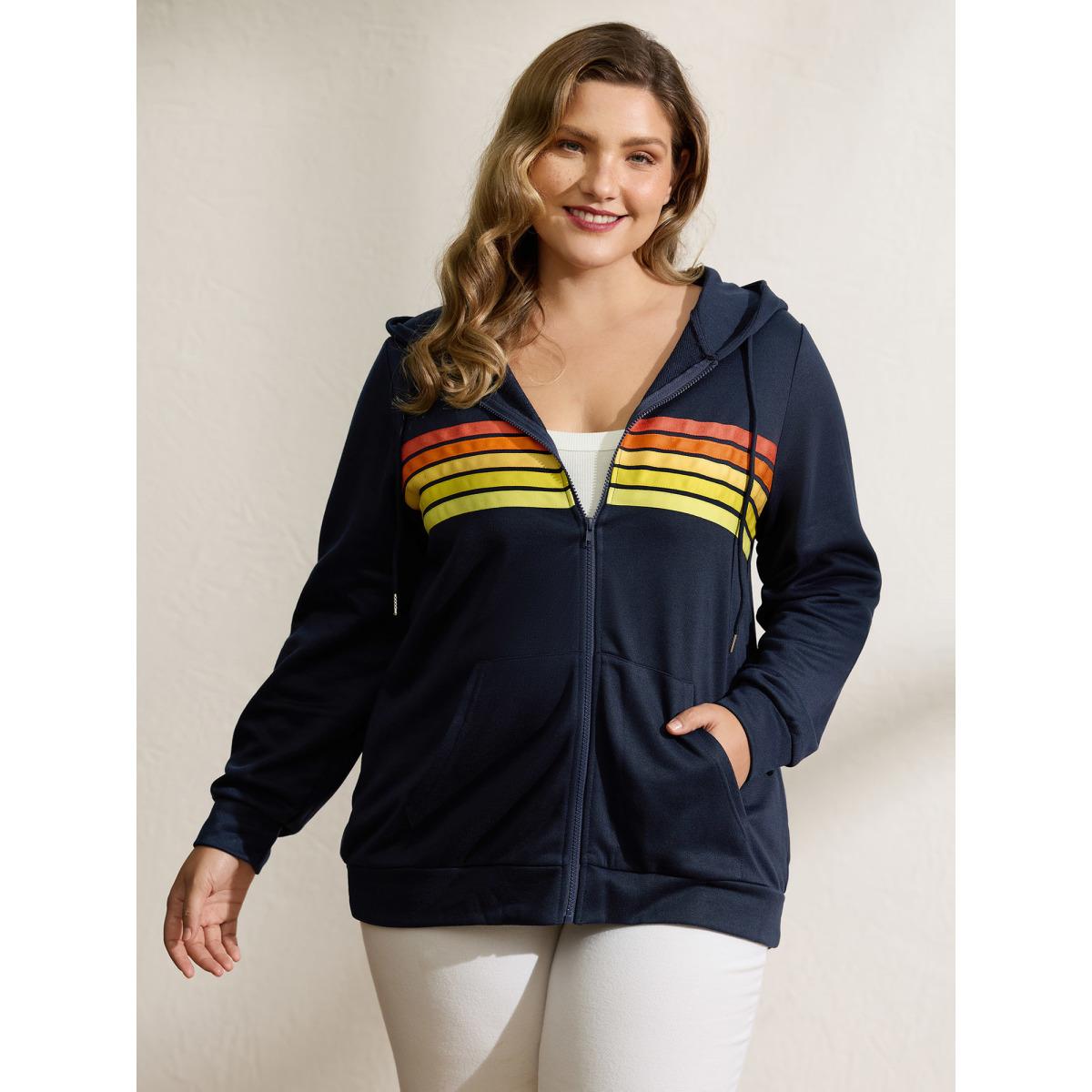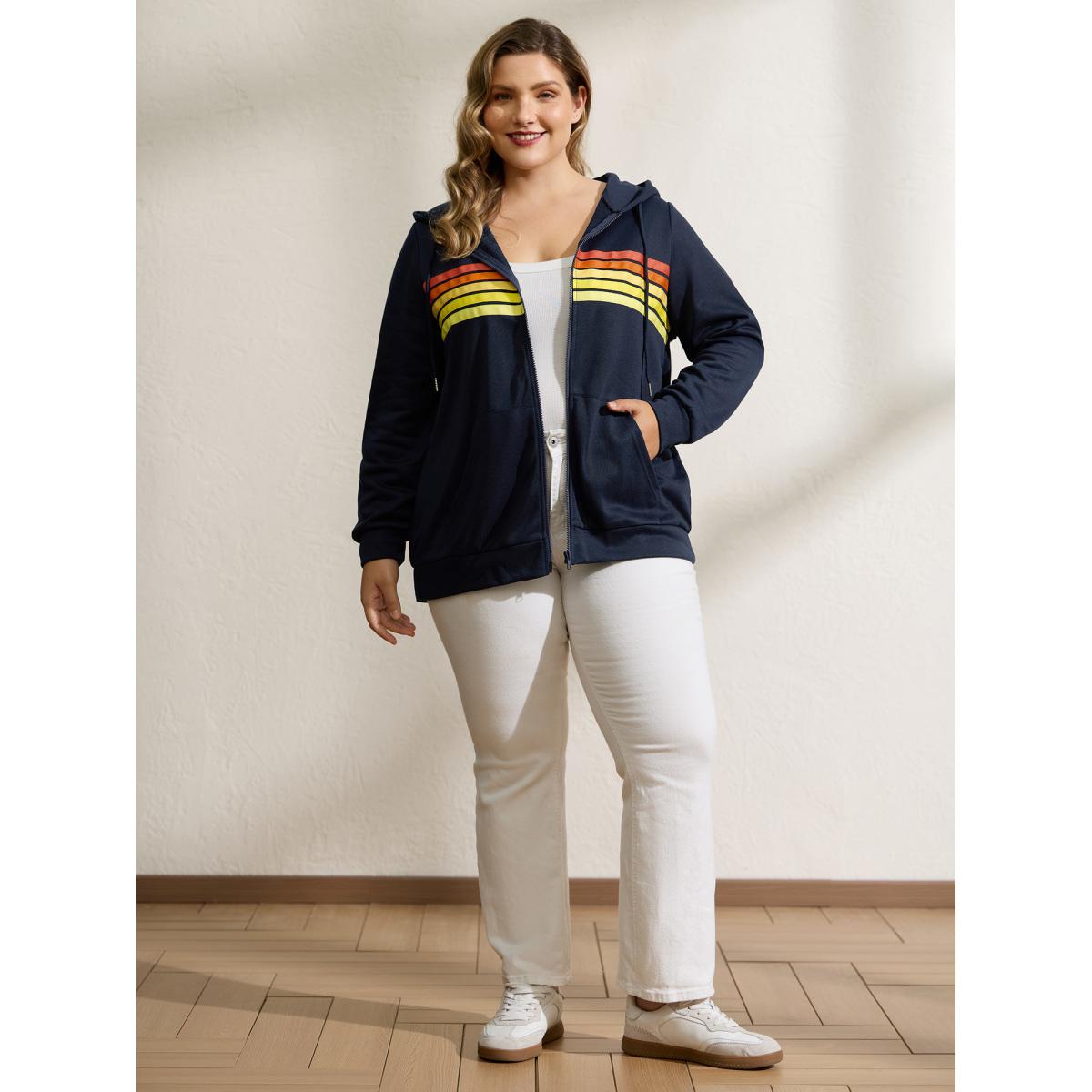 Plus Size Color Contrast Stripes Zipper Jacket Women Midnight Contrast Patch pocket Casual Jackets BloomChic 28/5X Product Image