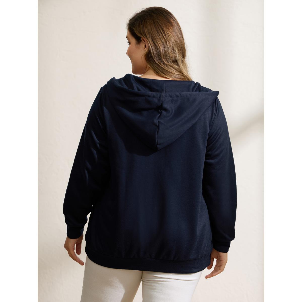 Plus Size Contrast Hooded Drawstring Zipper Button Up Jacket Women Black Contrast Pocket Dailywear Jackets BloomChic 10/M