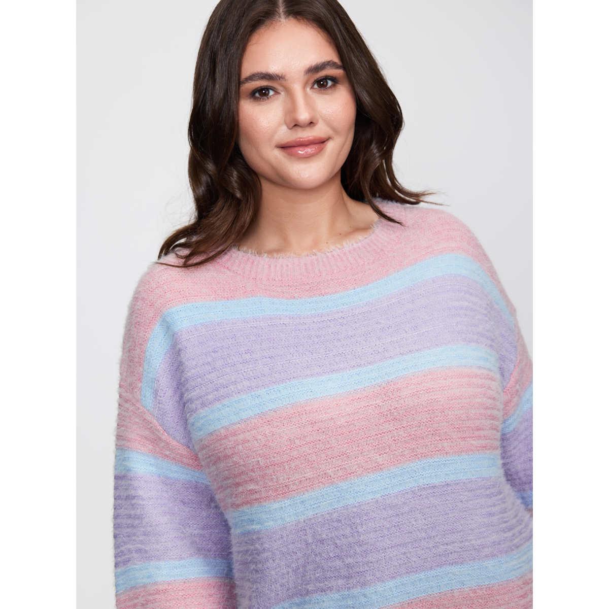 Plus Size Color Stripe Fluffy Textured Pullover Lilac Women Playful Loose Long Sleeve Round Neck Casual Pullovers BloomChic 10/M