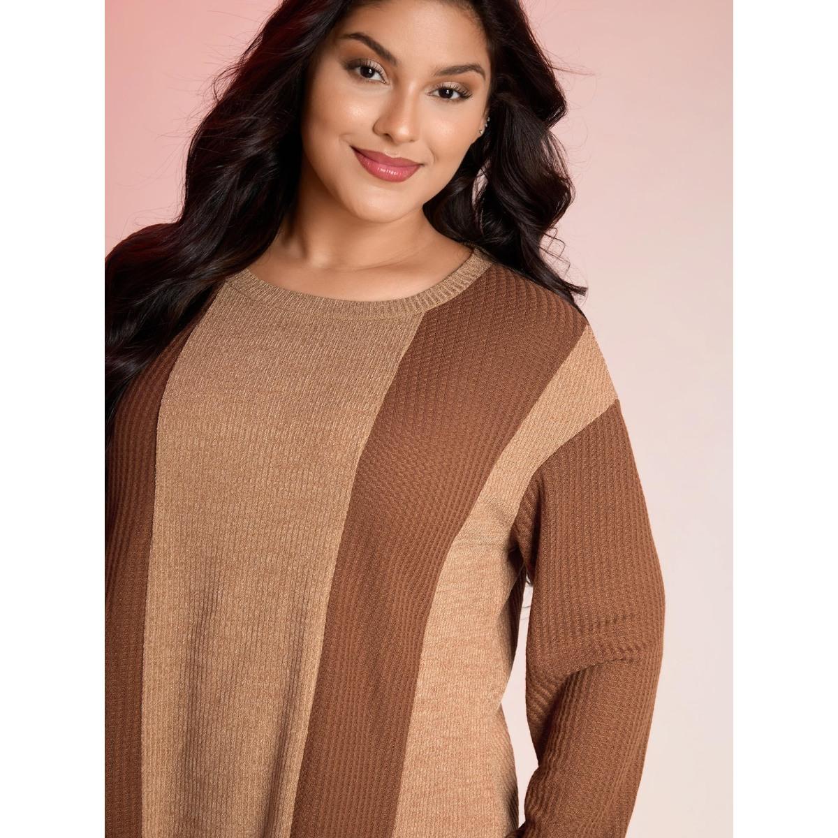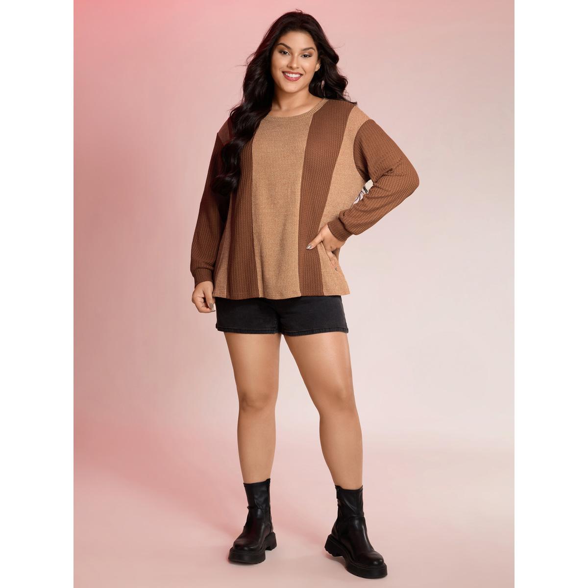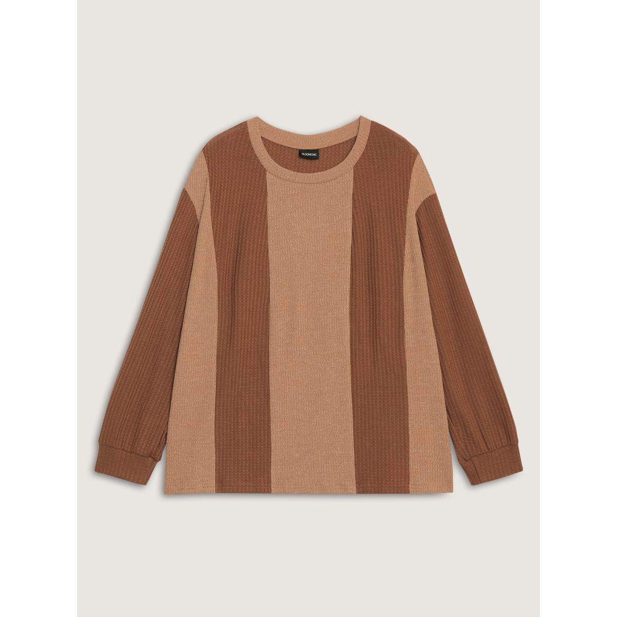 Plus Size Color Stripe Relaxed Fit Round Neck Sweatshirt Women Yellowishbrown Leisure Loose Round Neck Casual Sweatshirts BloomChic 12/L