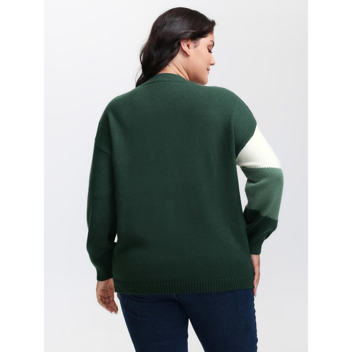 Plus Size Colorblock Drop Shoulder Pullover Greenbean Women Leisure Loose Long Sleeve Round Neck Casual Pullovers BloomChic 18-20/2X