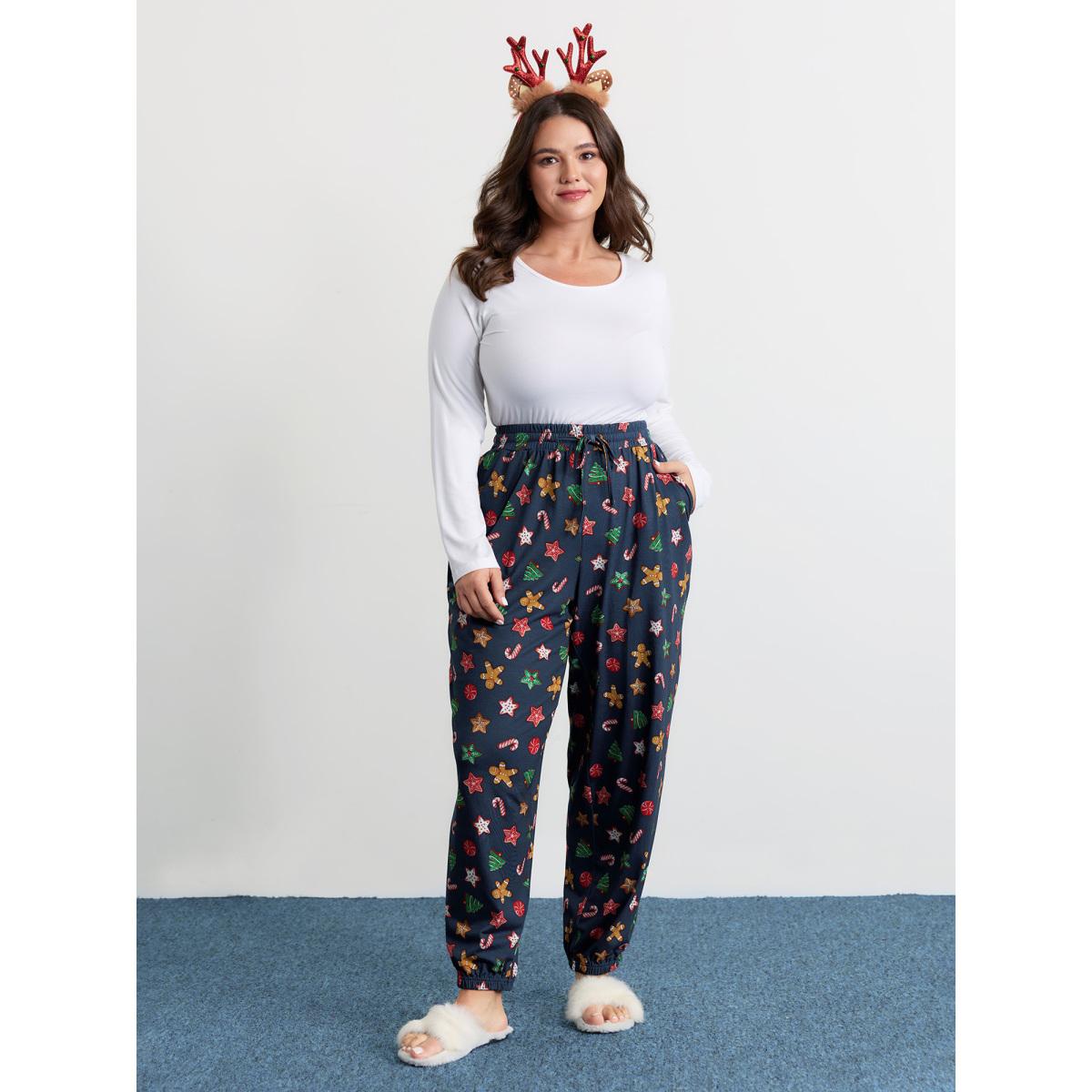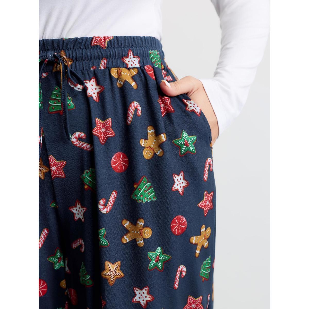Plus Size Colorful Holiday Print Pants Women Multicolor Playful Loose Mid Rise Casual Pants BloomChic 18-20/2X
