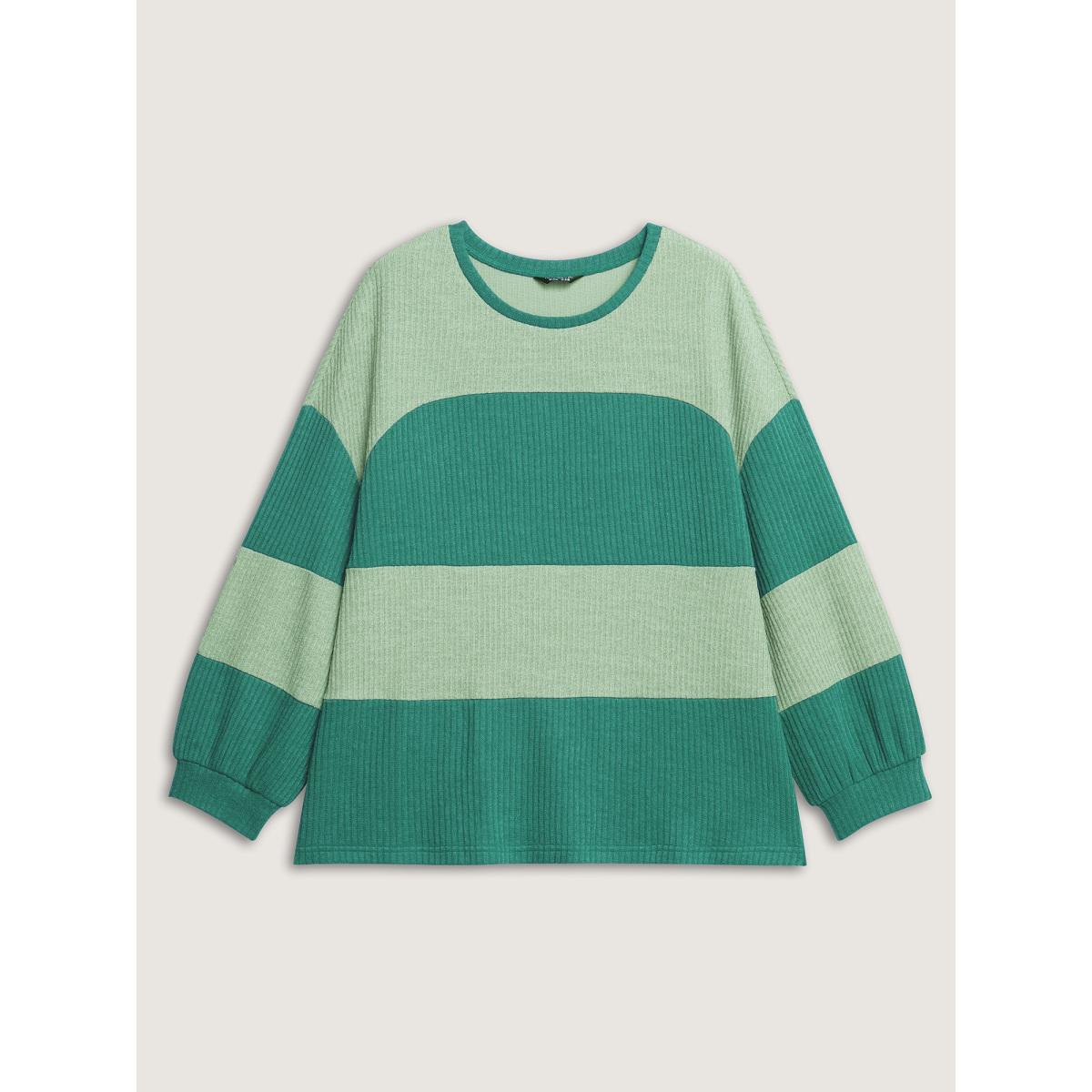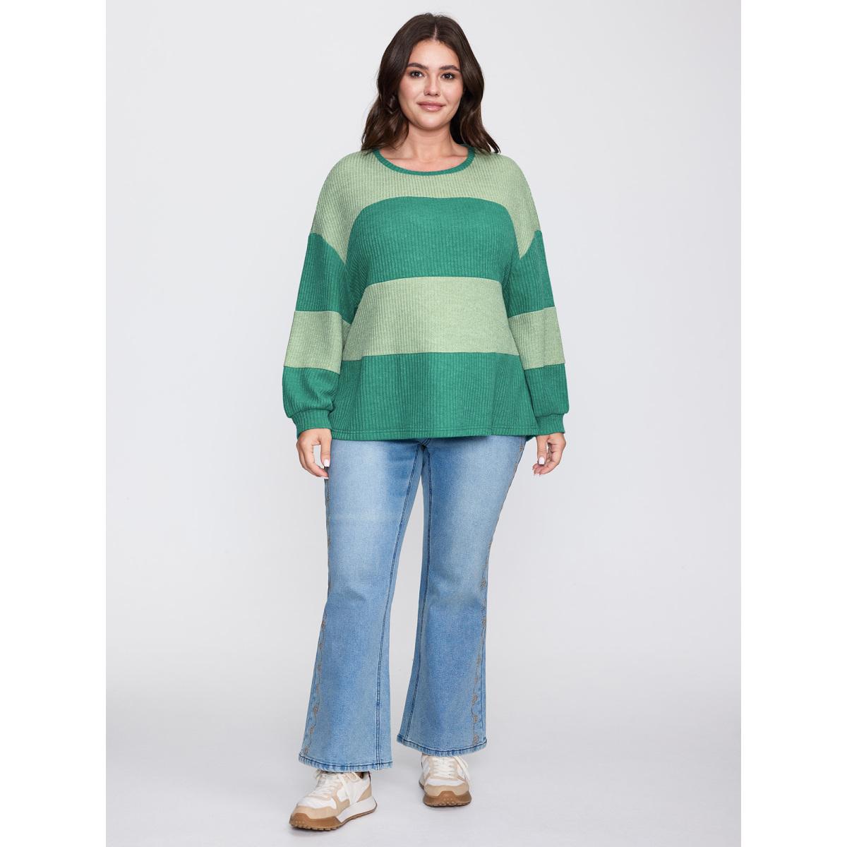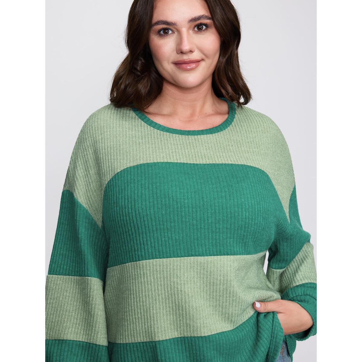 Plus Size Colorful Stripe Ribbed Drop Shoulder Sweatshirt Women Emerald Leisure Texture Round Neck Casual Sweatshirts BloomChic 26/4X