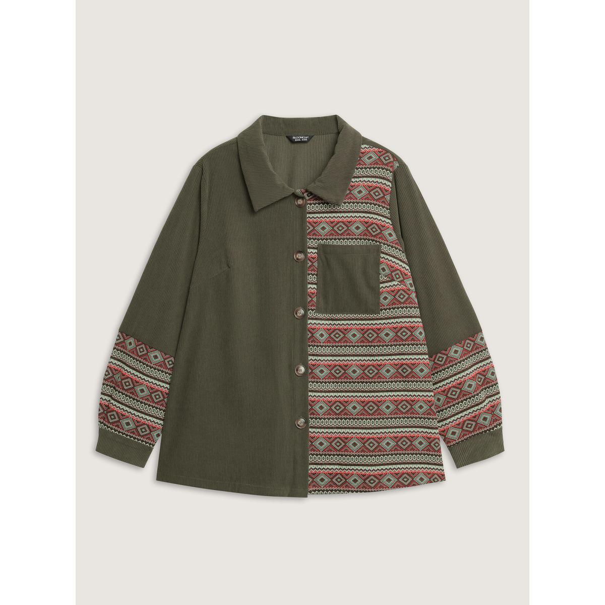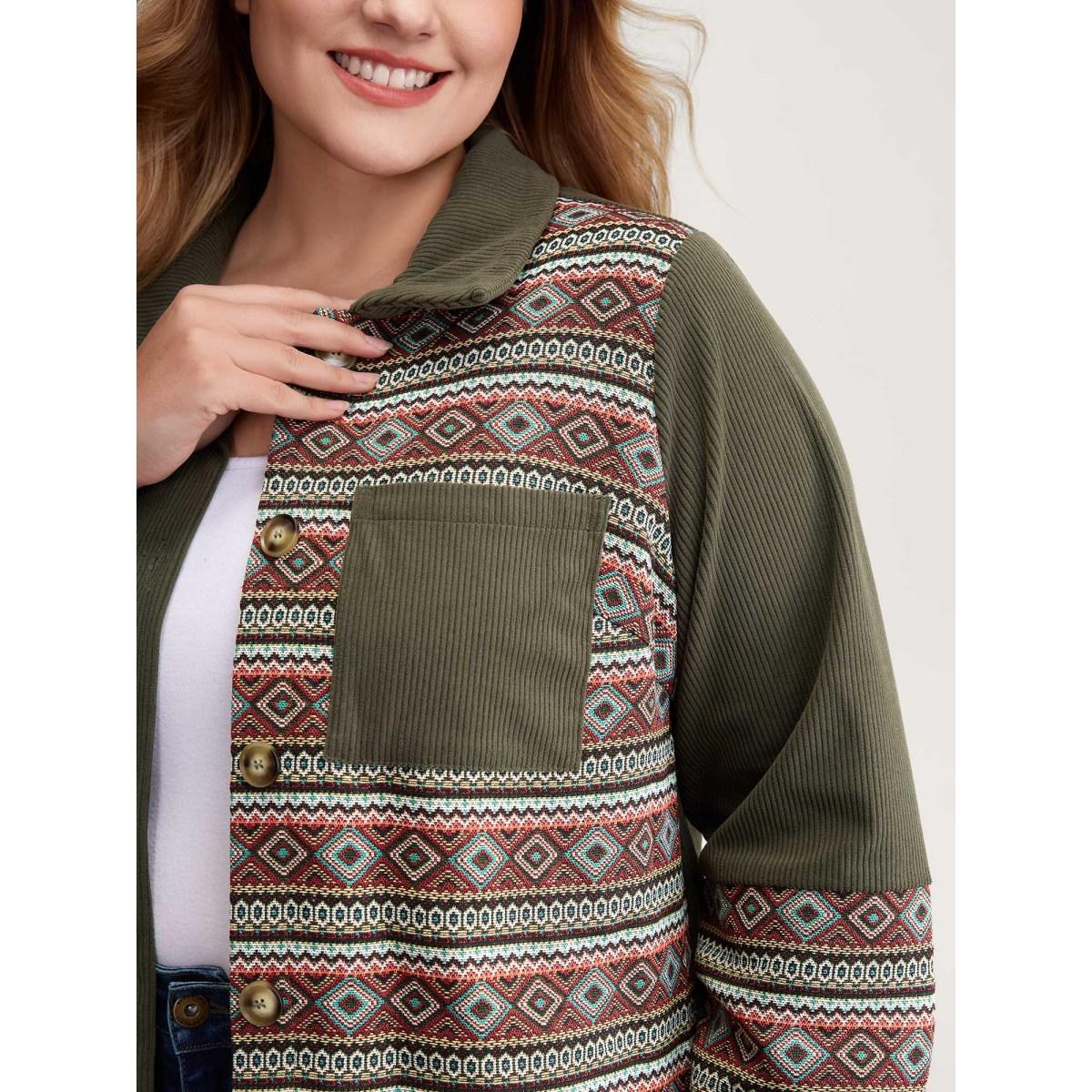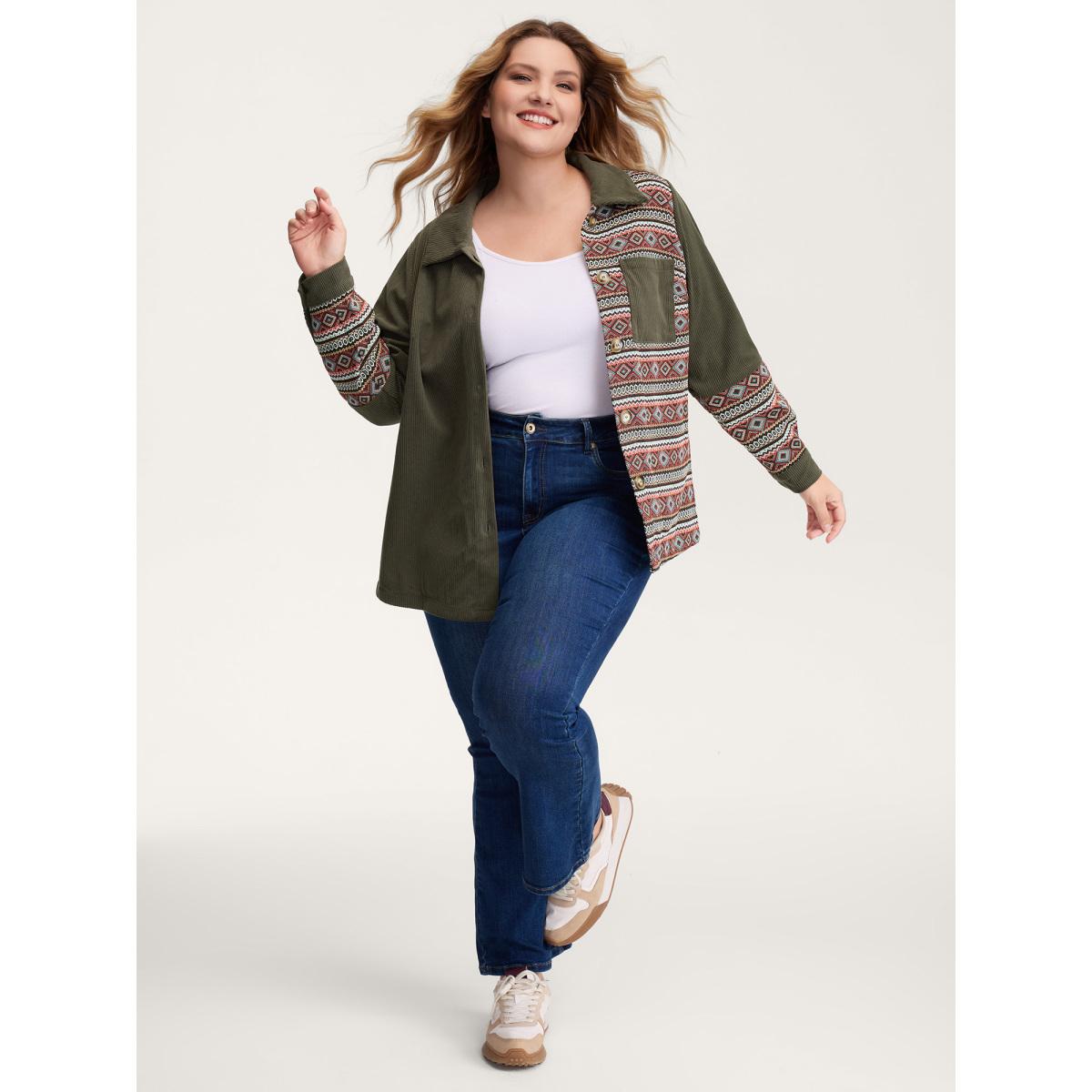 Plus Size Corduroy Spliced Yarn-Dyed Contrast Jacket Women ArmyGreen Texture Casual Jackets BloomChic 18-20/2X