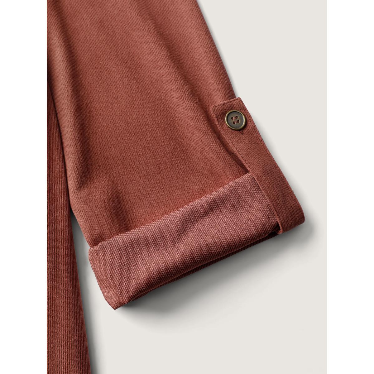 Plus Size Solid Pocket Button Detail Ties Roll Sleeve Dress Rust Women Office Plain V-neck Short sleeve Curvy Midi Dress BloomChic 12/L