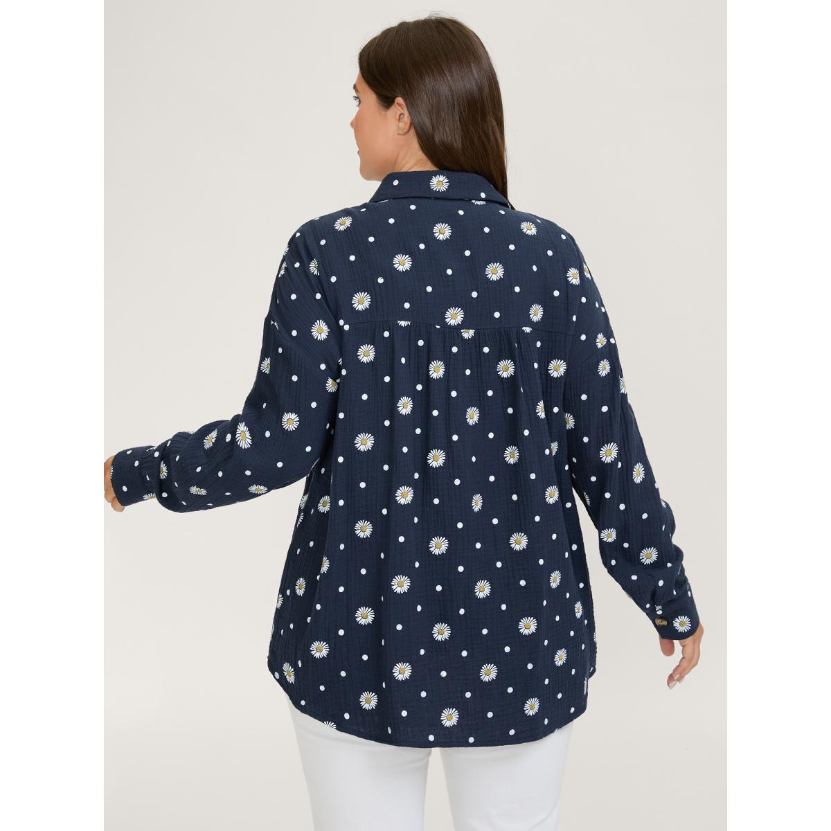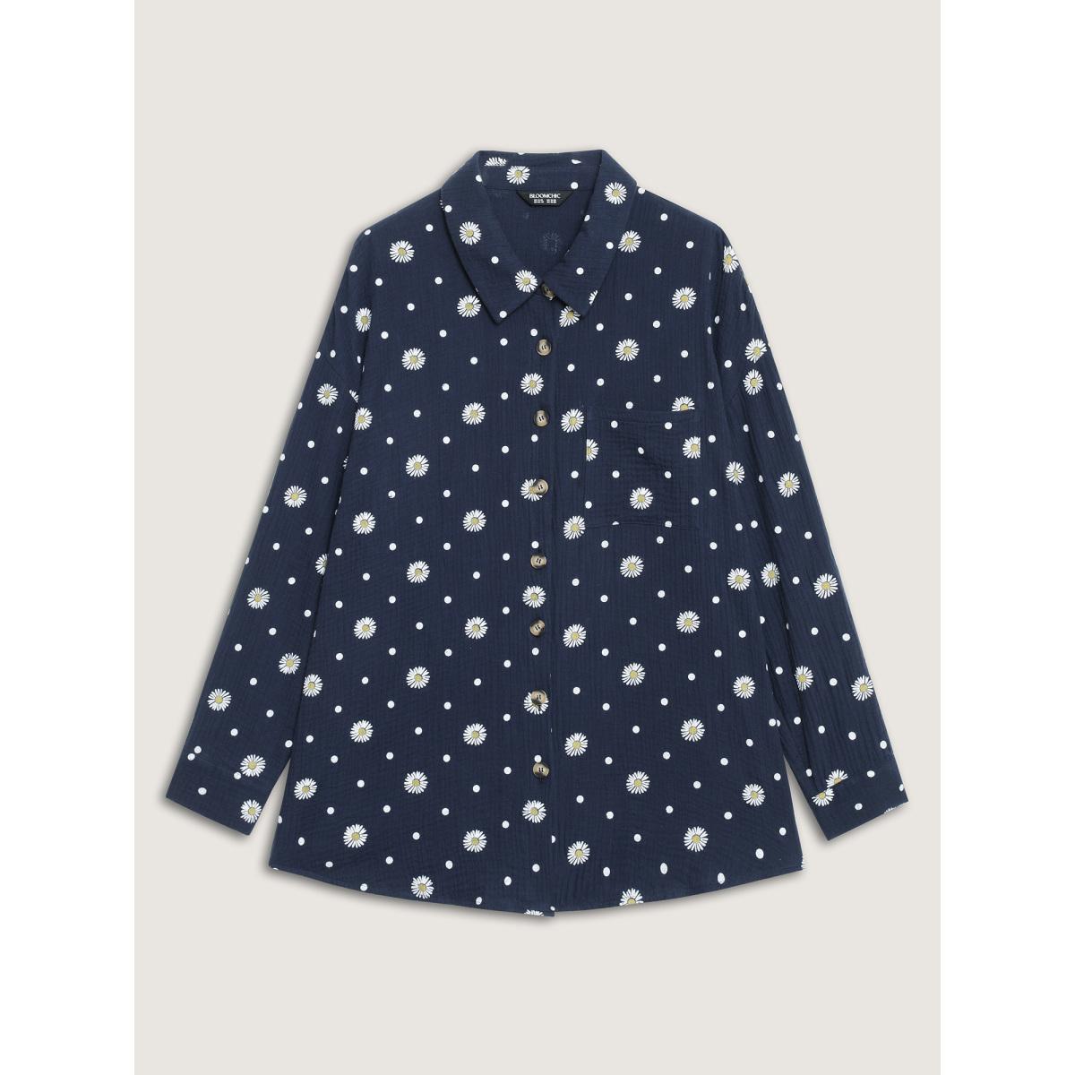Plus Size Cotton Floral Print Button-Down Jacket Women Indigo Texture Loose Patch pocket Casual Jackets BloomChic 30/6X Product Image