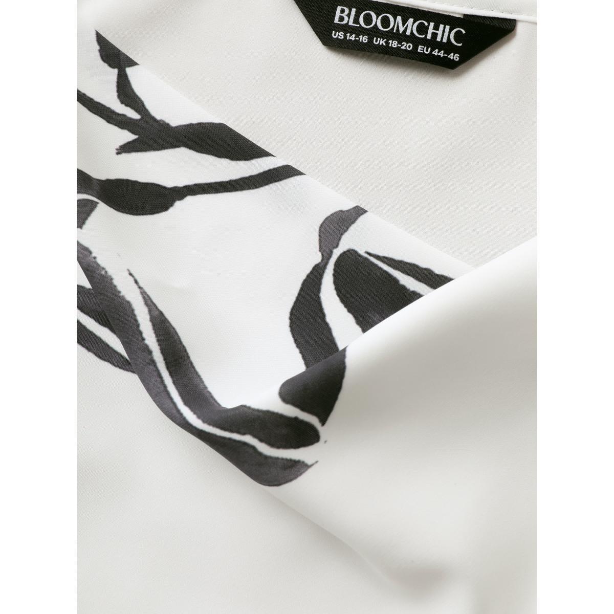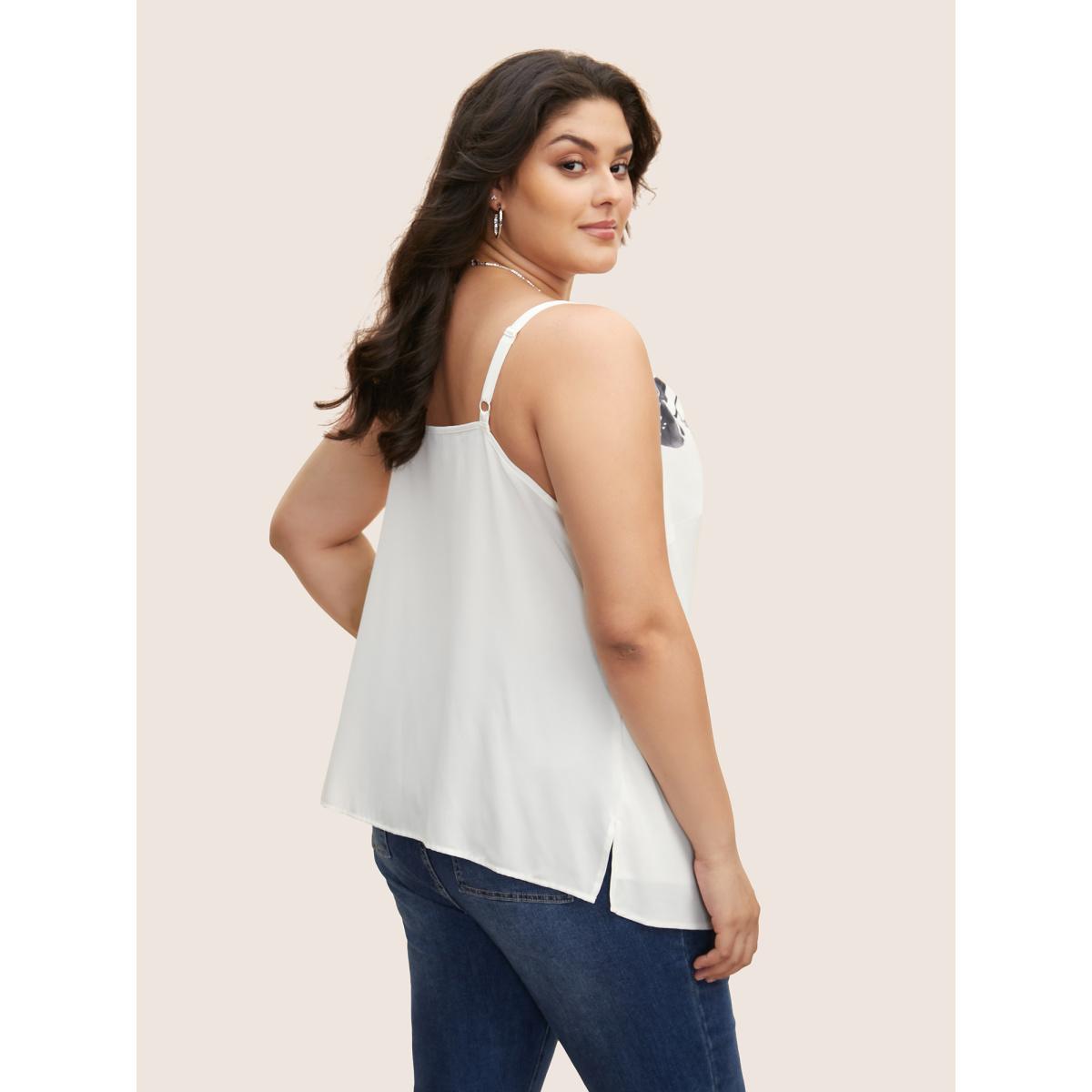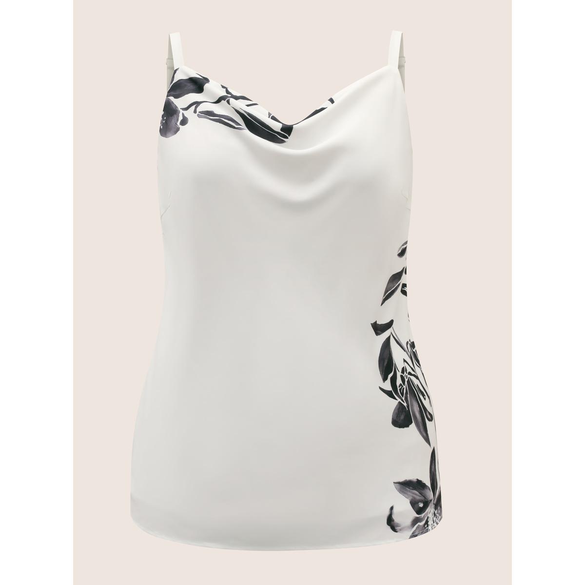 Plus Size Cowl Neck Lily Print Split Hem Cami Top Women Ivory Elegant Contrast Cowl Neck Everyday Tank Tops Camis BloomChic 22-24/3X