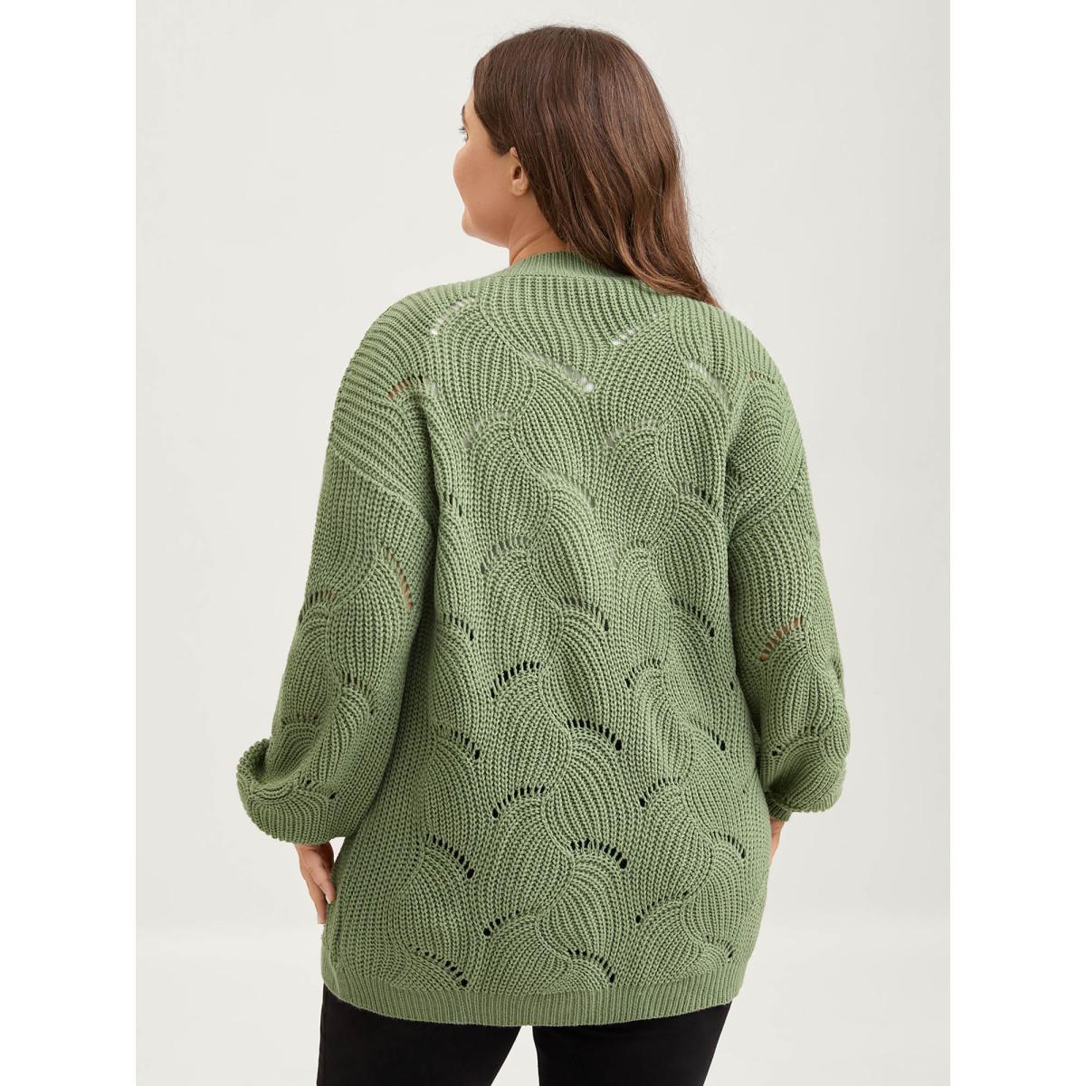 Plus Size Solid Pointelle Knit Heather Rib Knit Open Front Cardigan ArmyGreen Women Casual Loose Long Sleeve Office Cardigans BloomChic 14-16/1X