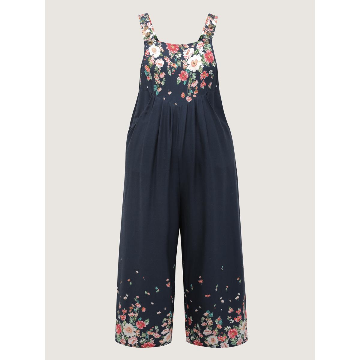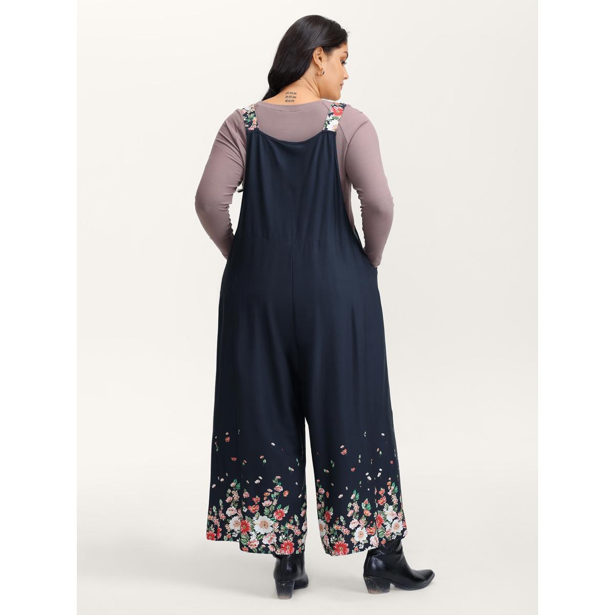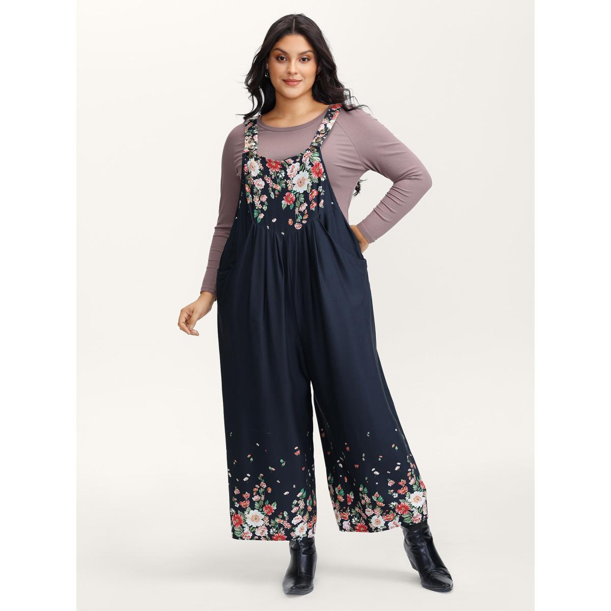 Plus Size DarkBlue Floral Print Pockets Casual Jumpsuit Women Leisure Sleeveless Non Casual Loose Jumpsuits BloomChic 30/6X Product Image