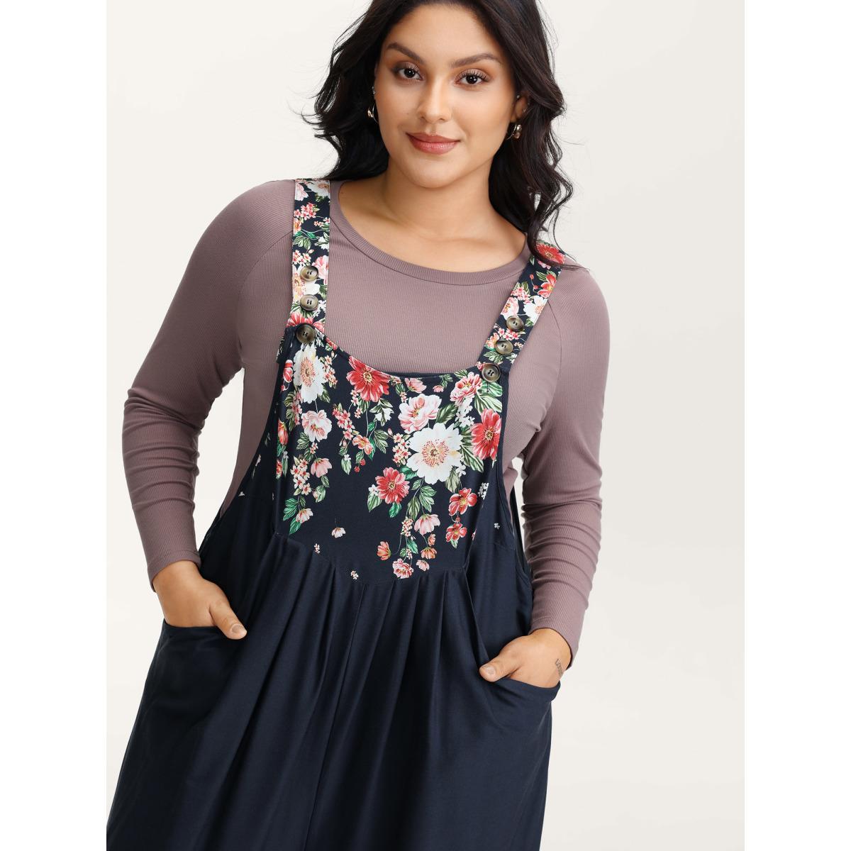 Plus Size DarkBlue Floral Print Pockets Casual Jumpsuit Women Leisure Sleeveless Non Casual Loose Jumpsuits BloomChic 30/6X