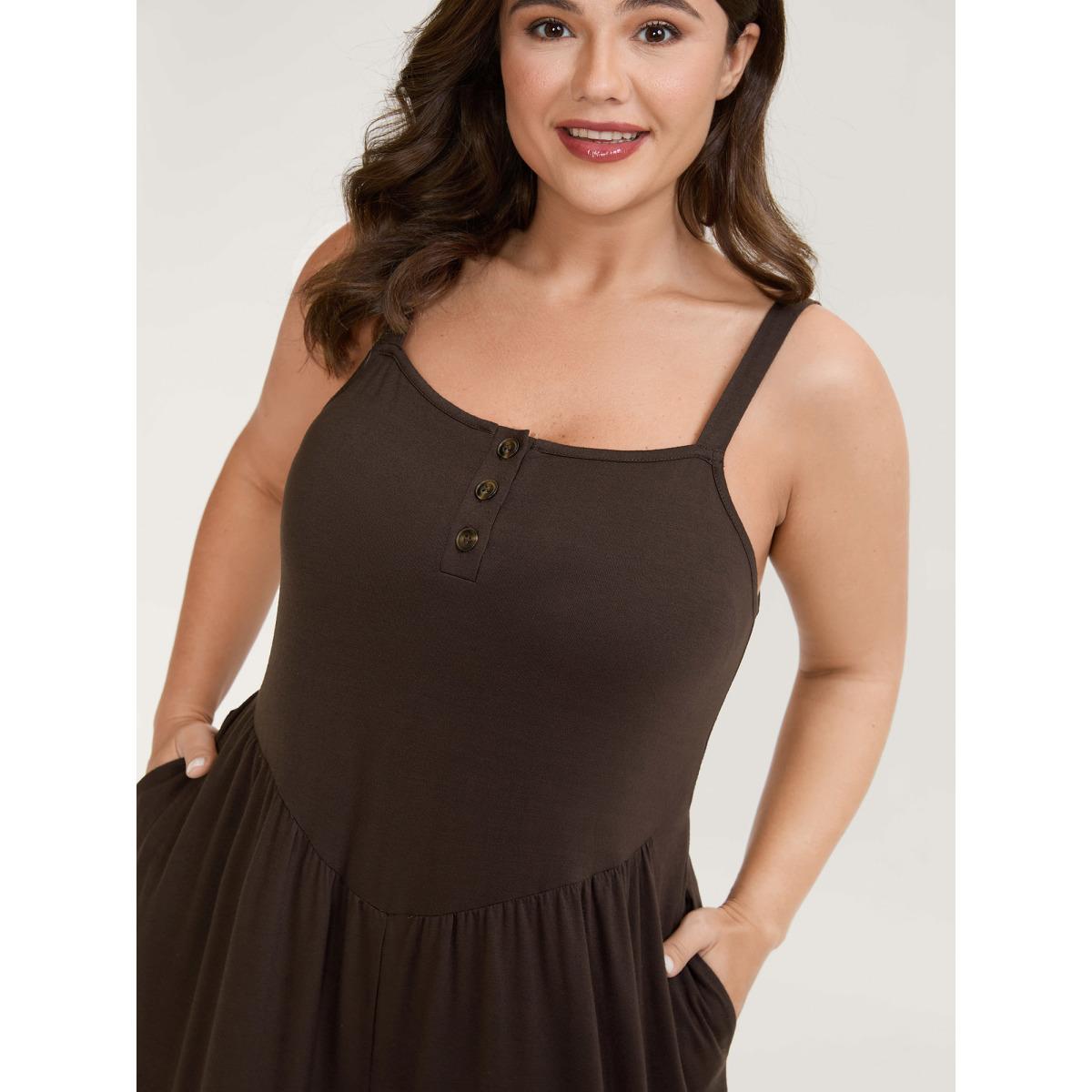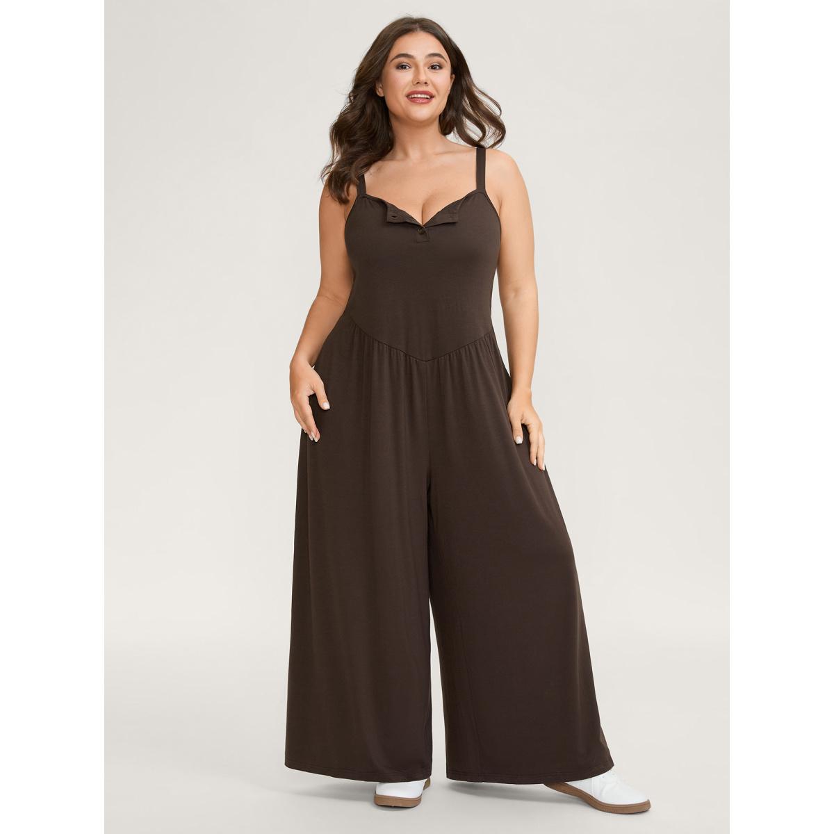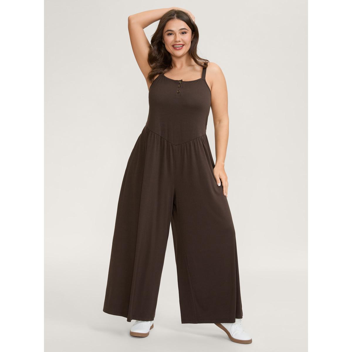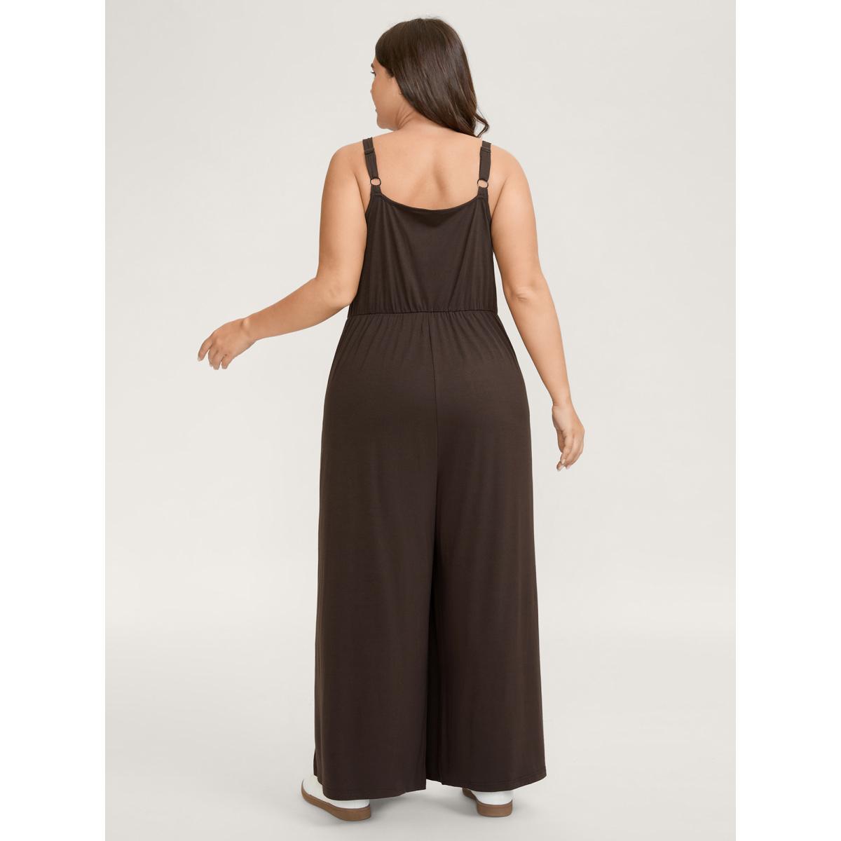Plus Size DarkBrown Supersoft Pleated Side Waist Detail Jumpsuit Women Leisure Sleeveless Non Casual Loose Jumpsuits BloomChic 28/5X