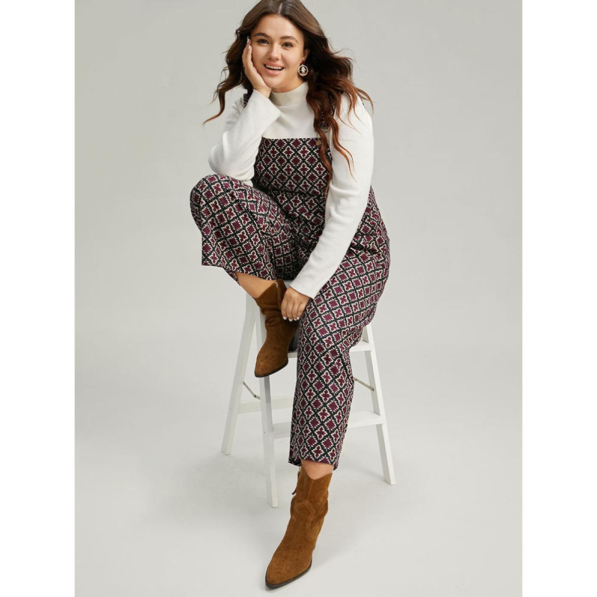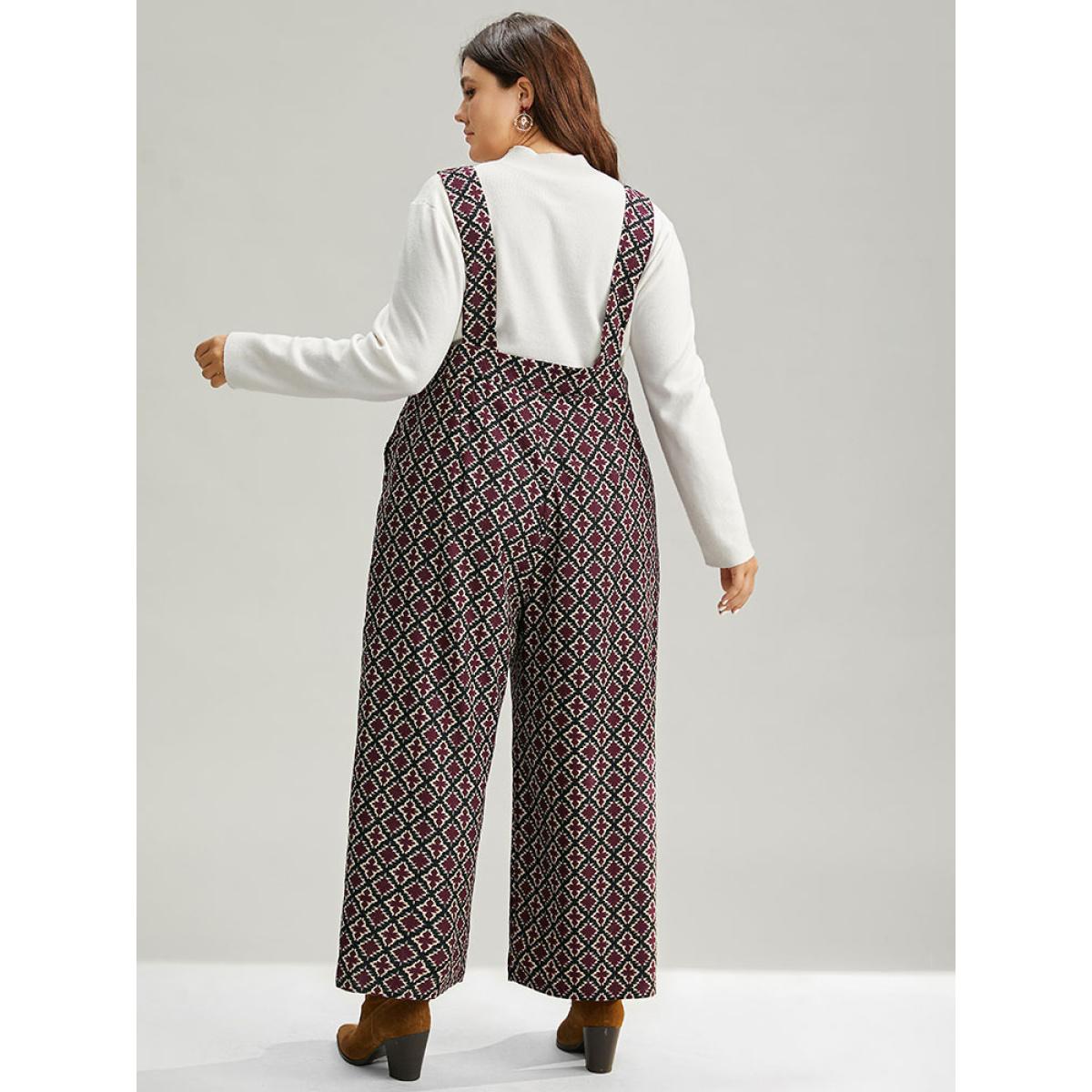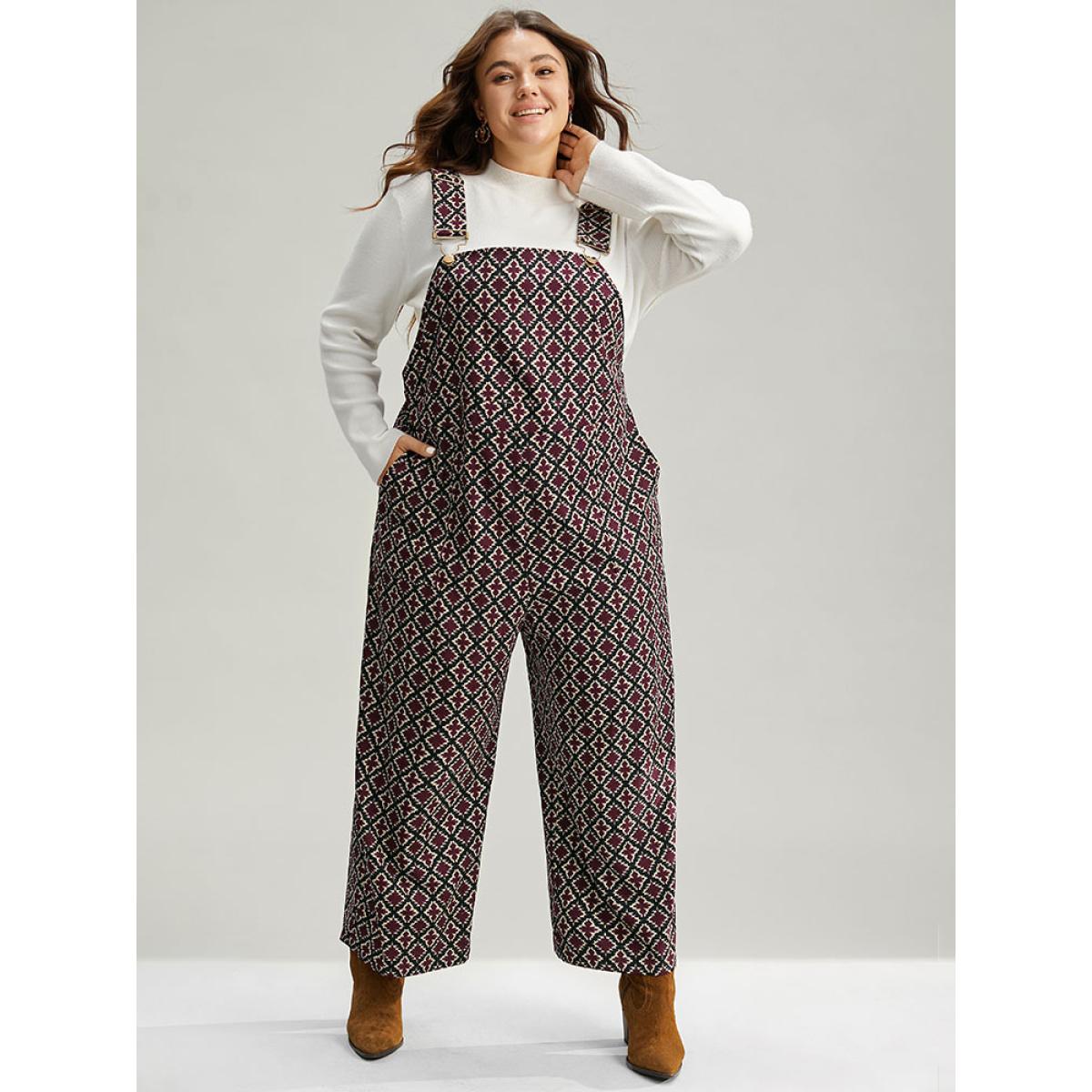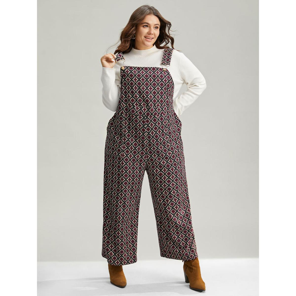 Plus Size DarkGreen Christmas Geometric Adjustable Straps Jumpsuit Women Casual Sleeveless Spaghetti Strap Festival-Christmas Loose Jumpsuits BloomChic 14-16/1X