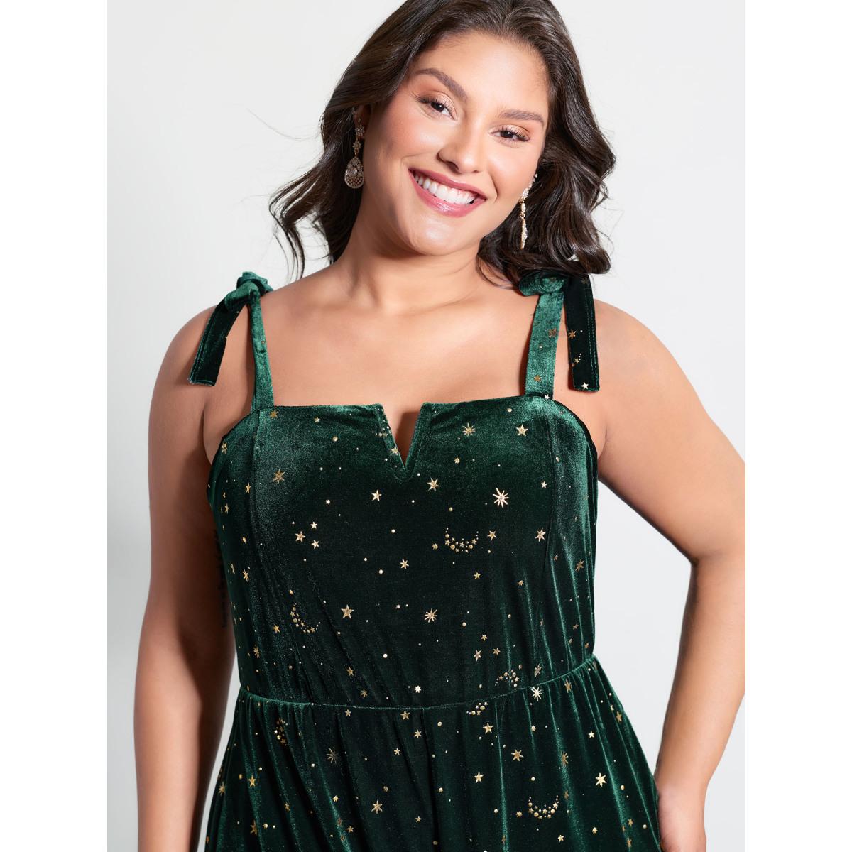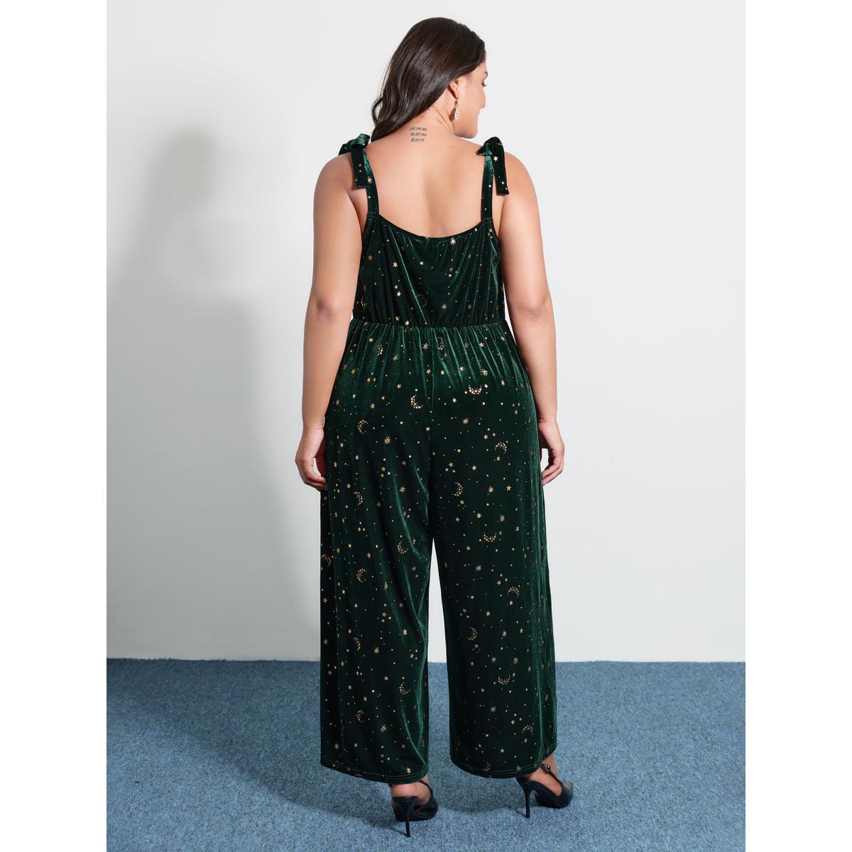 Plus Size DarkGreen Velvet Stretchy Gold Stamp Jumpsuit Women Party&Cocktail Sleeveless Non Party Loose Jumpsuits BloomChic 26/4X