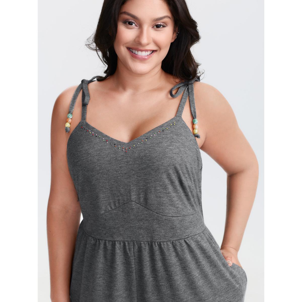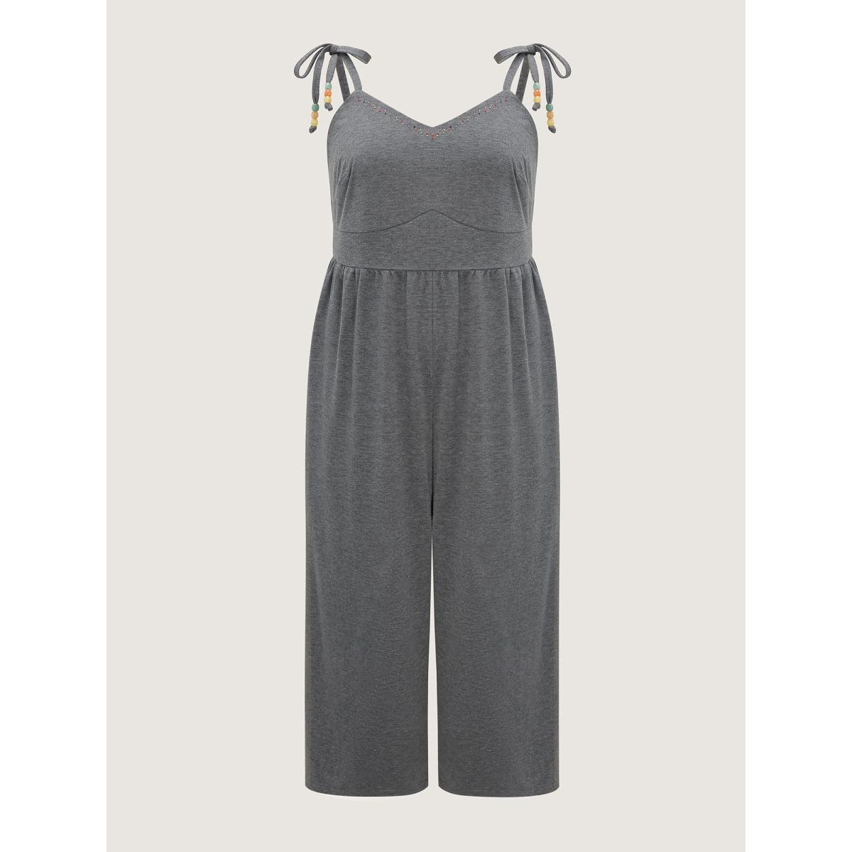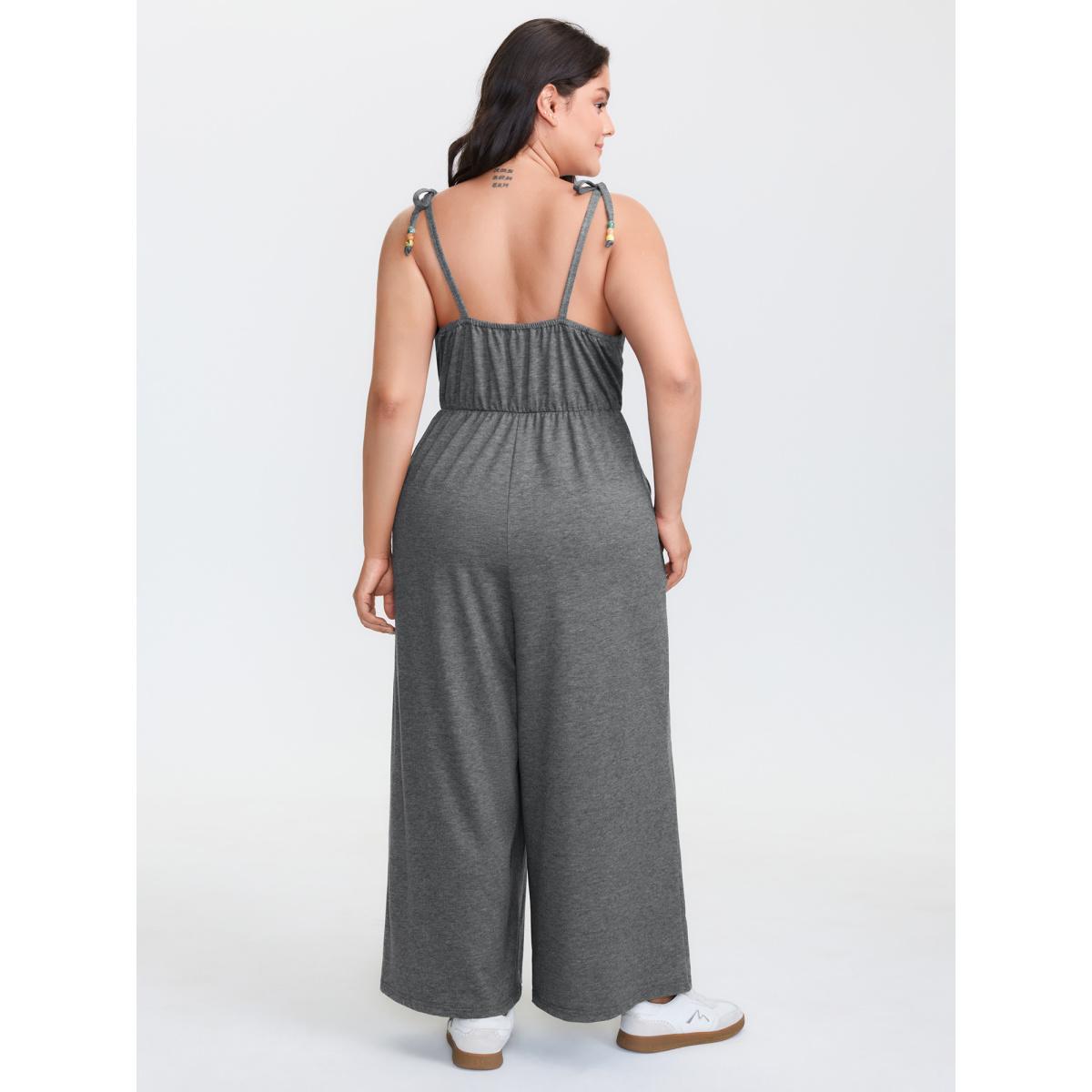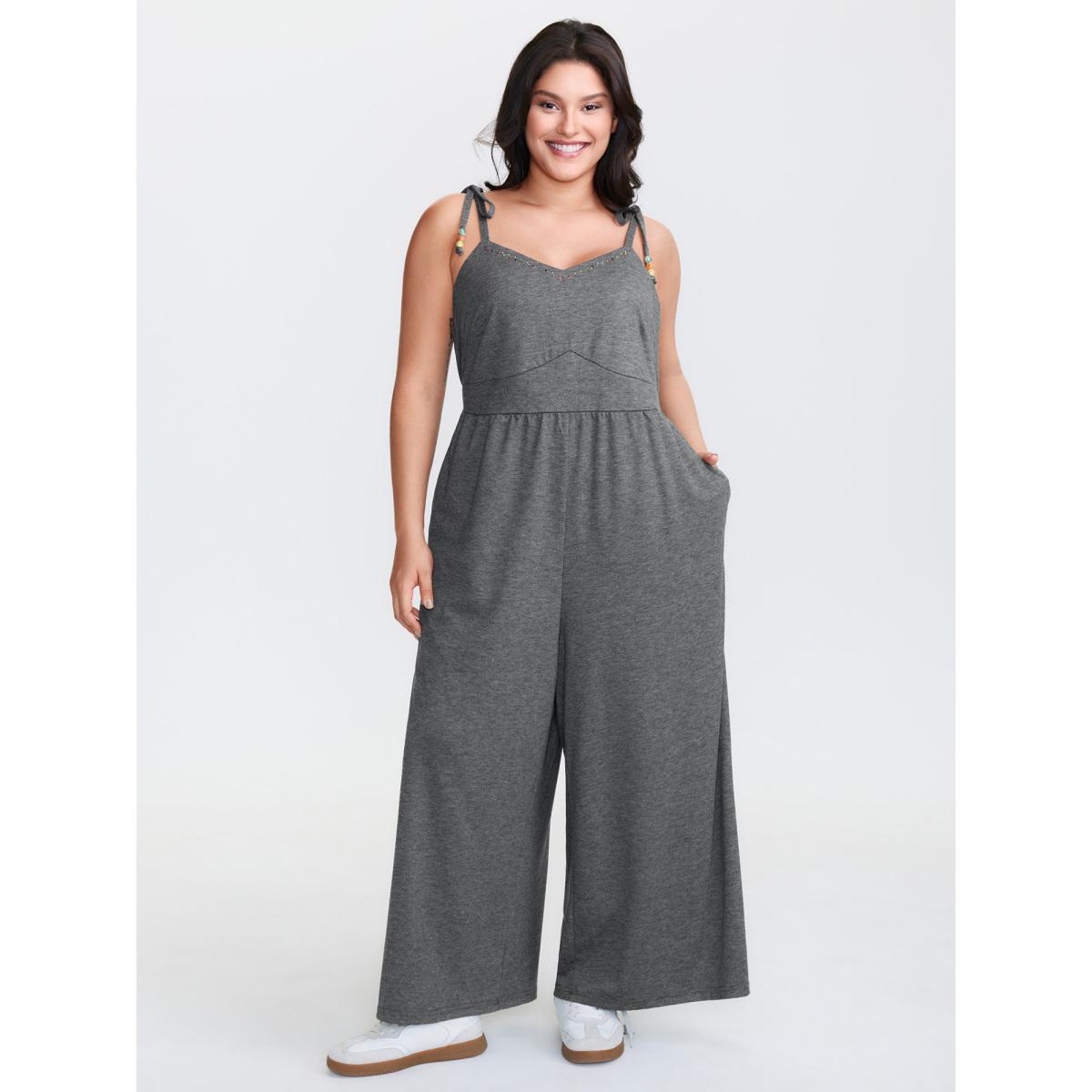 Plus Size DimGray Shoulder-Tie Stretchy Beaded Neckline Jumpsuit Women Leisure Sleeveless V-neck Casual Loose Jumpsuits BloomChic 26/4X