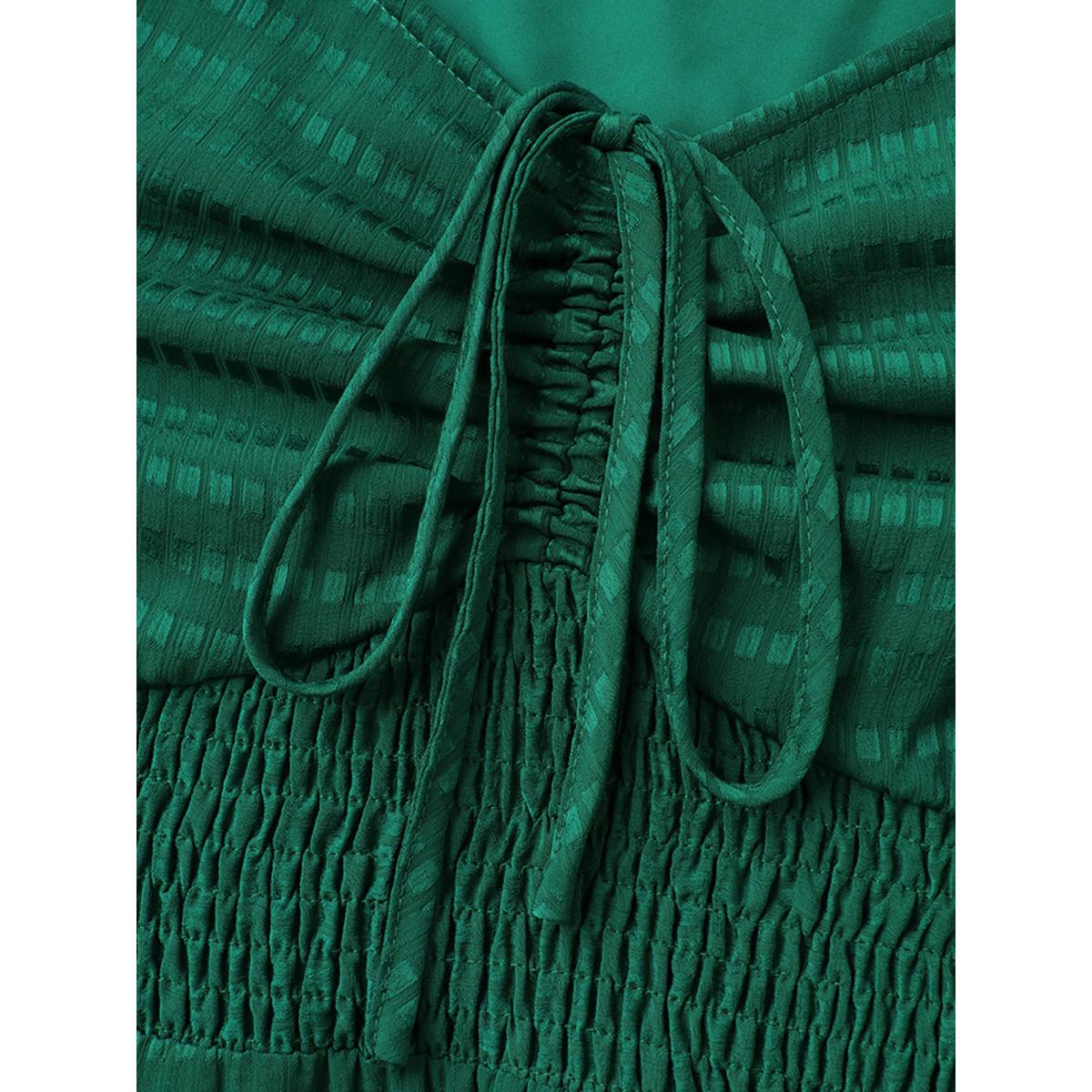 Plus Size Drawstring Cinched-Bust Sweetheart Maxi Dress Cyan Women Timeless Square Neck Elbow-length sleeve Curvy BloomChic 12/L Product Image