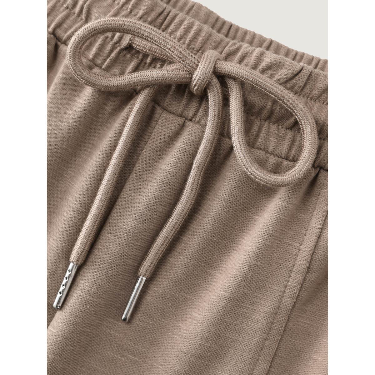 Plus Size Plain Elastic Waist Ties Pocket Pants Women DarkBrown Casual Straight Leg High Rise Dailywear Pants BloomChic 22-24/3X