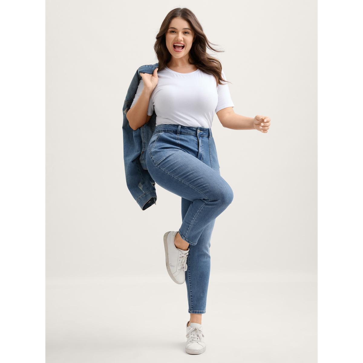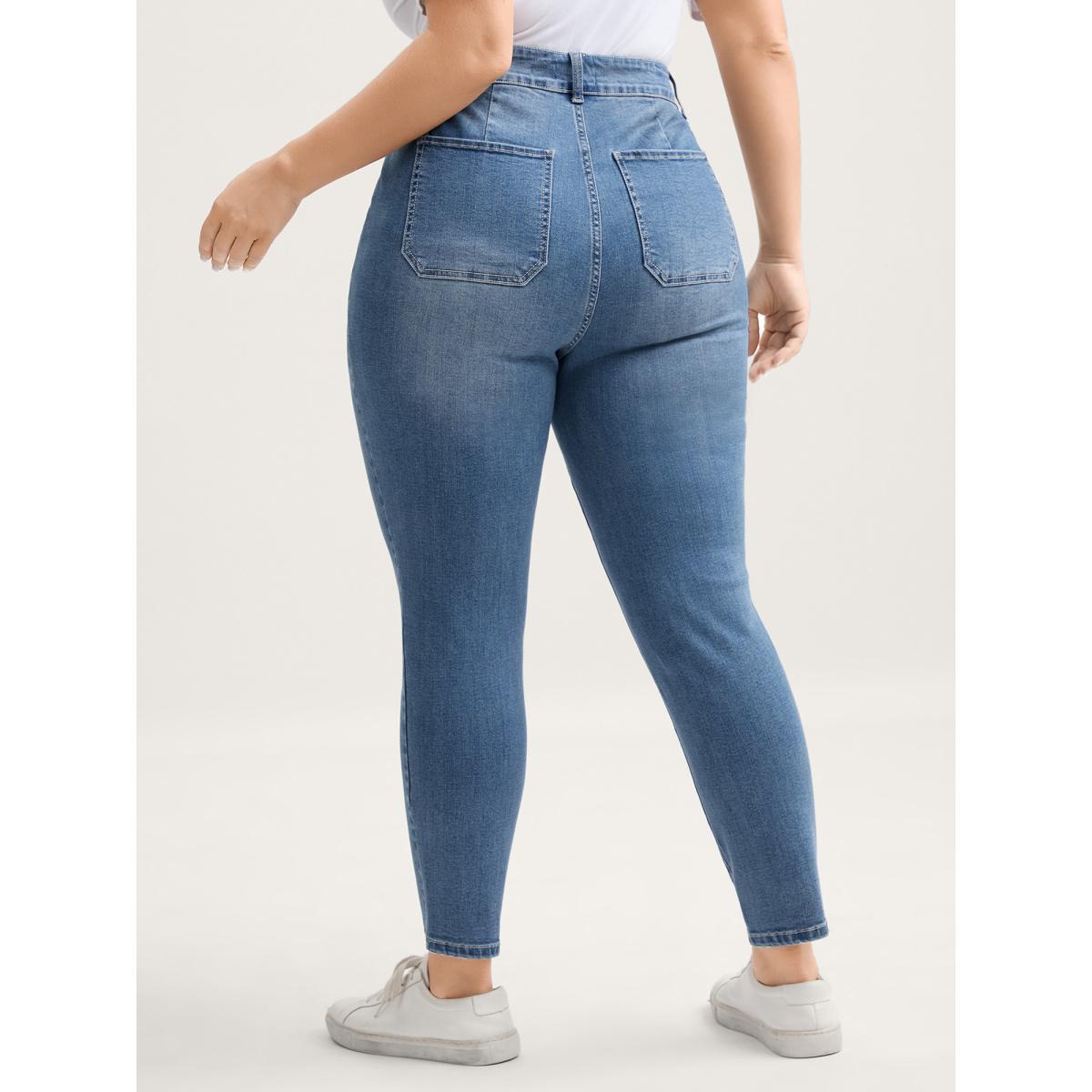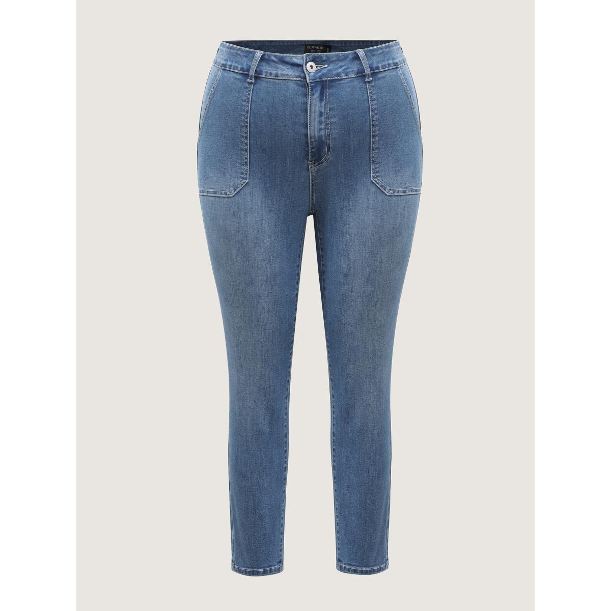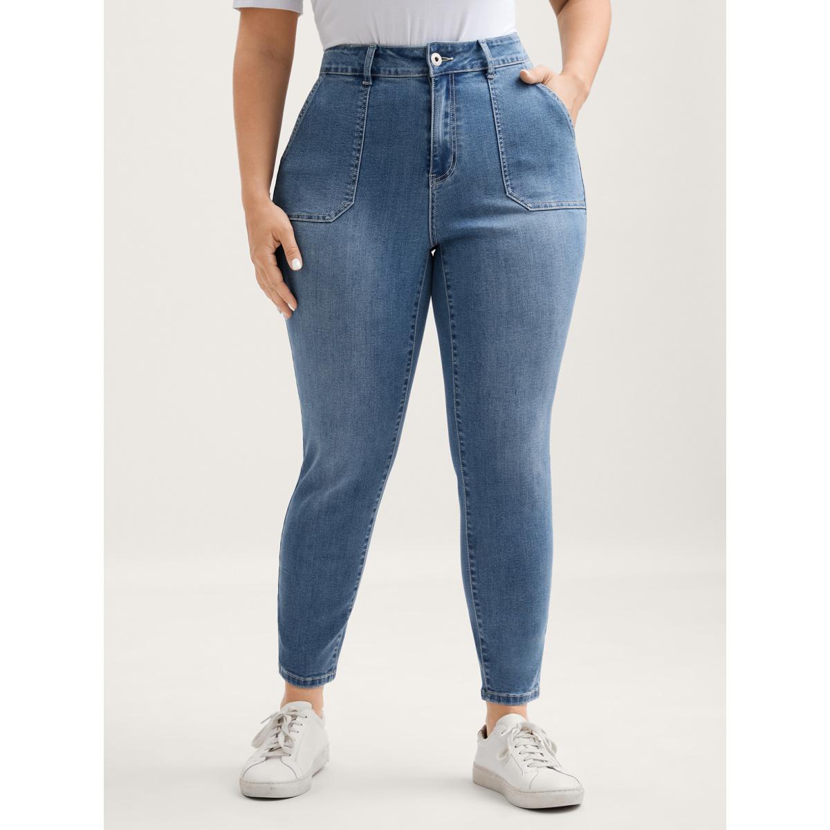 Plus Size Elastic Waist Skinny-Fit Pocket Jeans Women Denimindigo Leisure Pocket High stretch Slanted pocket Jeans BloomChic 10/M