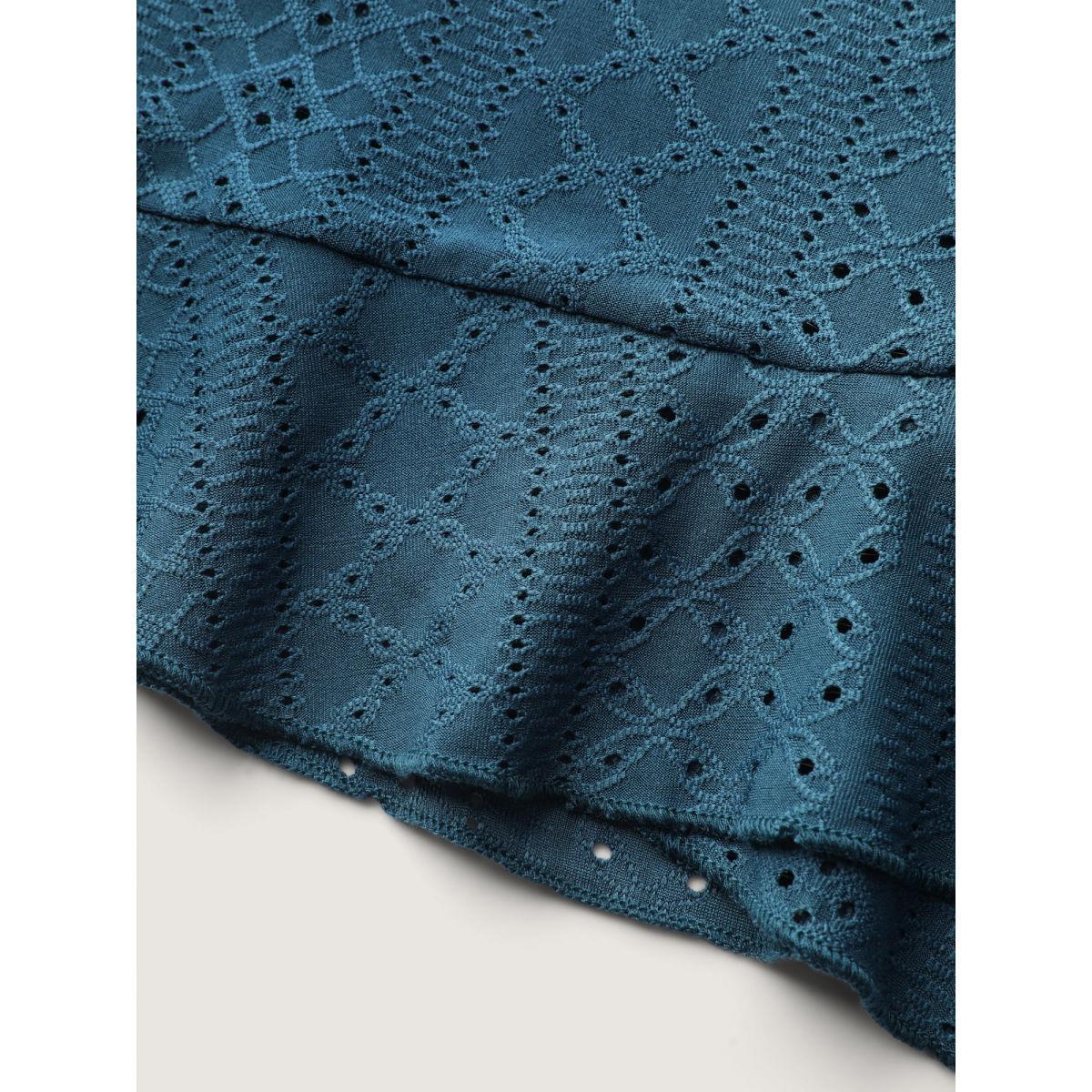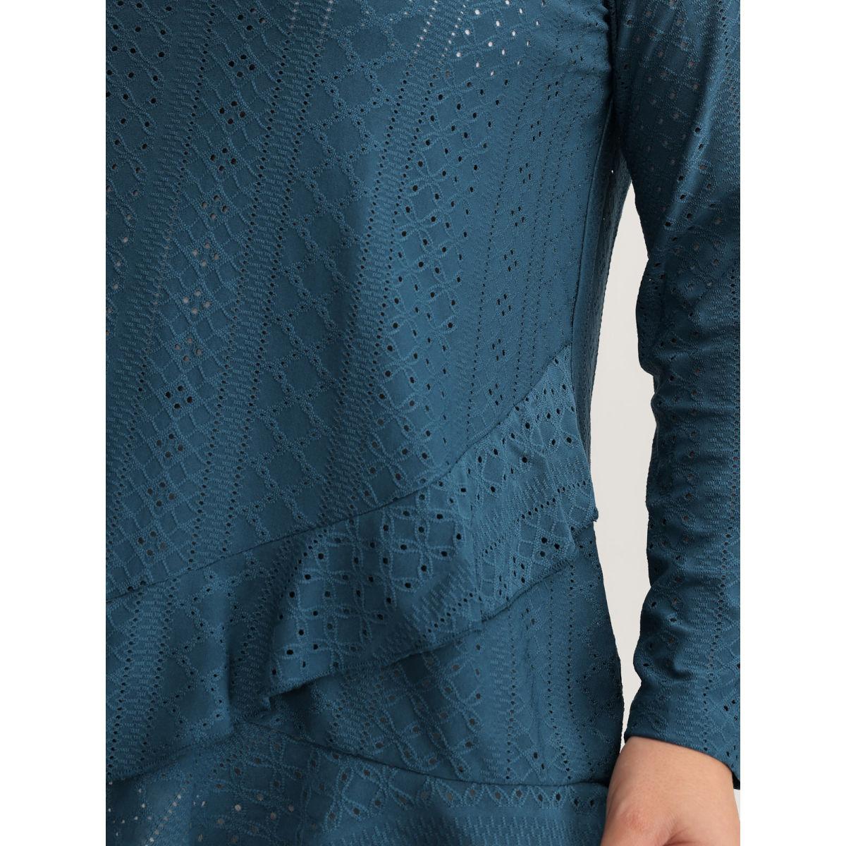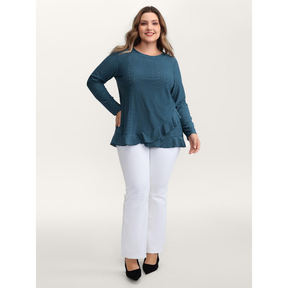 Plus Size Eyelet Trim Overlap Ruffled Hem T-Shirt Mediumblue Women Romantic Round Neck Elegant T-shirts BloomChic 26/4X