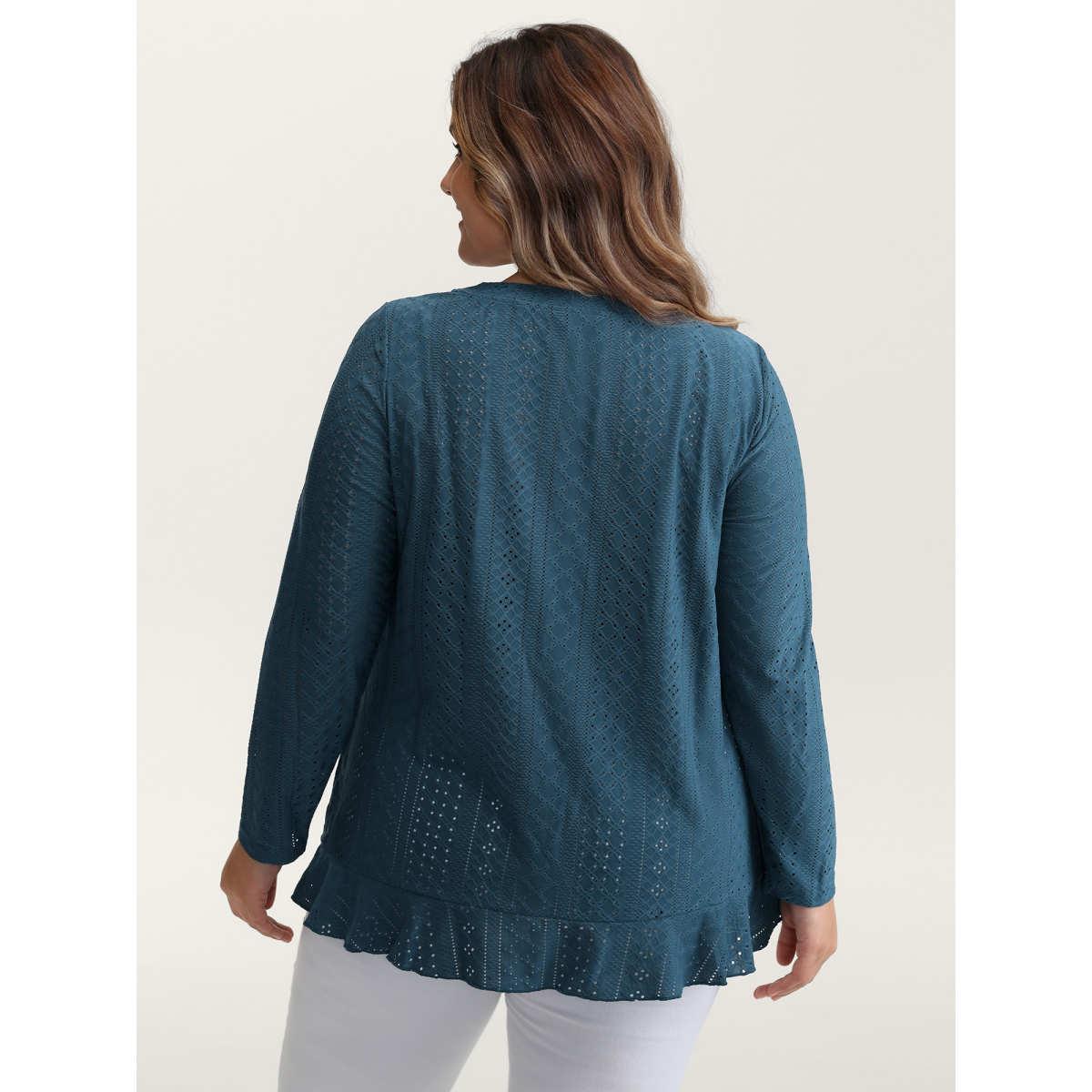 Plus Size Eyelet Trim Overlap Ruffled Hem T-Shirt Mediumblue Women Romantic Round Neck Elegant T-shirts BloomChic 26/4X Product Image