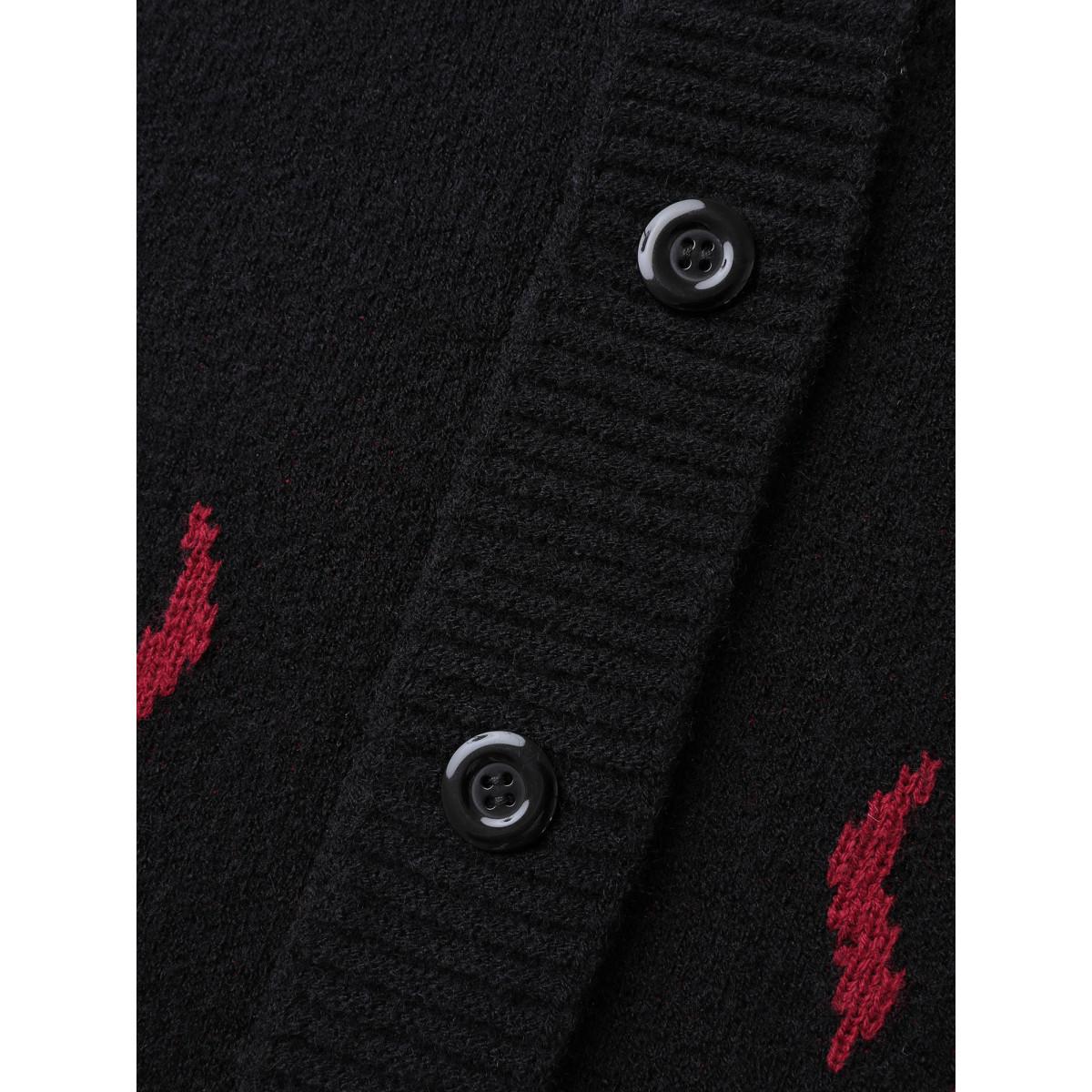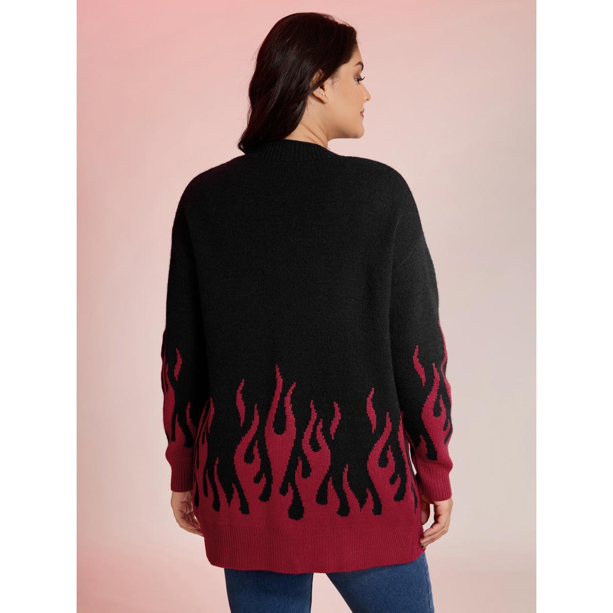 Plus Size Flame Pattern Ribbed Hem Pockets Knit Cardigan Black Women Playful Loose Long Sleeve Casual Cardigans BloomChic 12/L
