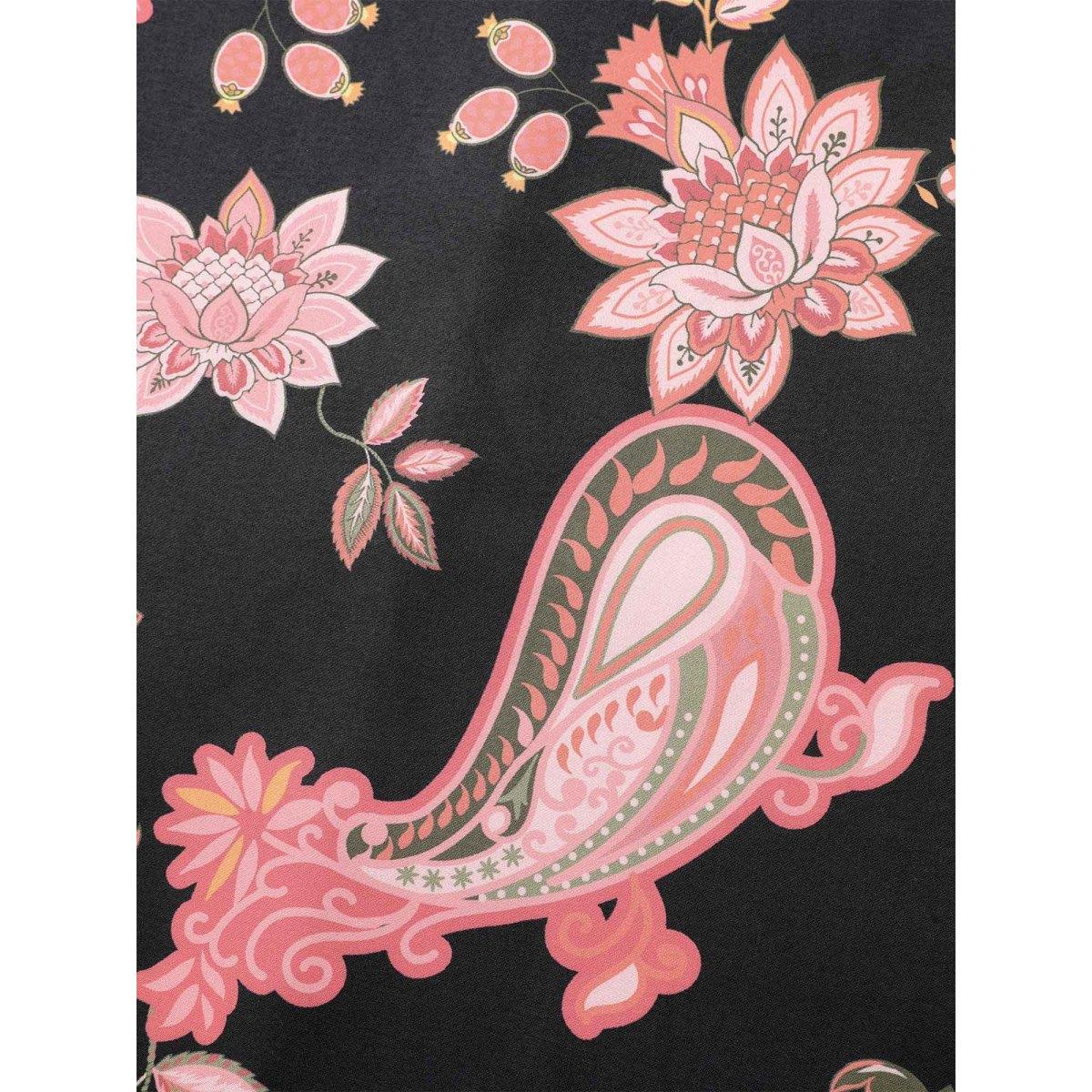 Plus Size Boho Floral Print Notched Collar Midi Dress Black Women Notched collar Short sleeve Curvy BloomChic 10/M