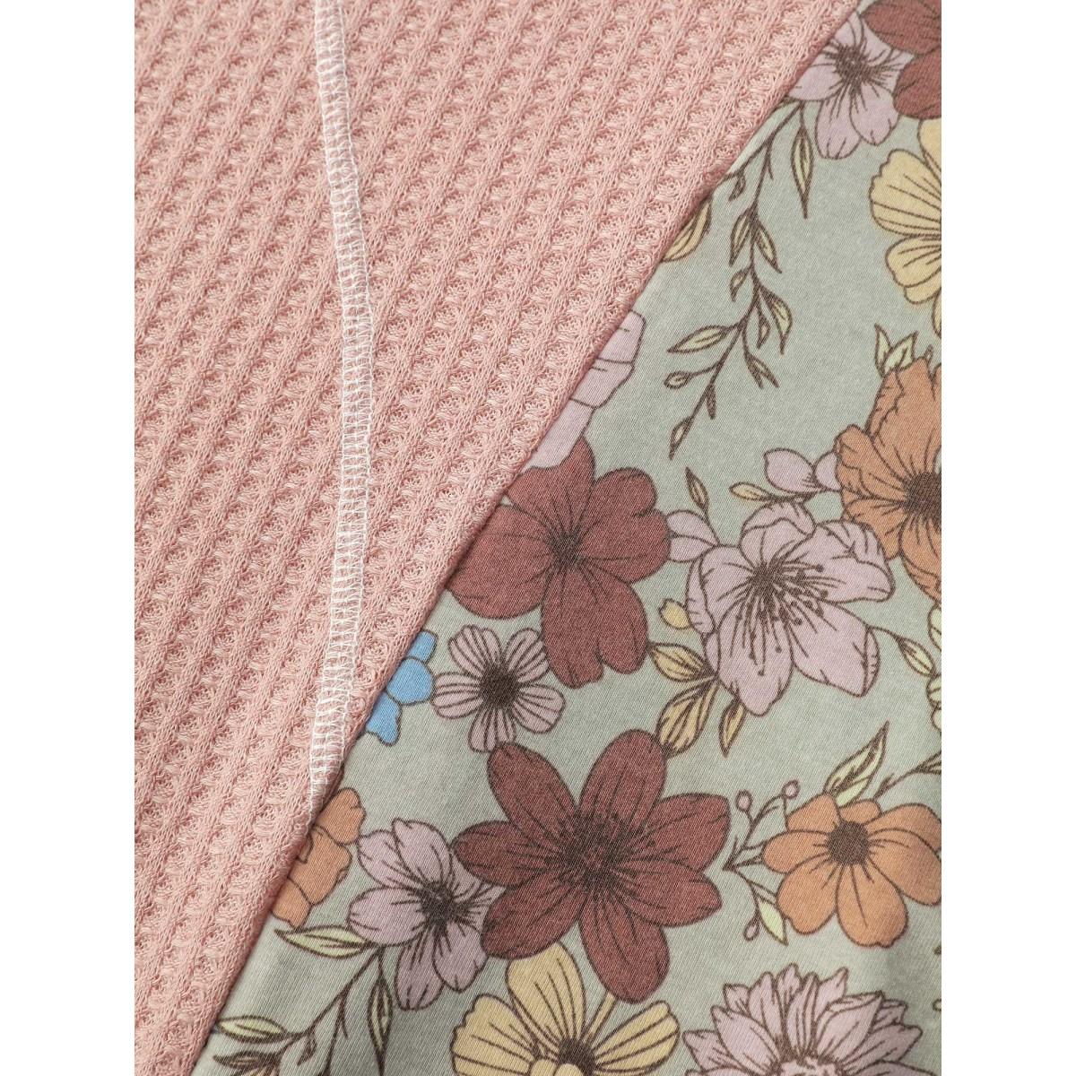 Plus Size Floral Colorblock Waffle Round Neck Sweatshirt Women Nudepink Leisure Texture Round Neck Casual Sweatshirts BloomChic 30/6X