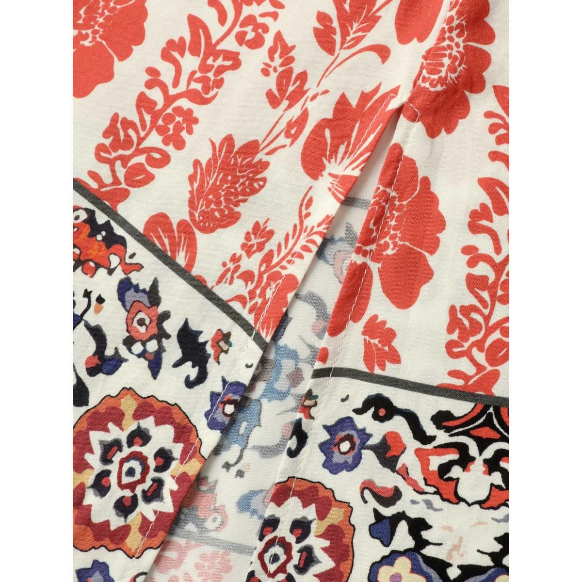 Plus Size Floral Contrast Print Cap Sleeve Midi Dress Rust Women Boho Slit Heart neckline Cap Sleeve Curvy BloomChic 22-24/3X Product Image