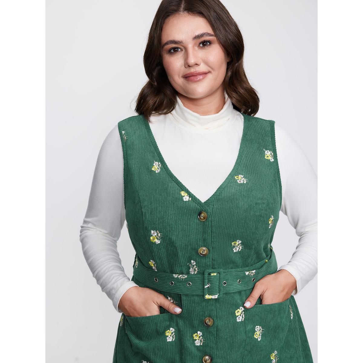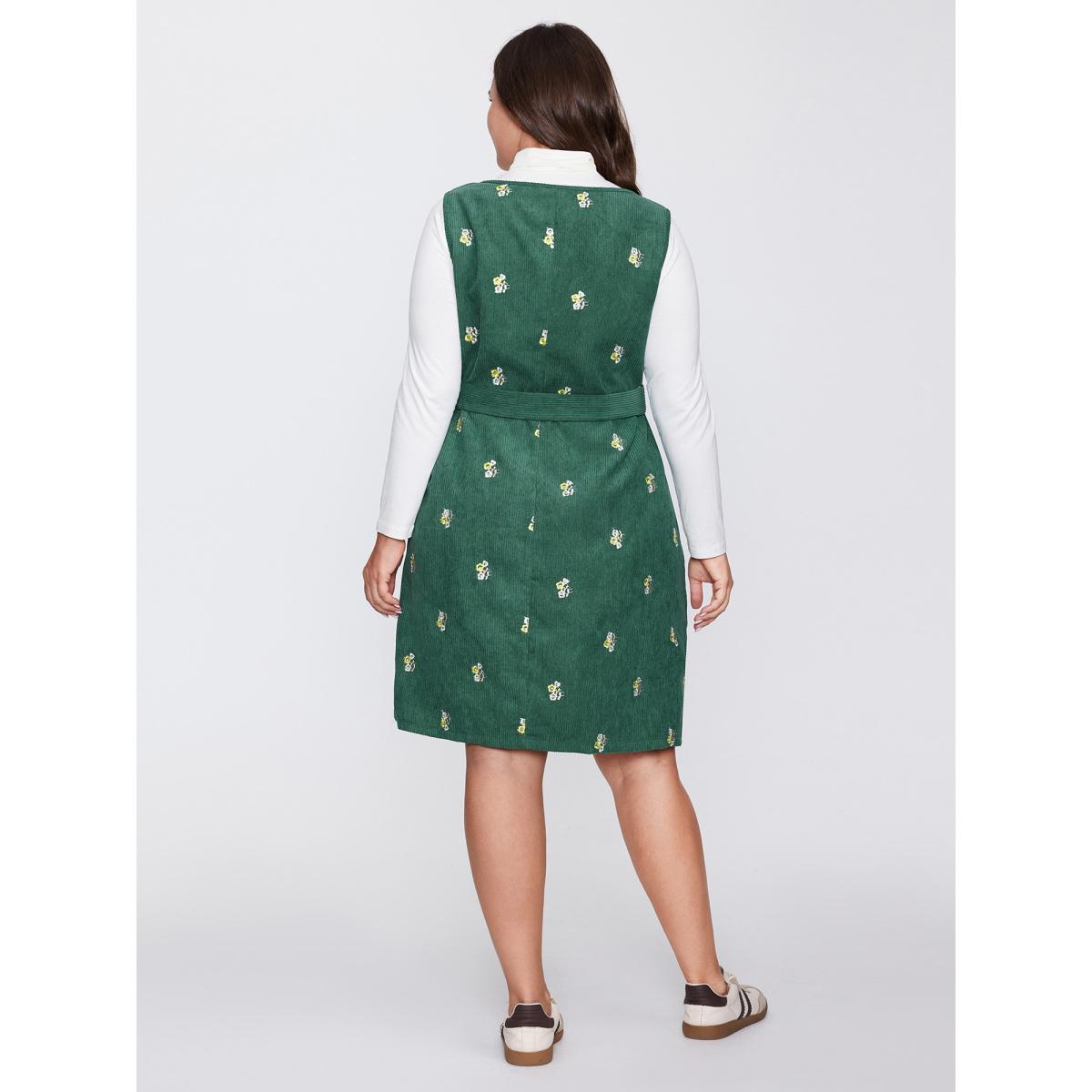 Plus Size Floral Embroidered Belted Waist Midi Dress Teal Women Playful Belted V-neck Sleeveless Curvy BloomChic 14-16/1X