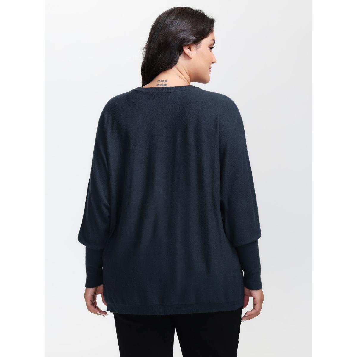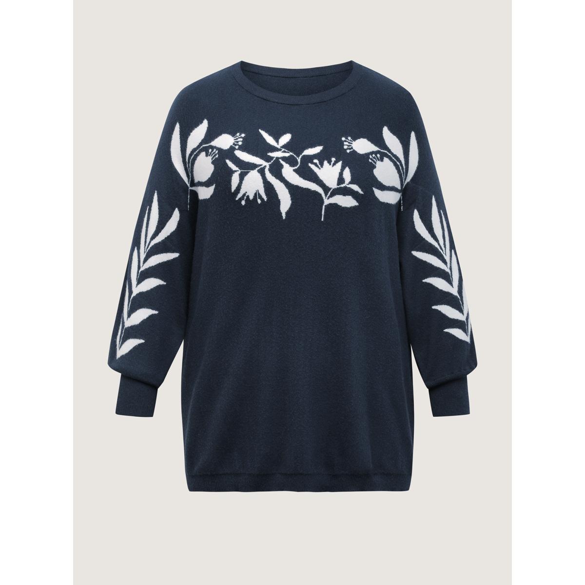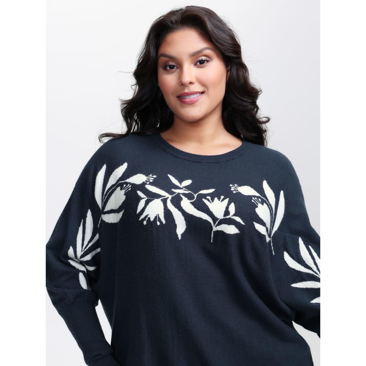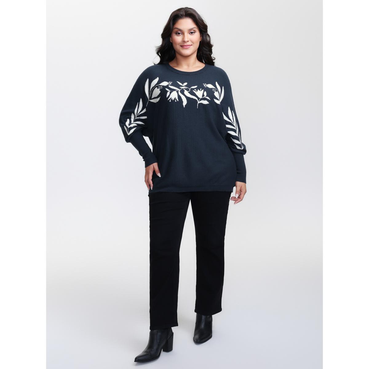 Plus Size Floral Neckline Dolman Sleeve Pullover Indigo Women Leisure Loose Long Sleeve Boat Neck Casual Pullovers BloomChic 18-20/2X