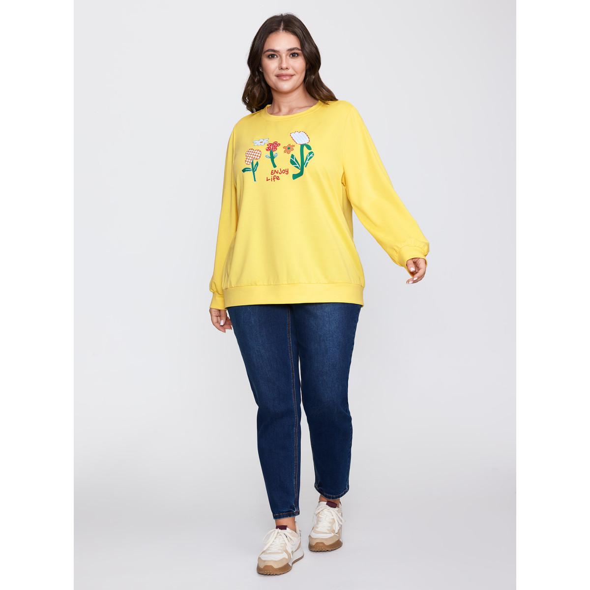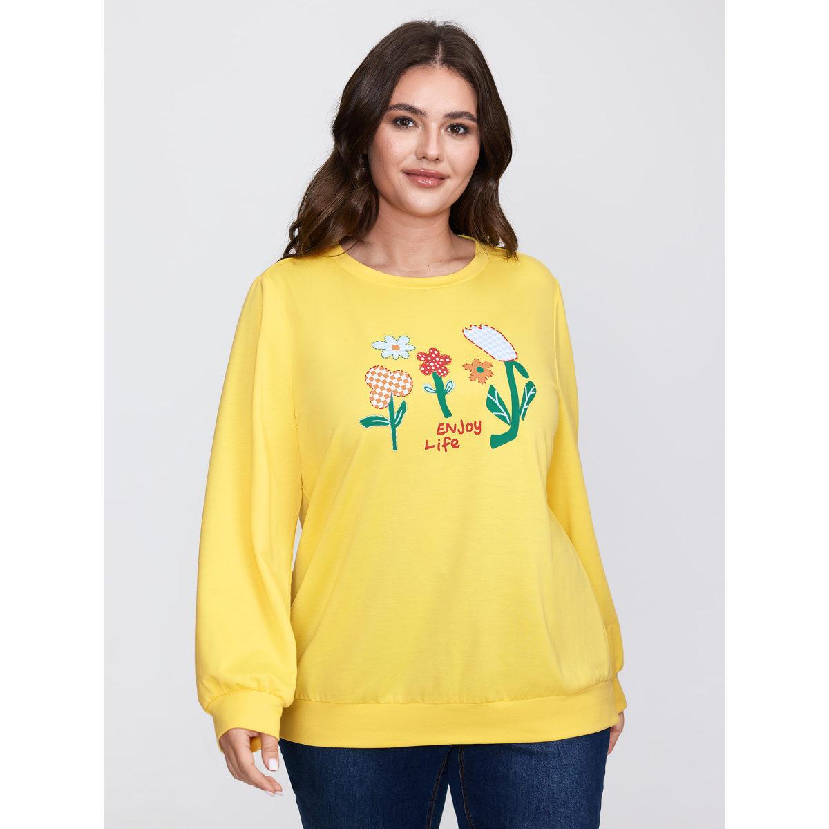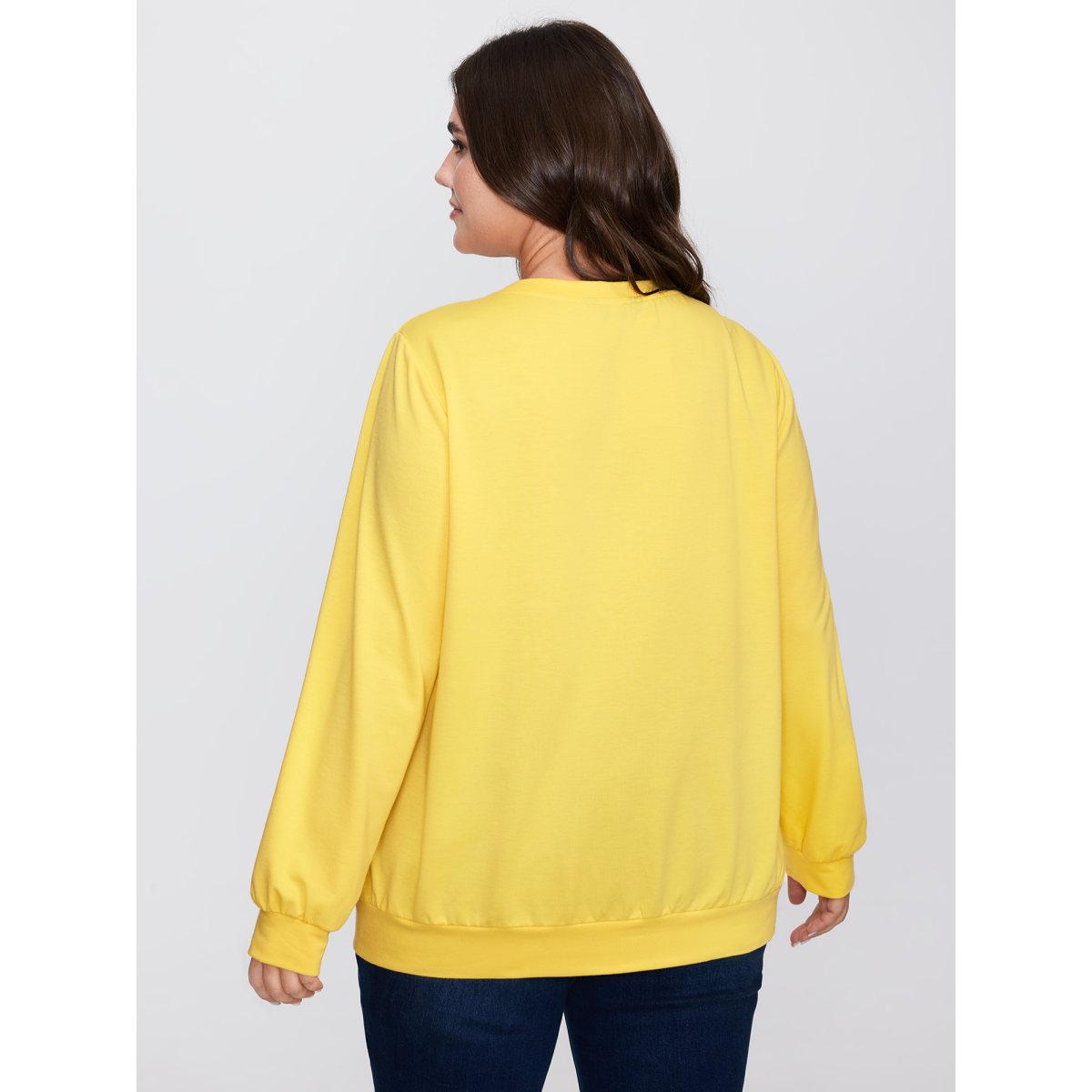 Plus Size Floral Pattern Stretchy Hem Sweatshirt Women Lemonyellow Playful Round Neck Casual Sweatshirts BloomChic 30/6X