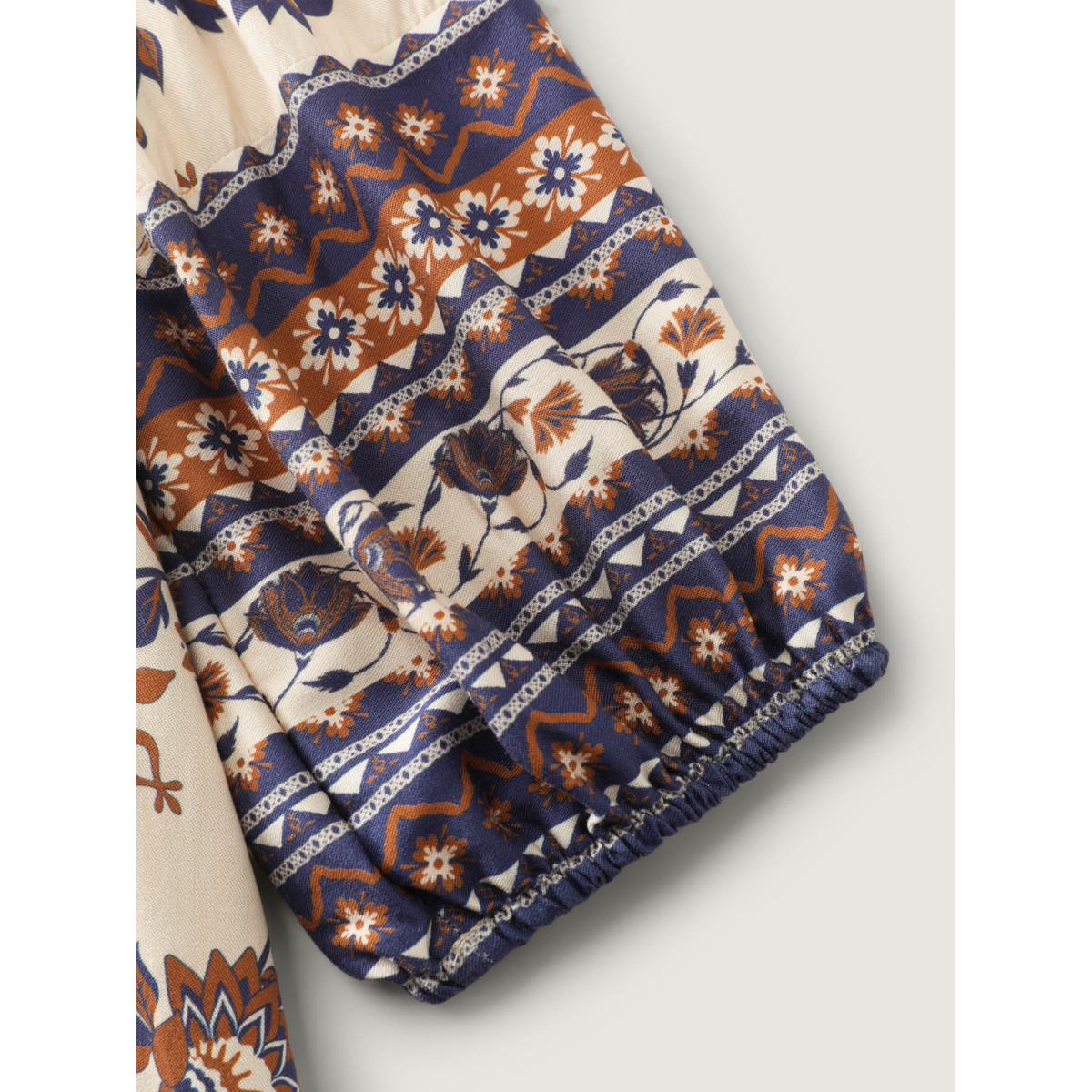 Plus Size Floral Print Lantern Sleeve Elastic Waist Dress Multicolor Women Vacation Elastic cuffs V-neck Elbow-length sleeve Curvy Midi Dress BloomChic 14-16/1X