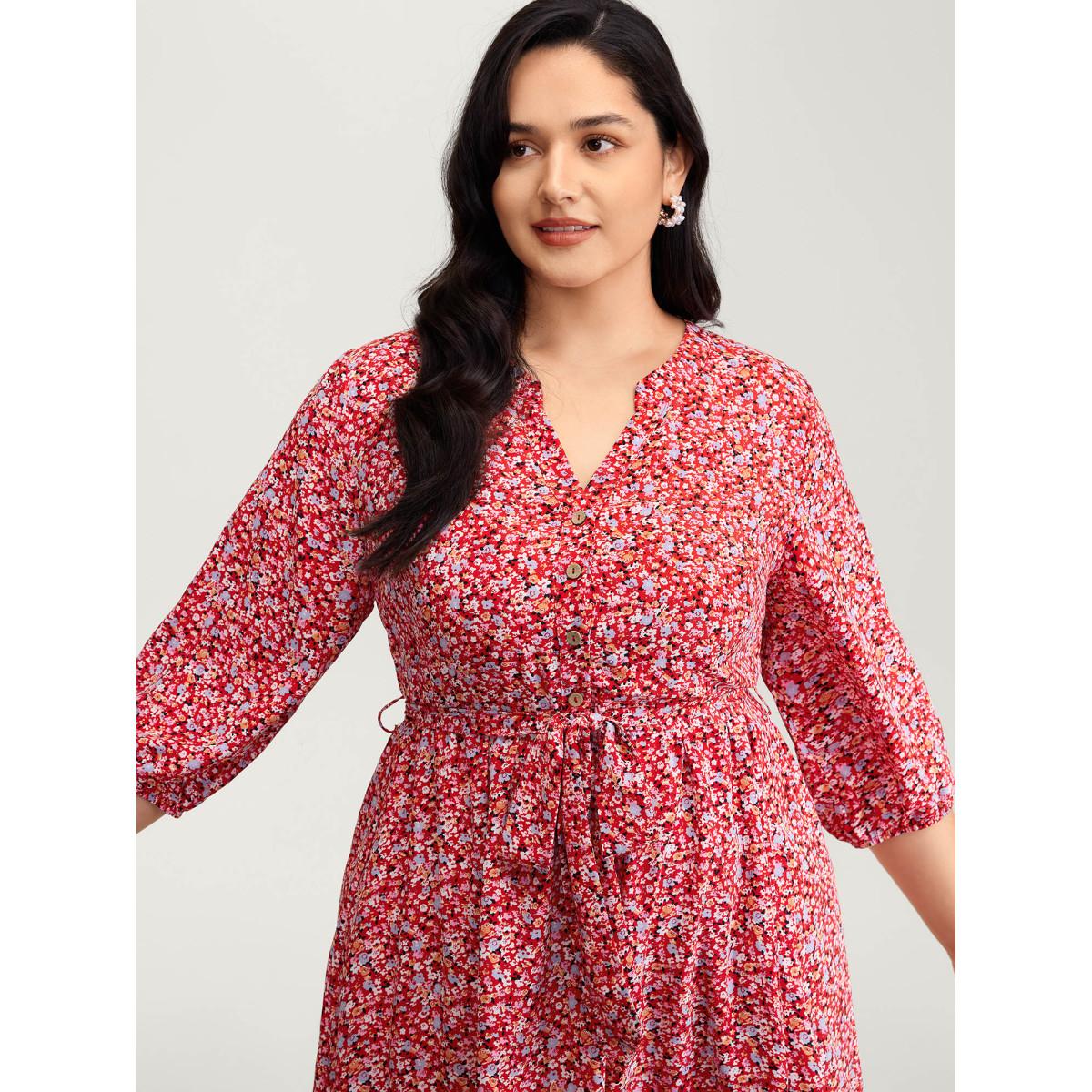 Plus Size Floral Print Belted Waist Midi Dress Scarlet Women Timeless Notched collar Elbow-length sleeve Curvy BloomChic 18-20/2X Product Image