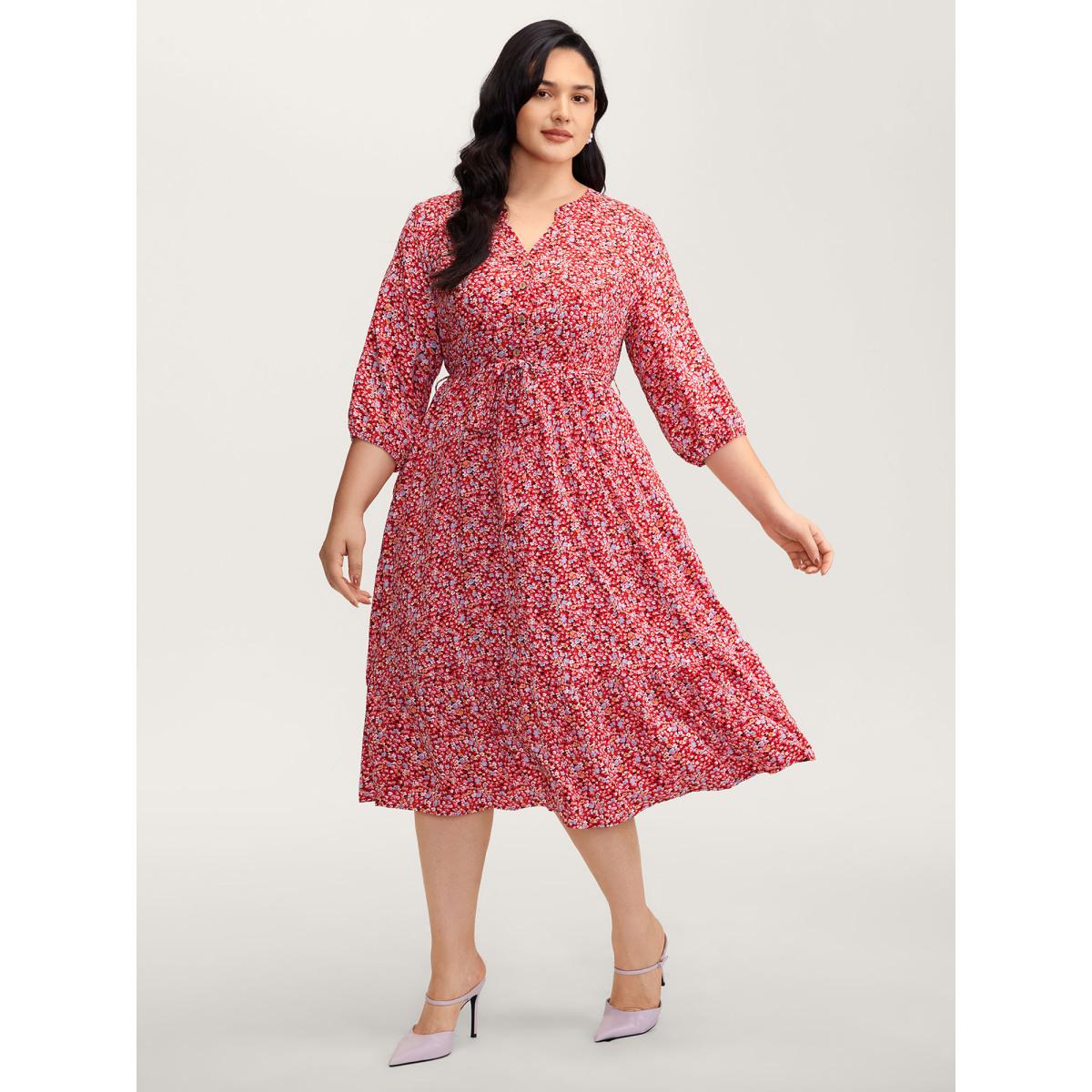 Plus Size Floral Print Waist-Tie V-Neck Midi Dress Scarlet Women Elegant Belted V-neck Half Sleeve Curvy BloomChic 26/4X