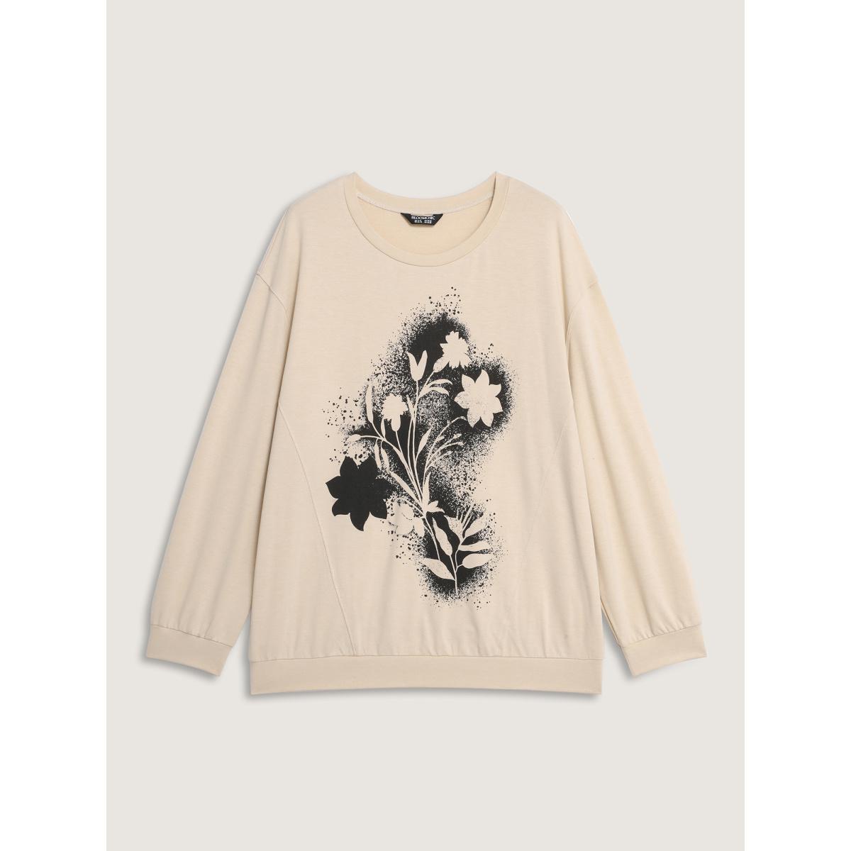 Plus Size Floral Print Drop Shoulder Relaxed-Fit Sweatshirt Women Apricot Leisure Round Neck Casual Sweatshirts BloomChic 10/M
