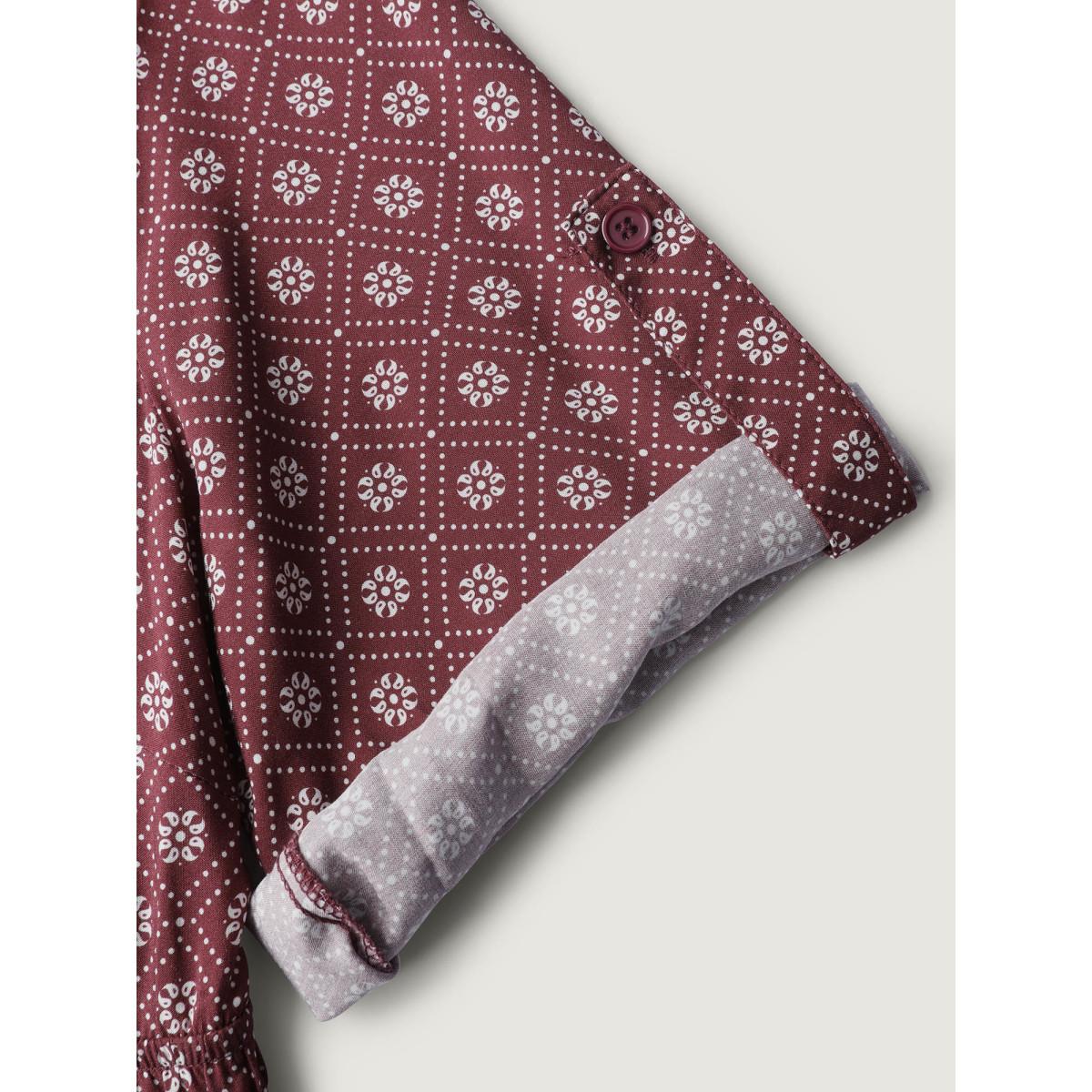 Plus Size Geometric Print Shirred Waist Maxi Dress Deepred Women Office Button Shirt collar Elbow-length sleeve Curvy BloomChic 12/L Product Image