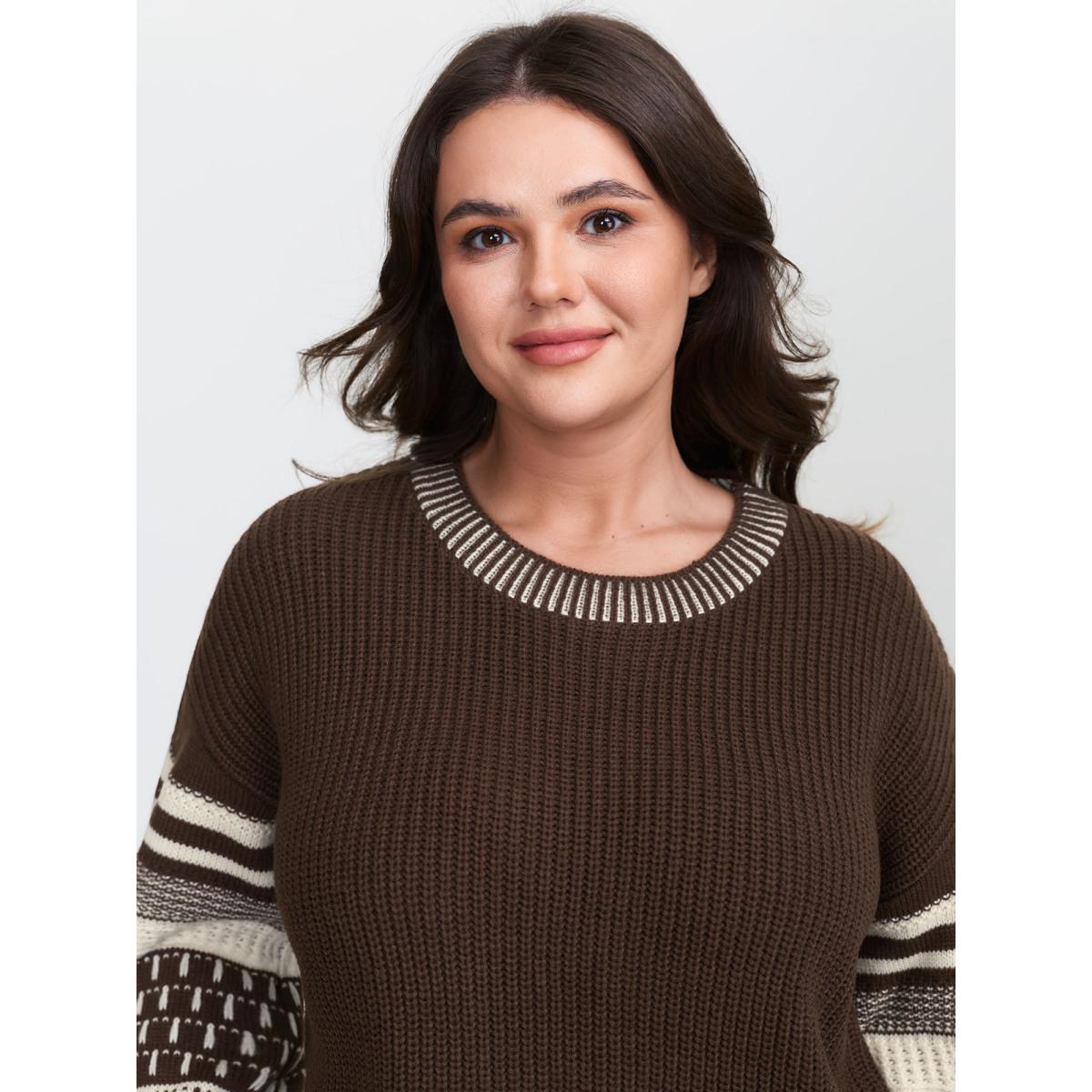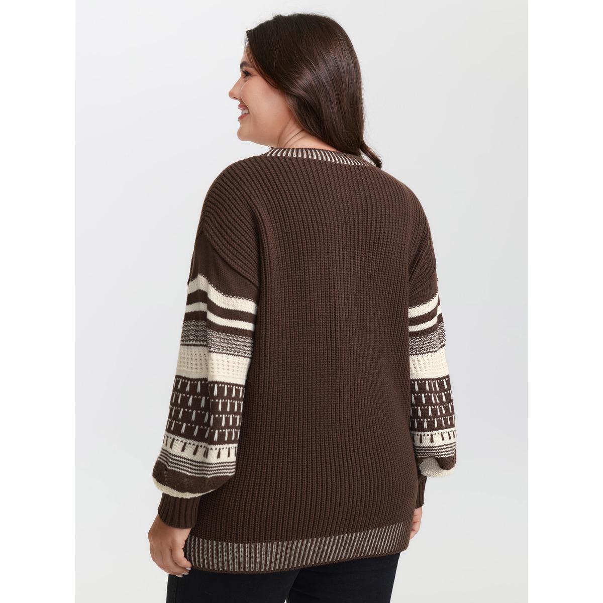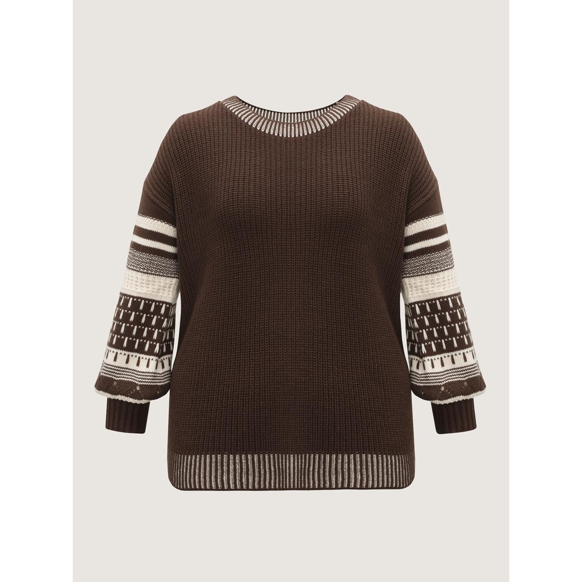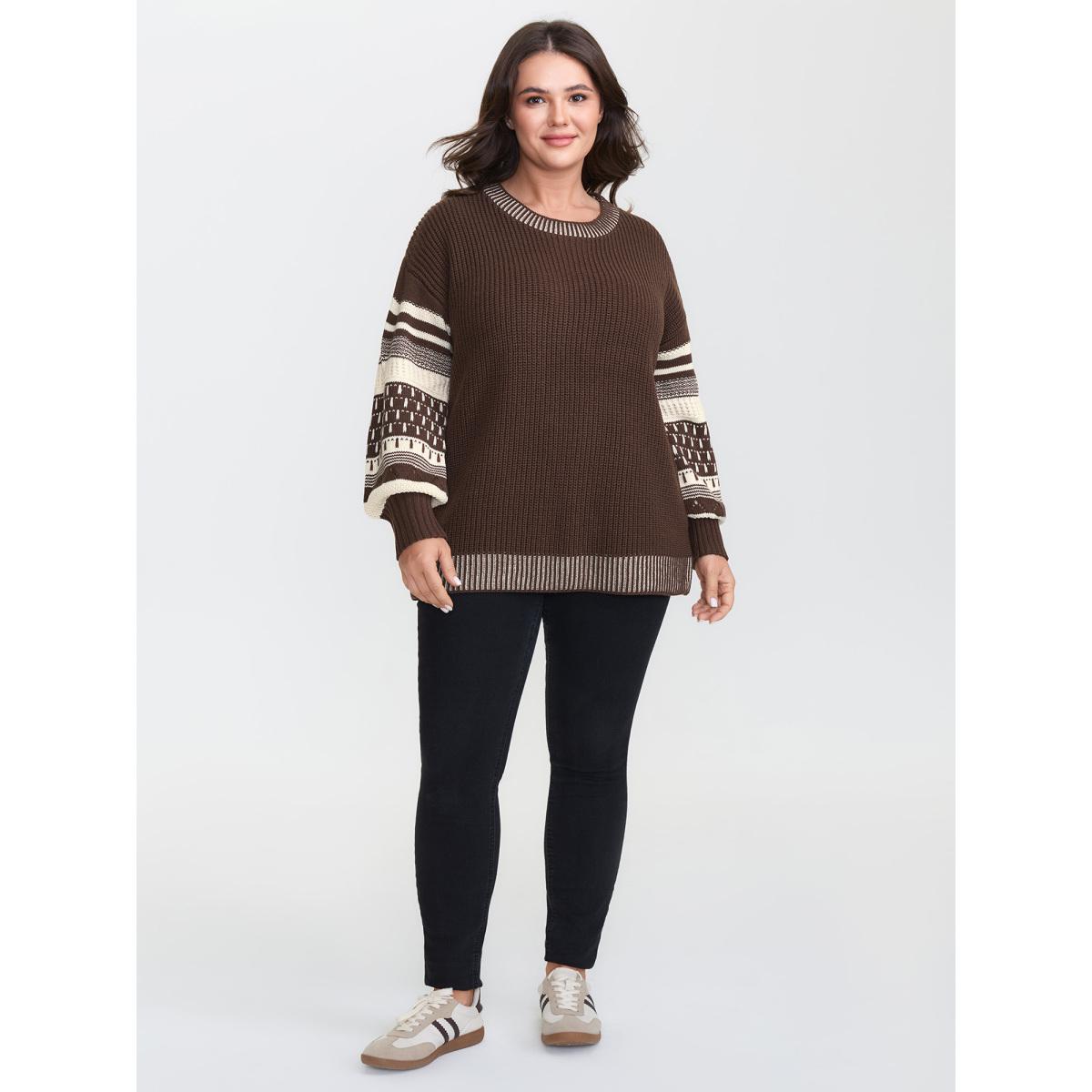 Plus Size Geometric Stripe Sleeve Round Neck Pullover Browncoffeecolor Women Loose Long Sleeve Turtleneck Casual Pullovers BloomChic 10/M