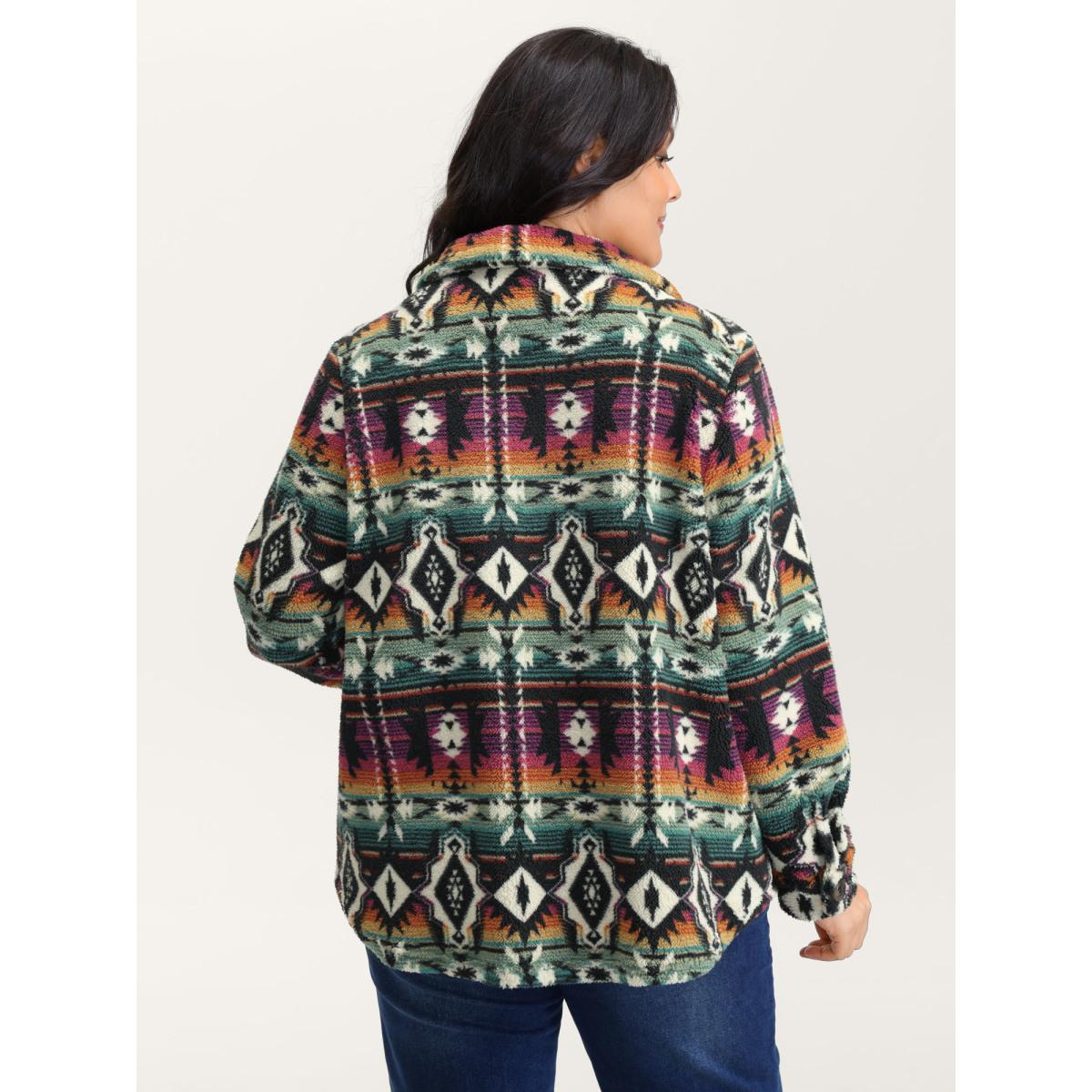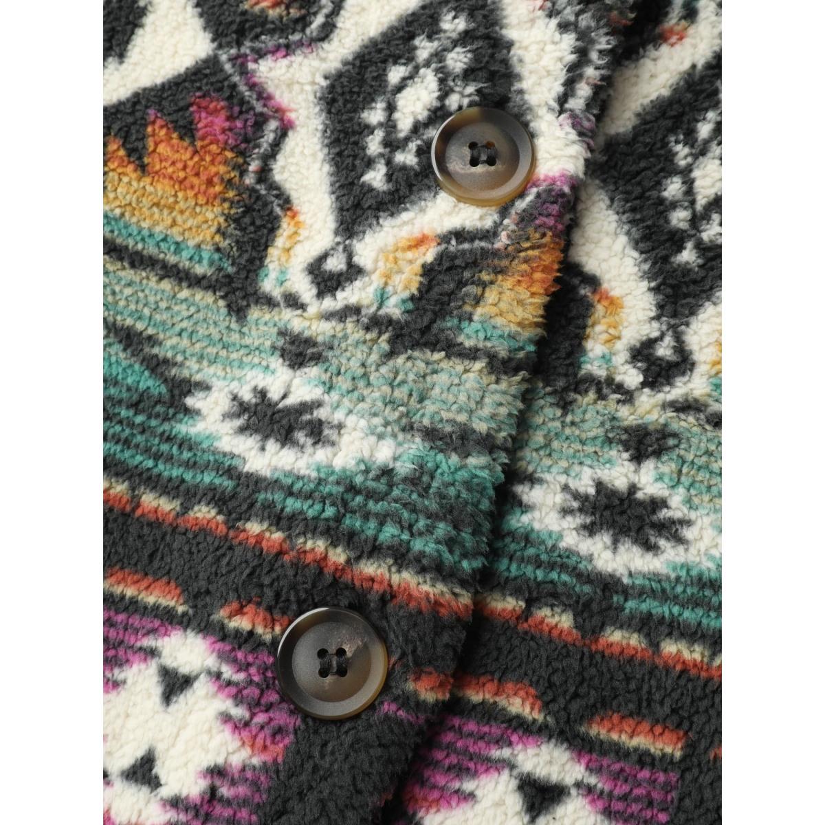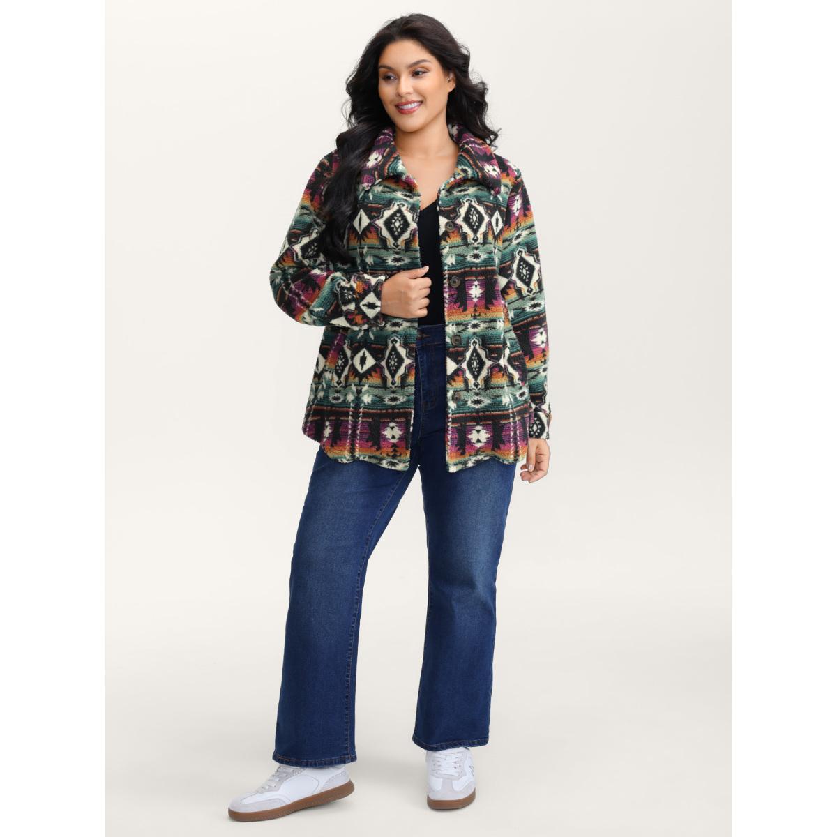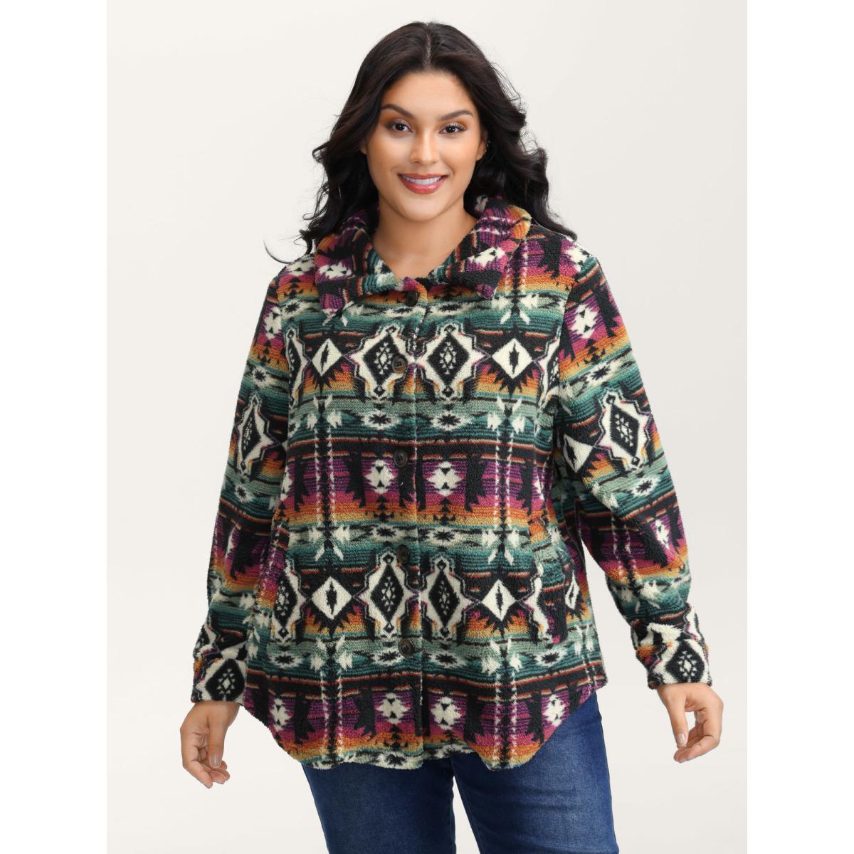 Plus Size Geometric Velvet Button Pockets Coat Women Multicolor Playful Button Ladies Casual Winter Coats BloomChic 12/L