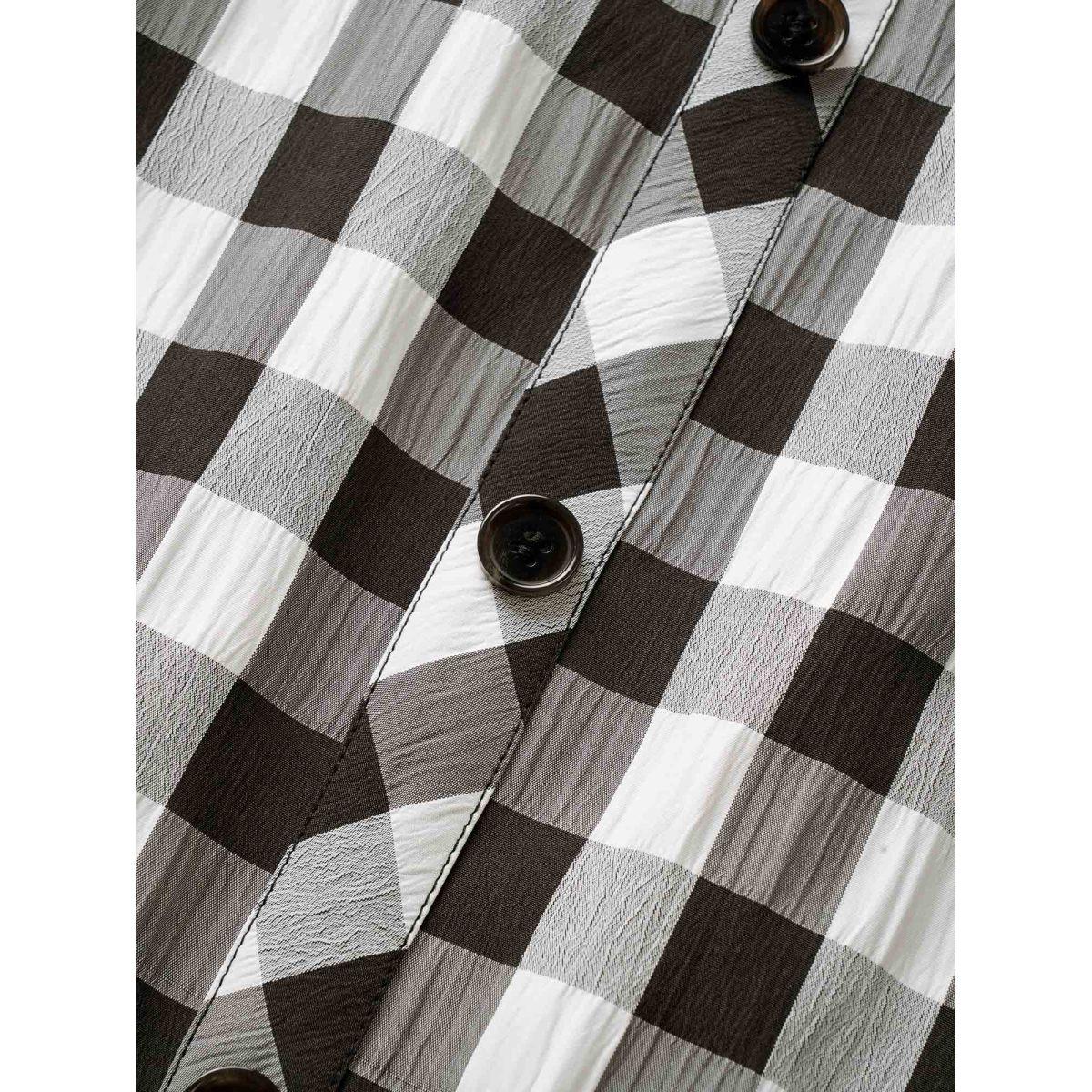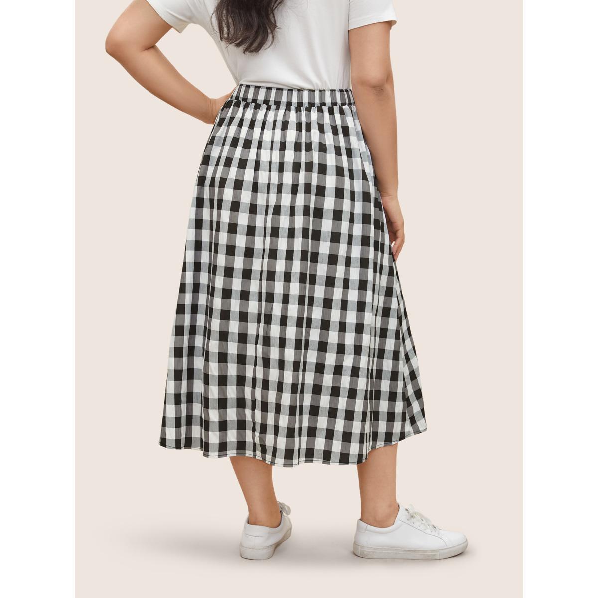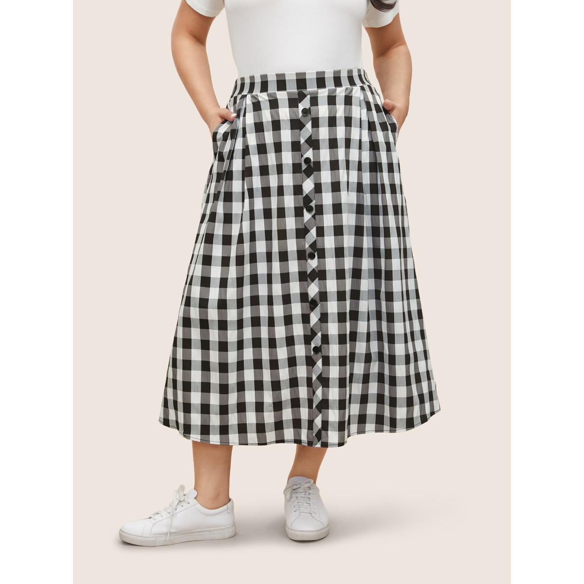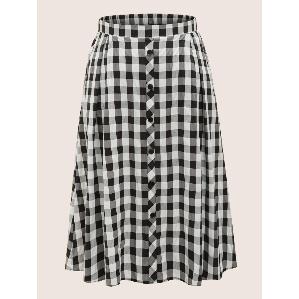 Plus Size Gingham Button Detail Elastic Waist Pocket Skirt Women Black Casual Non No stretch Slanted pocket Everyday Skirts BloomChic 22-24/3X
