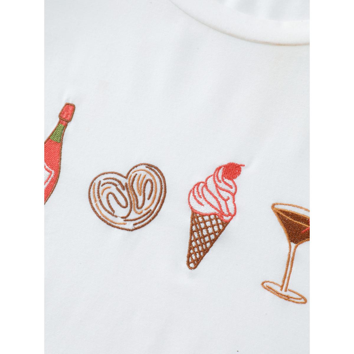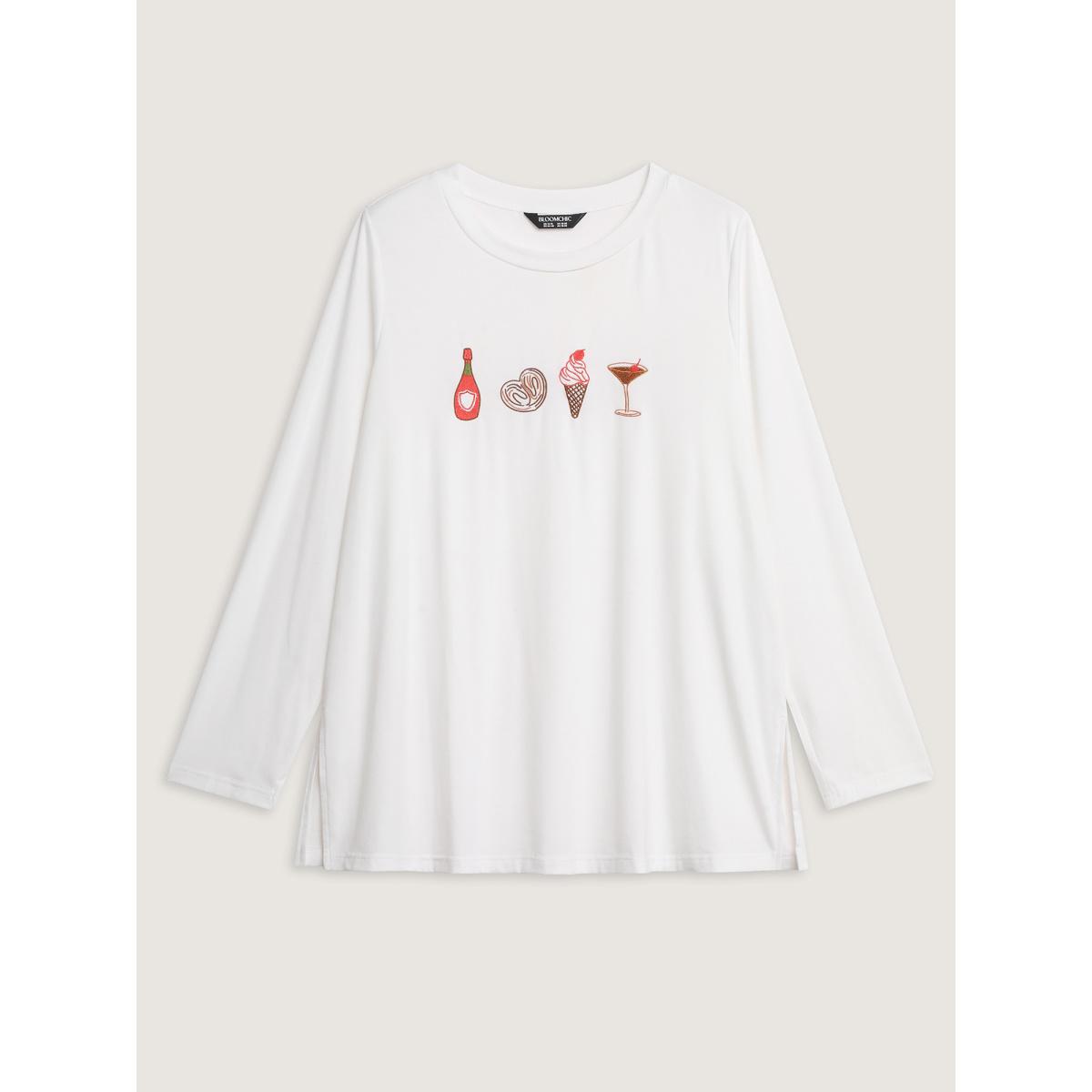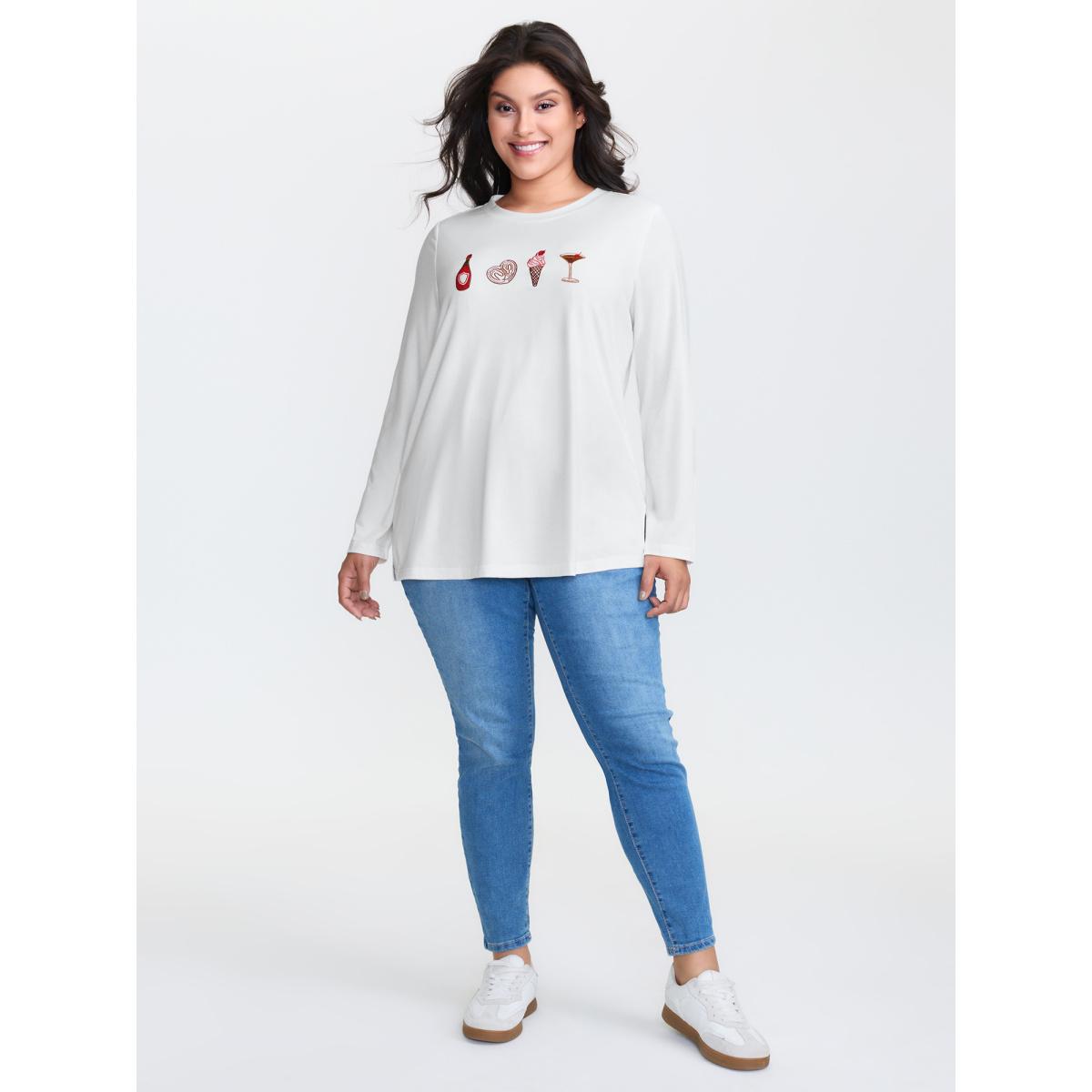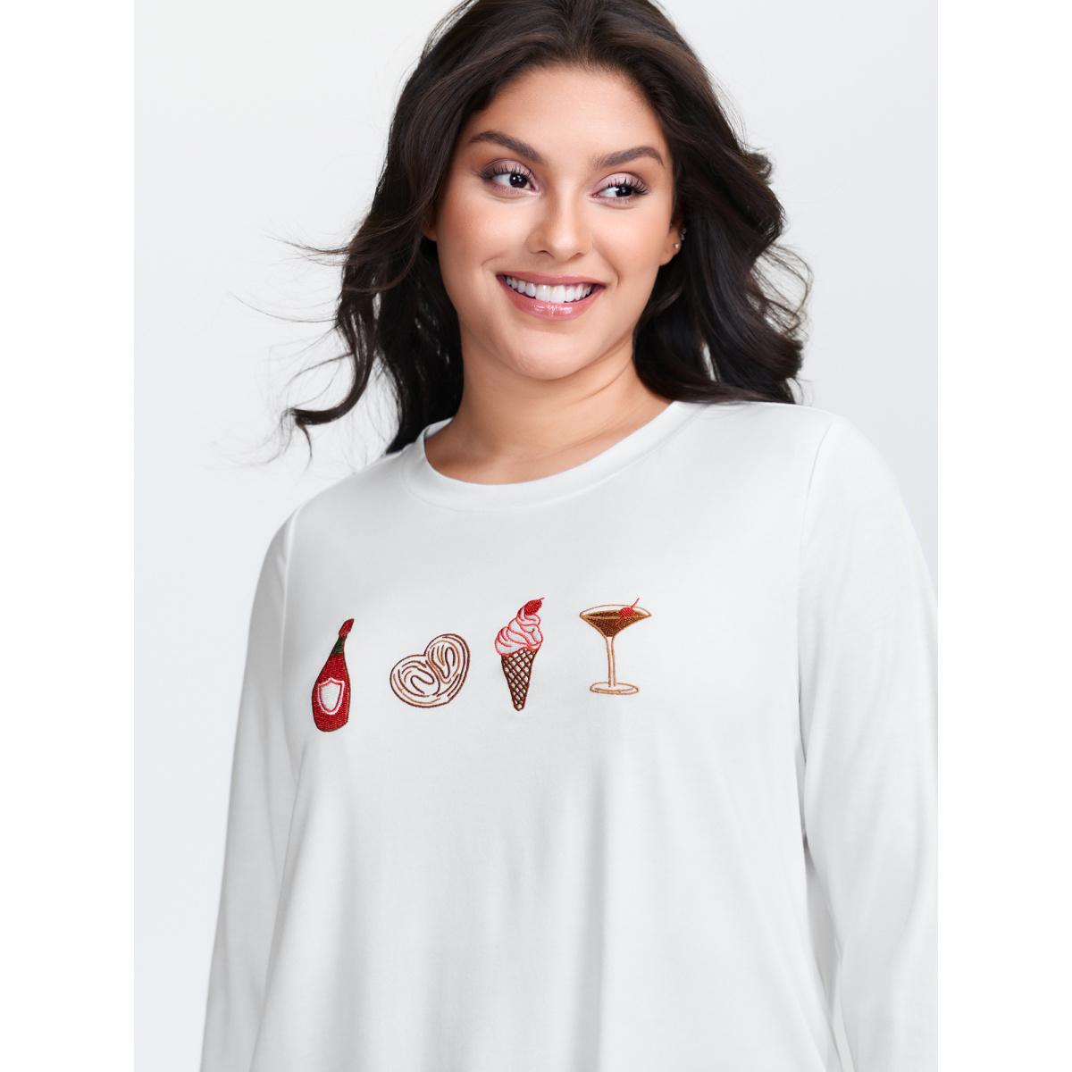 Plus Size Girls Brunch Pattern Round Neck T-Shirt Originalwhite Women Playful Embroidered Round Neck Casual T-shirts BloomChic 10/M