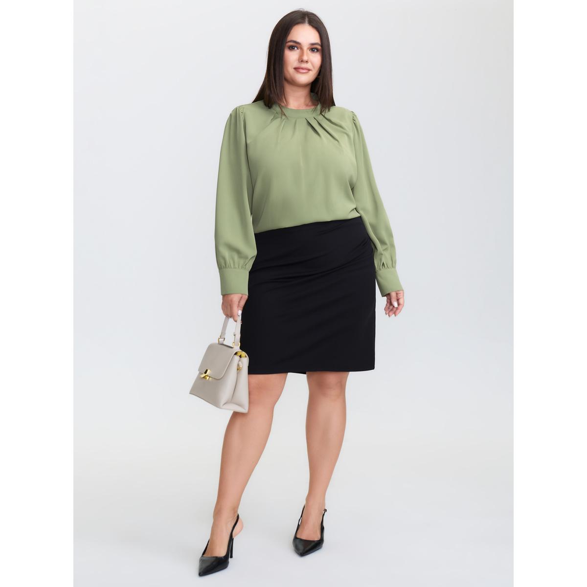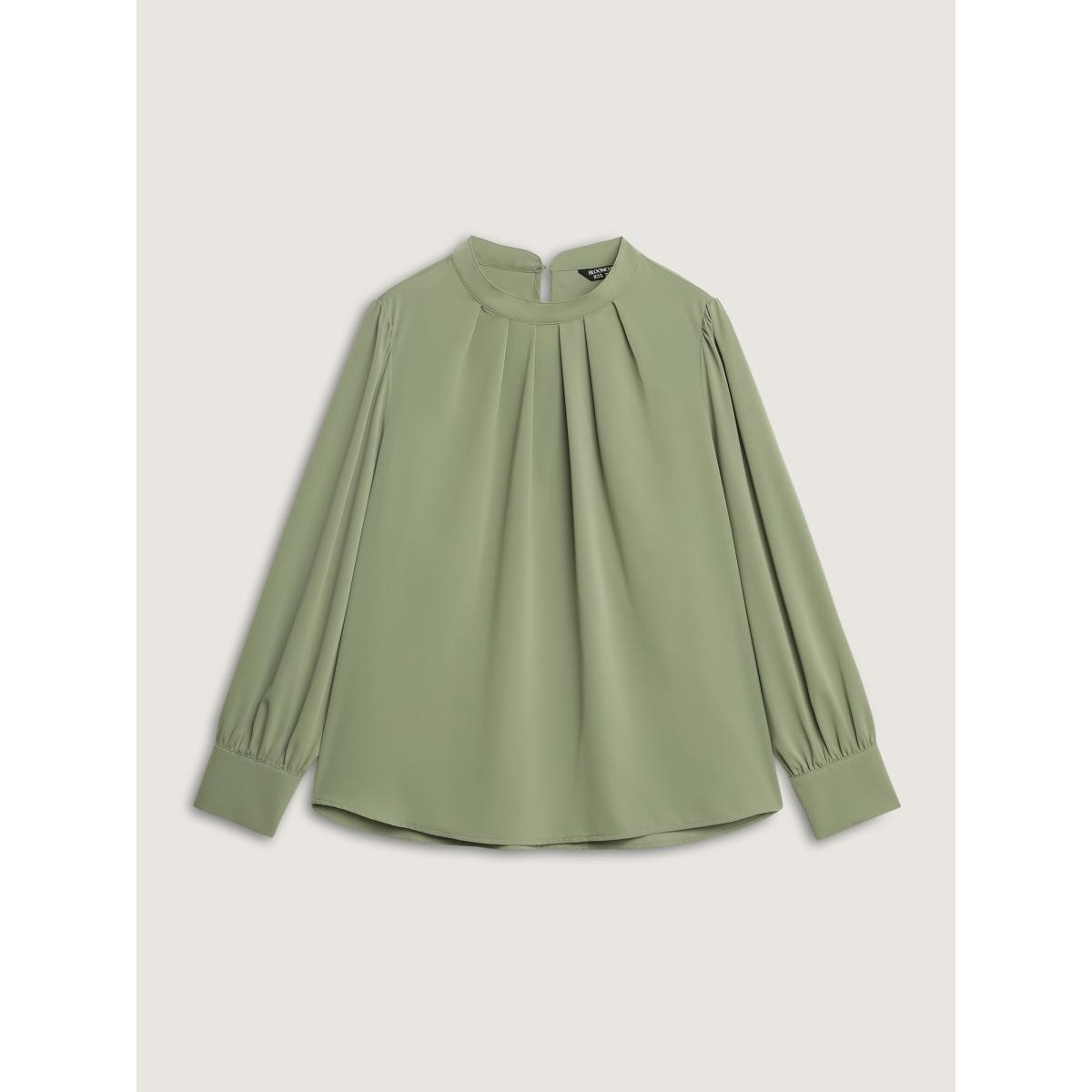 Plus Size Greenbean Pleated High Neckline Solid Blouse Women Office Long Sleeve Turtleneck Office Blouses BloomChic 26/4X