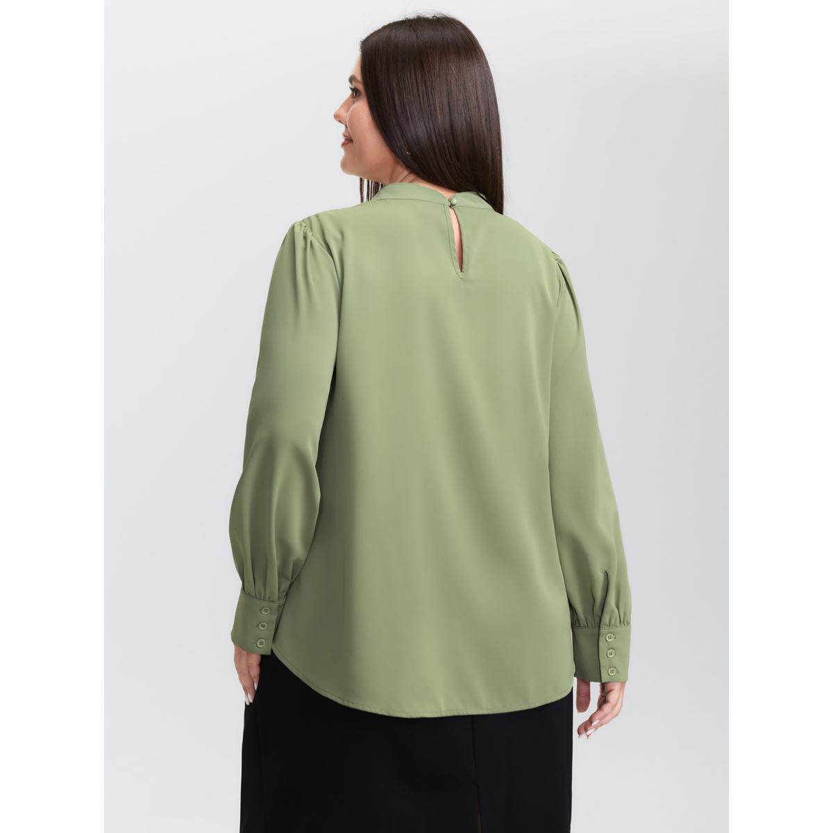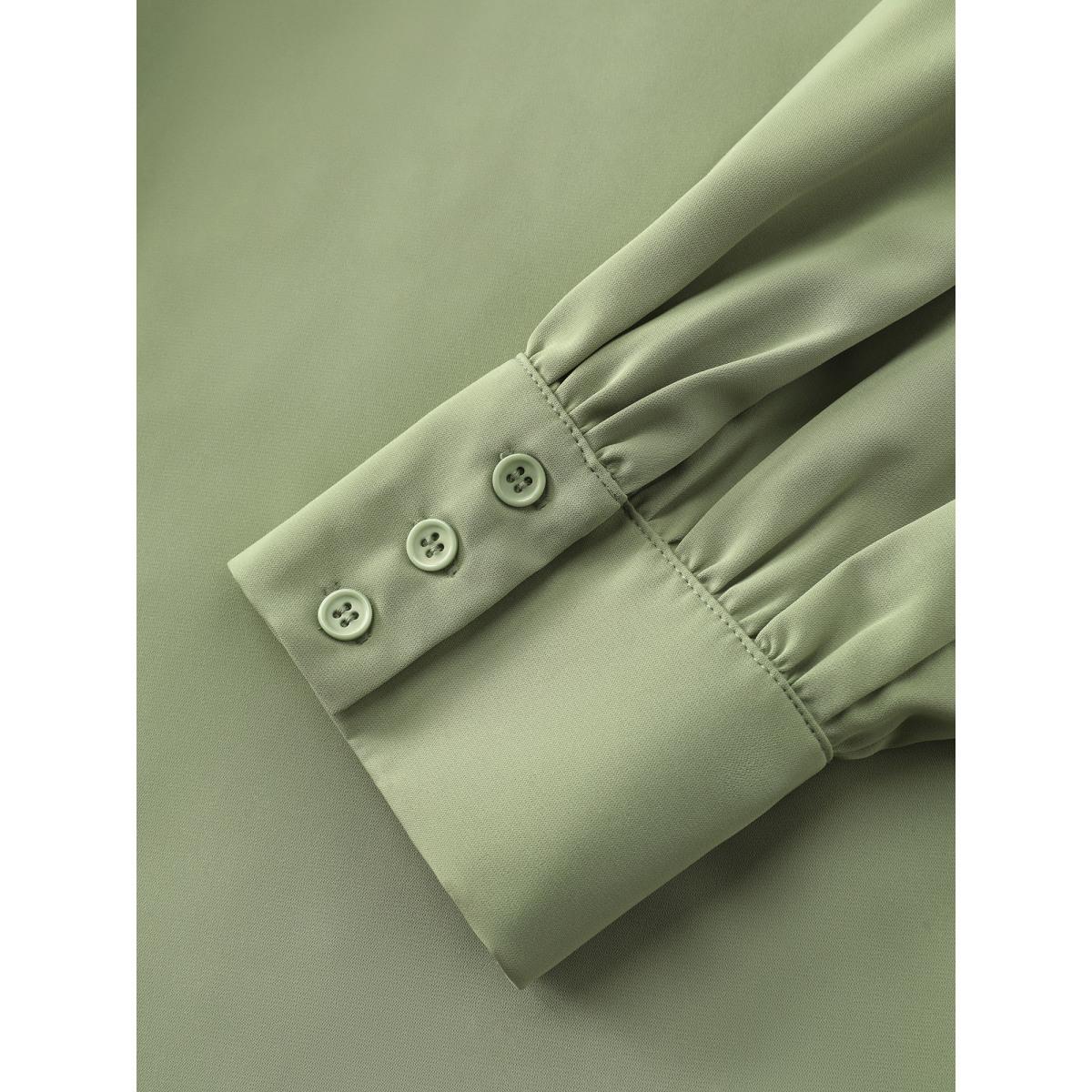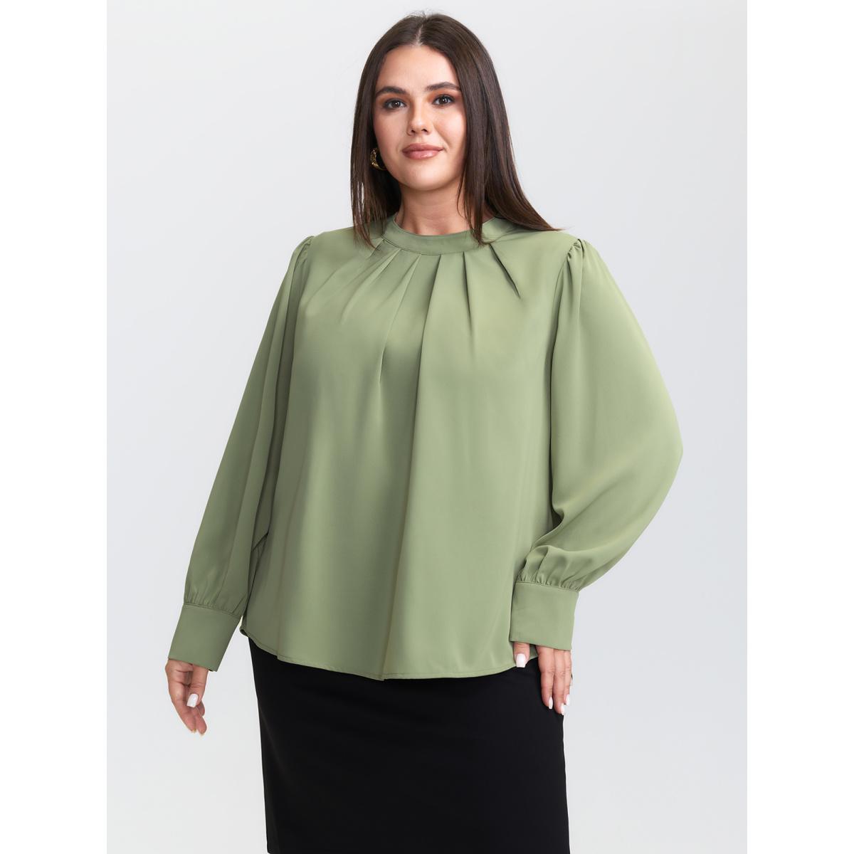 Plus Size DarkGreen Solid Lantern Sleeve Shirred Ruffles Blouse Women Office Long Sleeve Shirt collar Office Blouses BloomChic 18-20/2X
