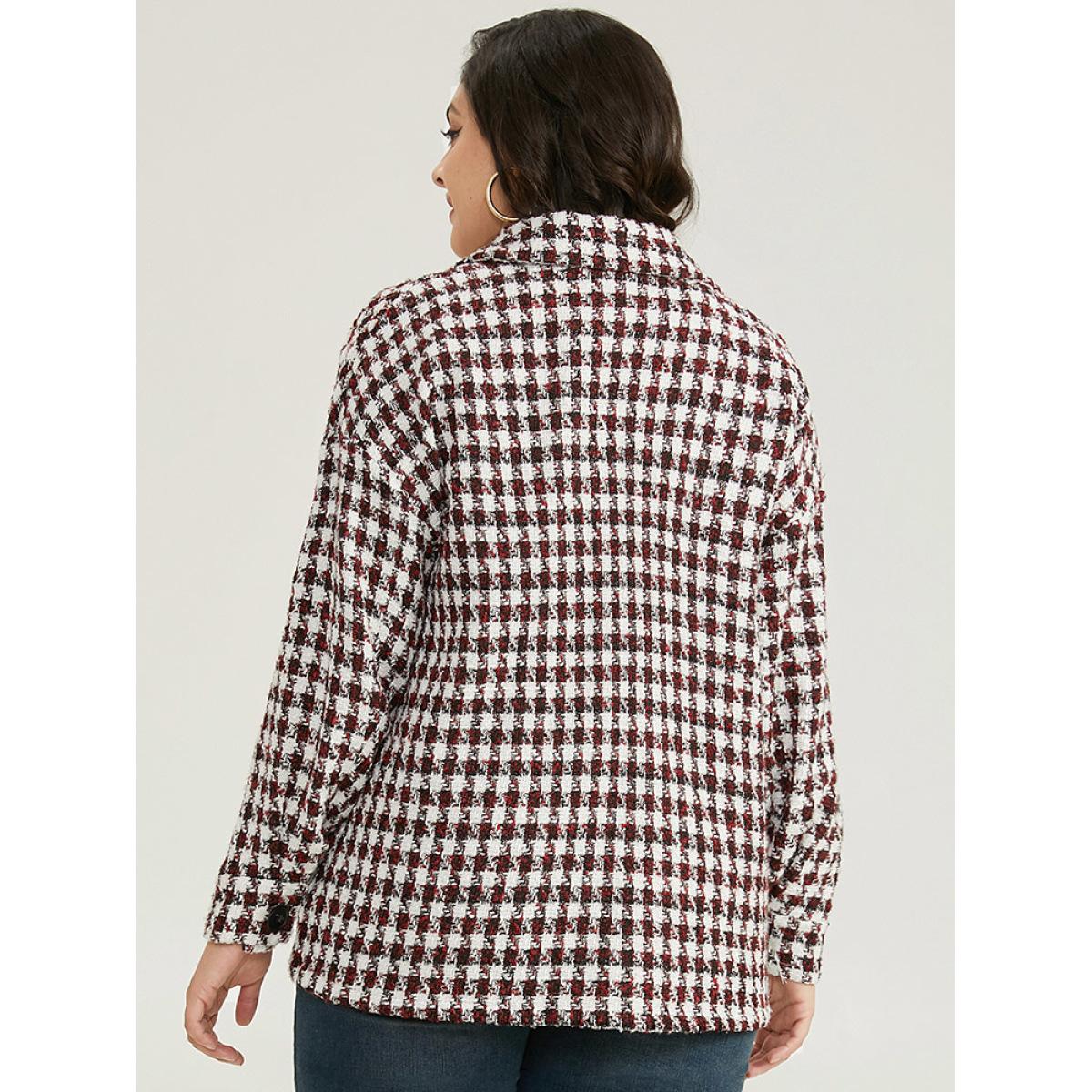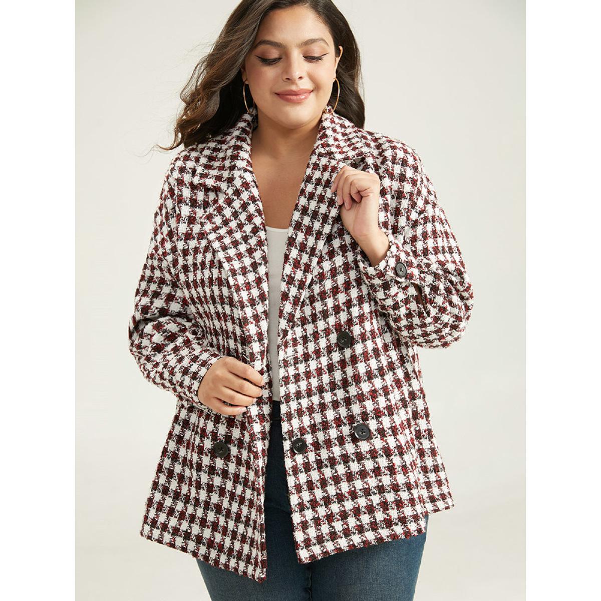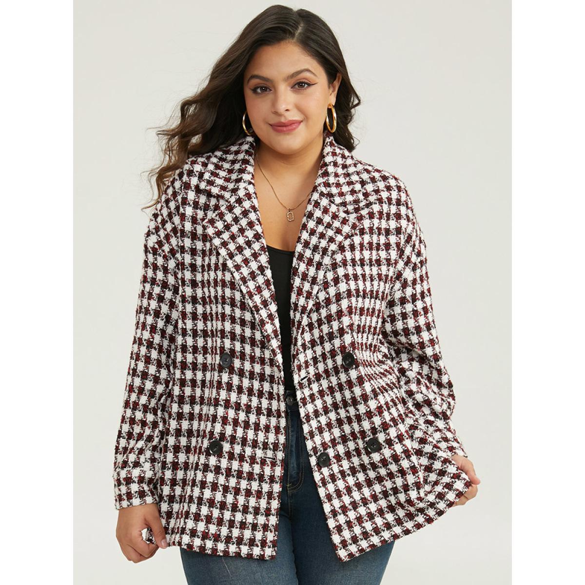 Plus Size Halloween Gingham Tweed Plisse Double Breasted Coat Women Raspberry Casual Texture Ladies Dailywear Winter Coats BloomChic 26/4X